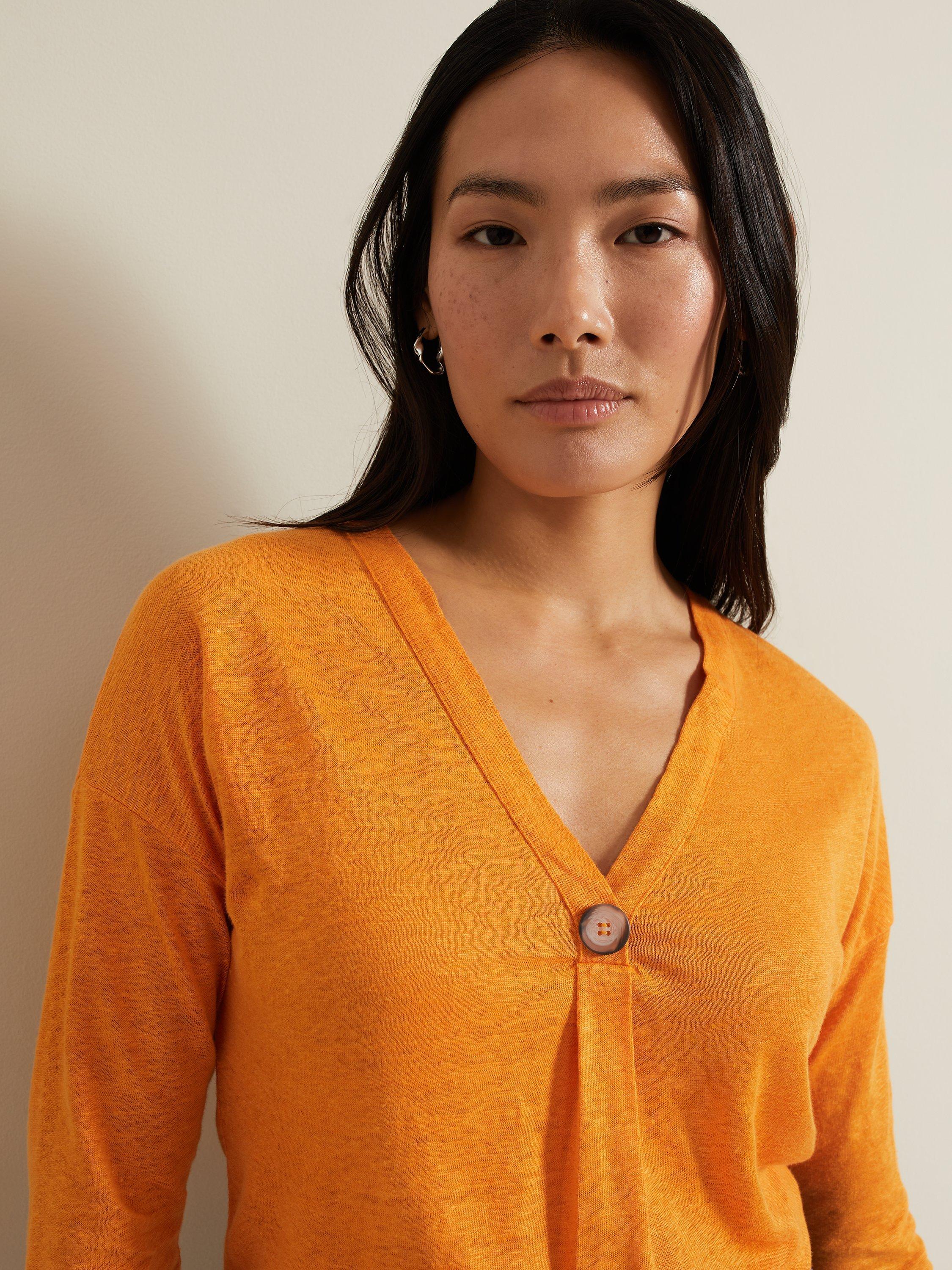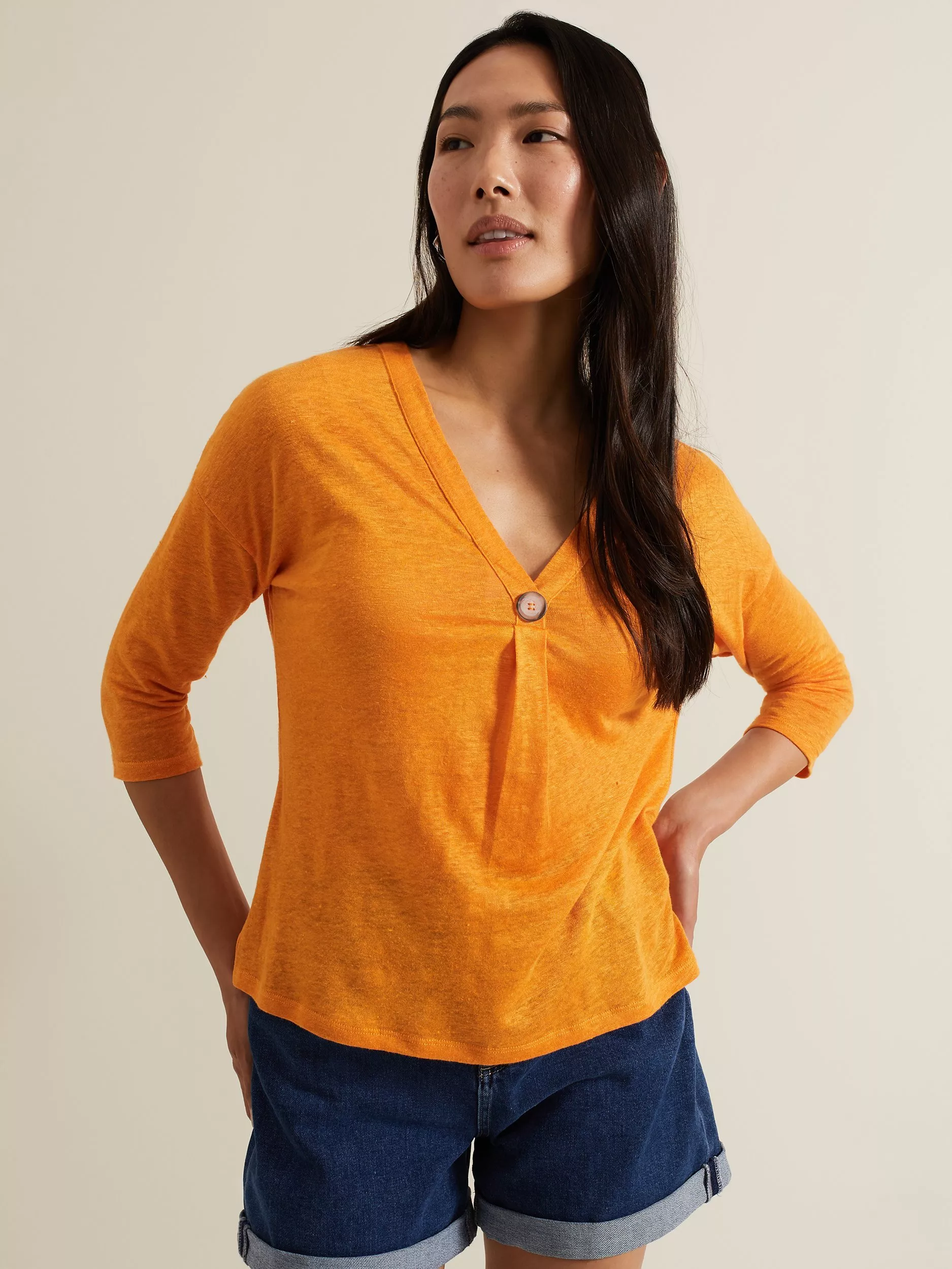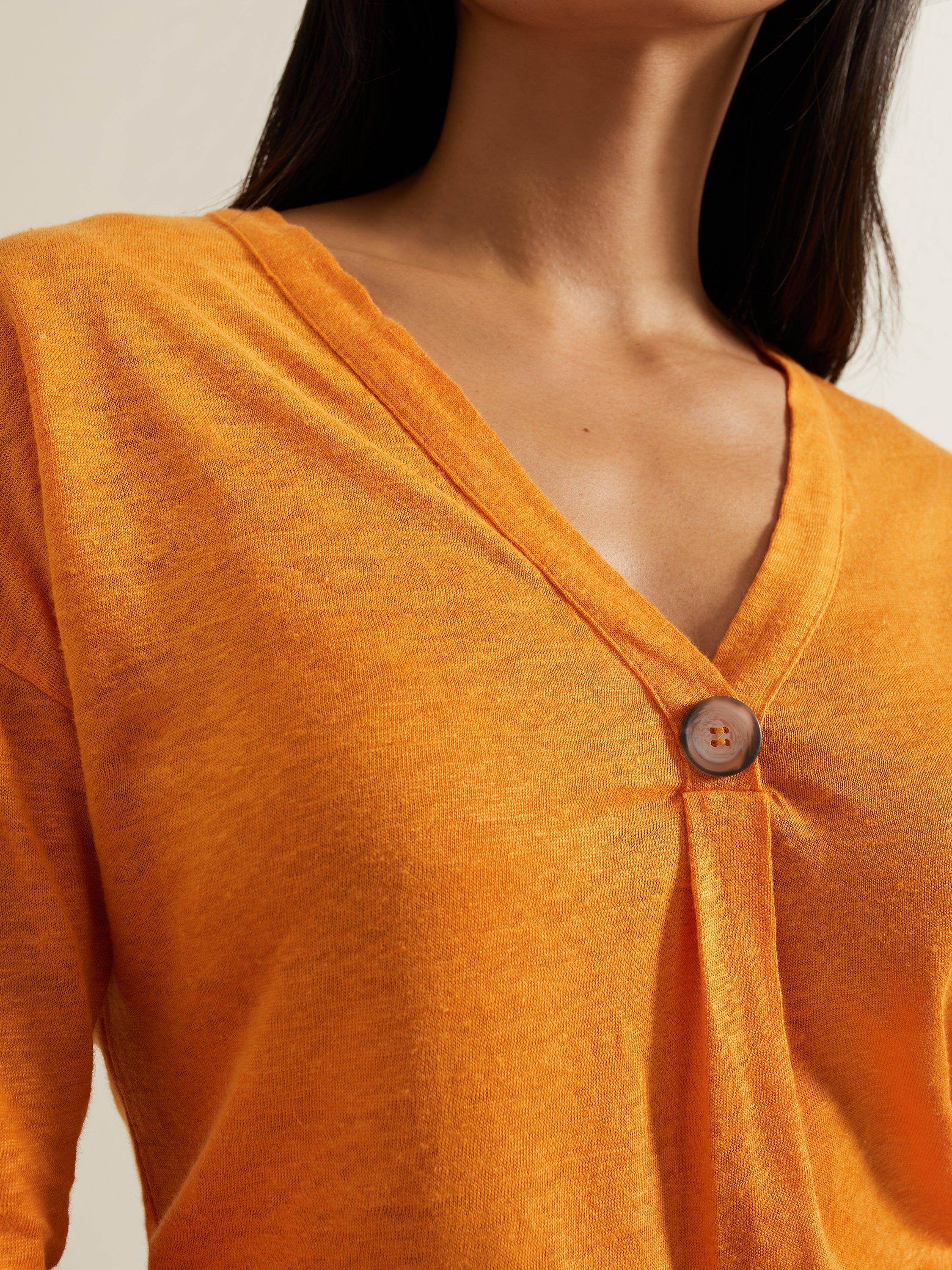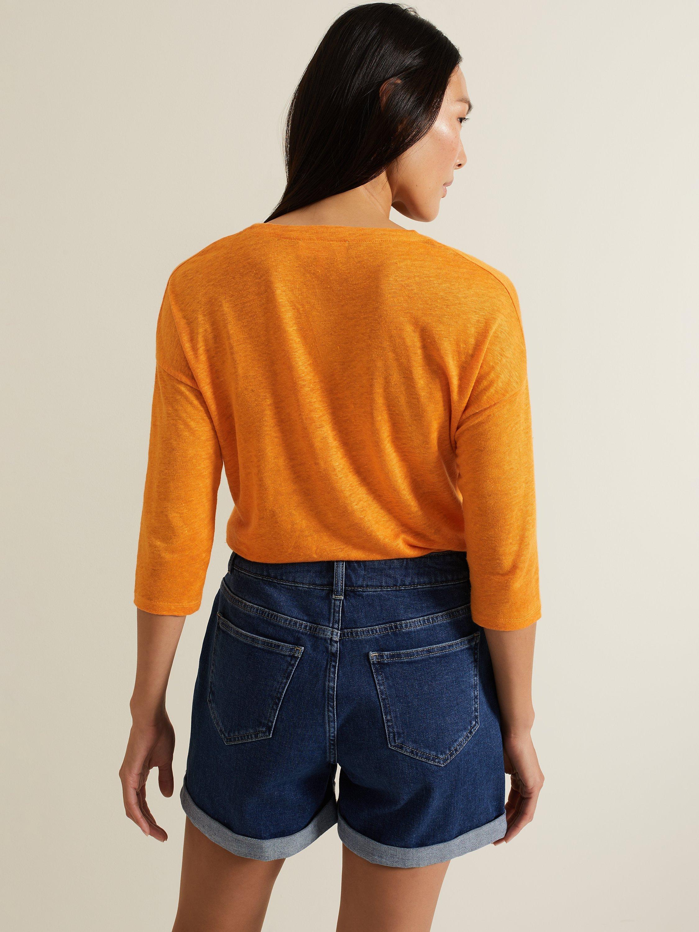 Classic in cut with a v-neckline and three-quarter length sleeves, it is lightweight and breathable in pure linen and is ideal when partnered with floaty midi skirts for summer days spent strolling around the city.