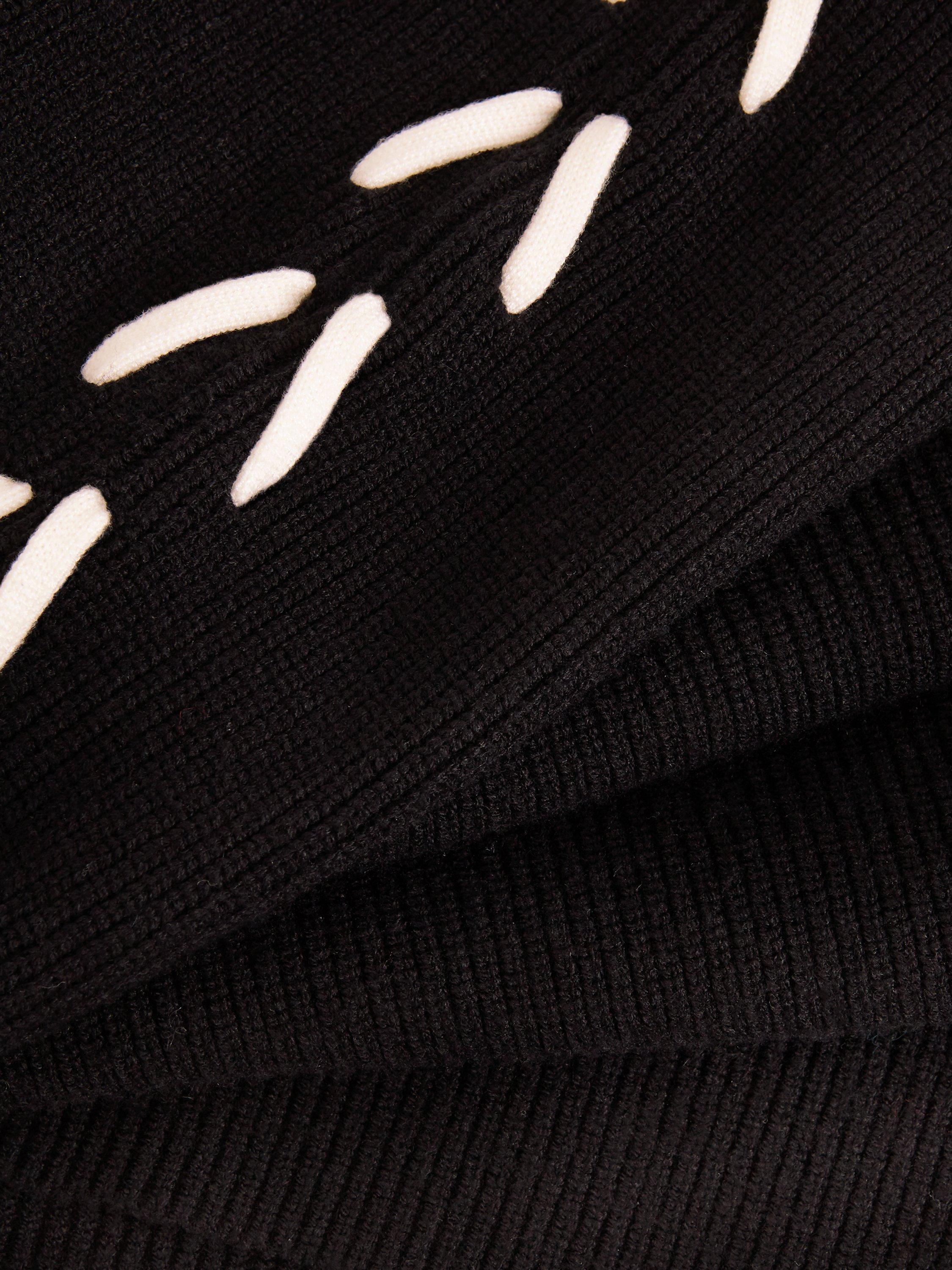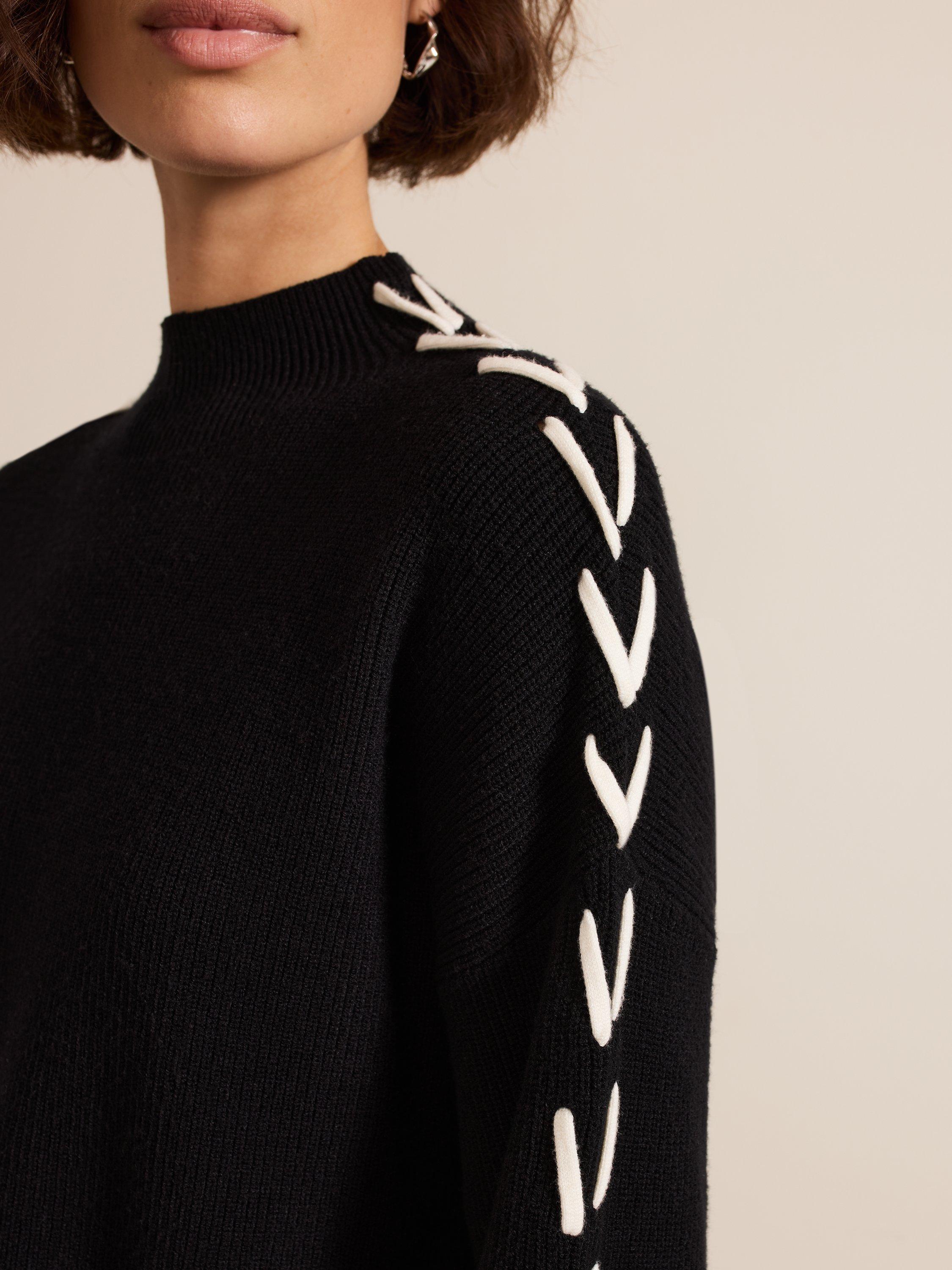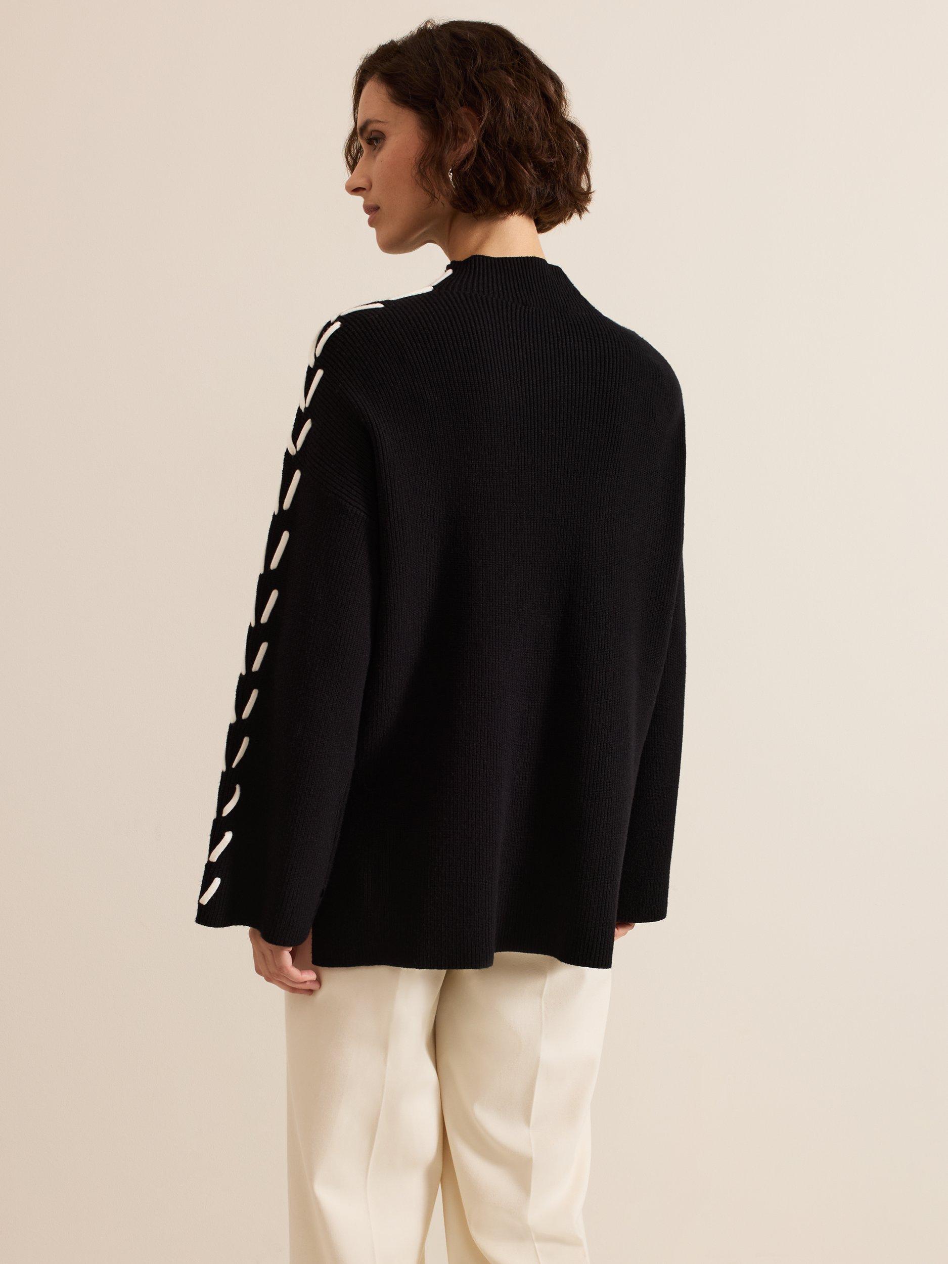 Achieve effortless style with the Leia jumper. Soft and chunky, this jumper features eye-catching contrast ivory stitching along the arms. The stepped hem and side splits elevate this contemporary knit, perfect to dress up or down for any occasion.