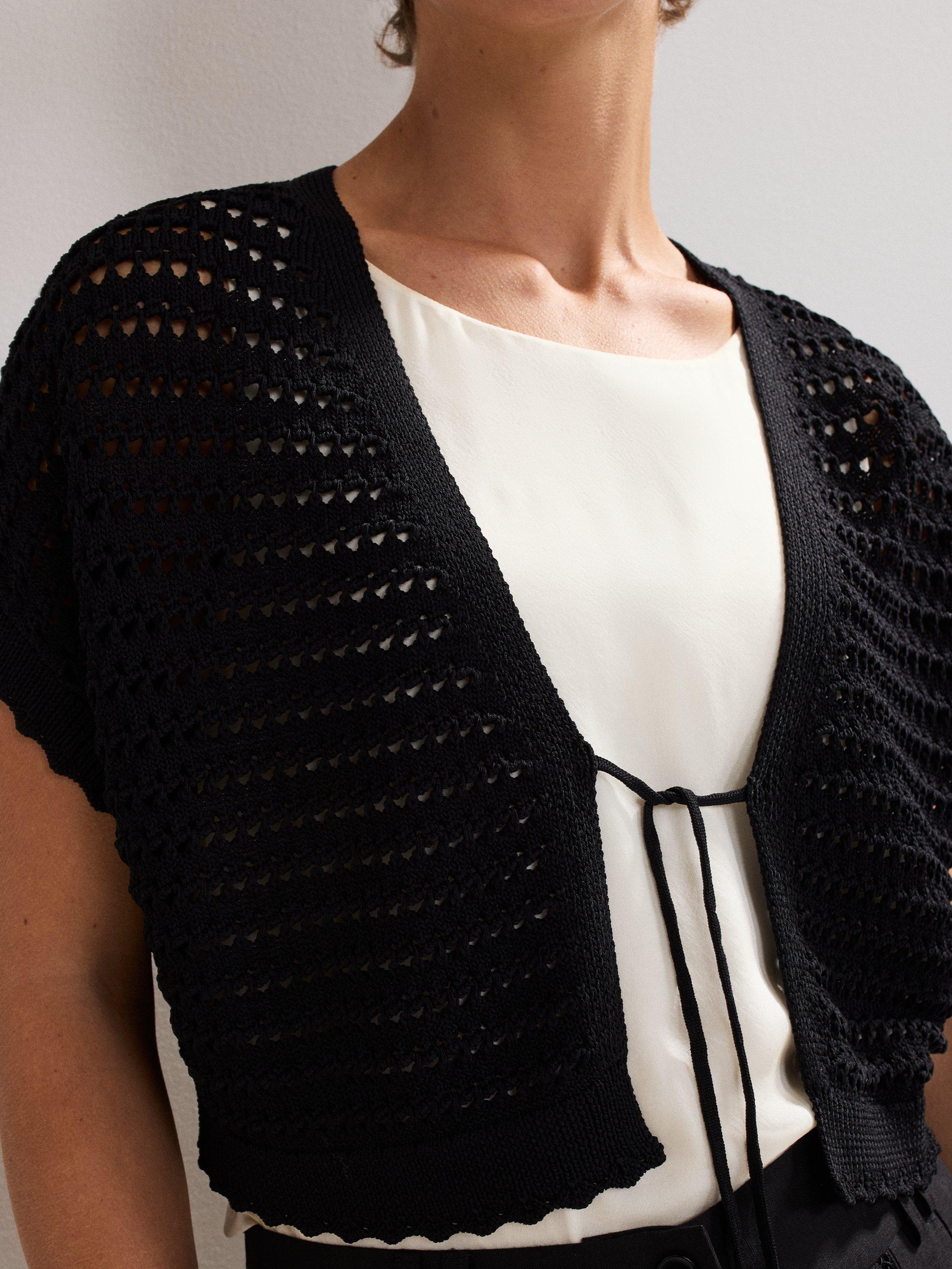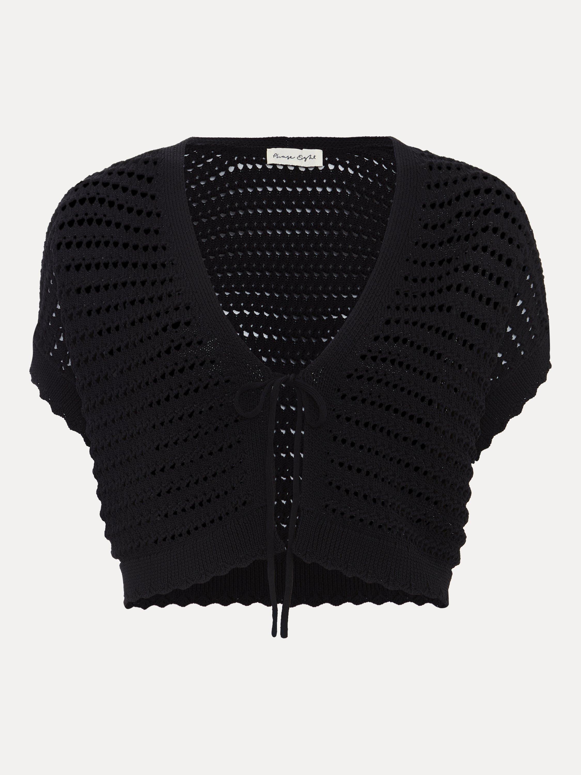 Add coverage without unnecessary weight simply by slipping on this crochet-inspired bolero from Phase Eight.