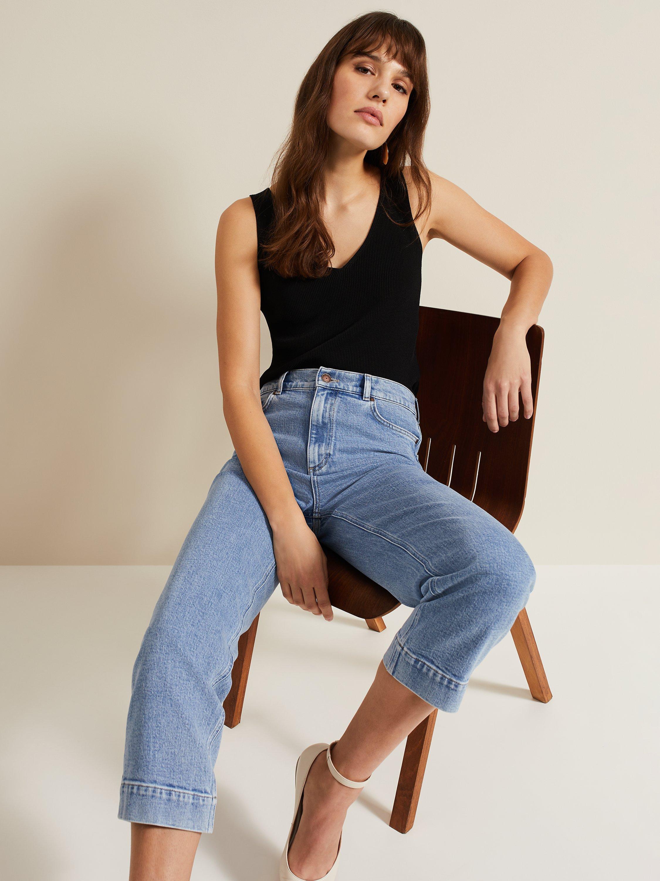 Cut with straight legs to perfectly tap into the casual essence of the season, these high-waisted jeans by Phase Eight are crafted from a durable, breathable cotton blend and are cropped at the ankles.