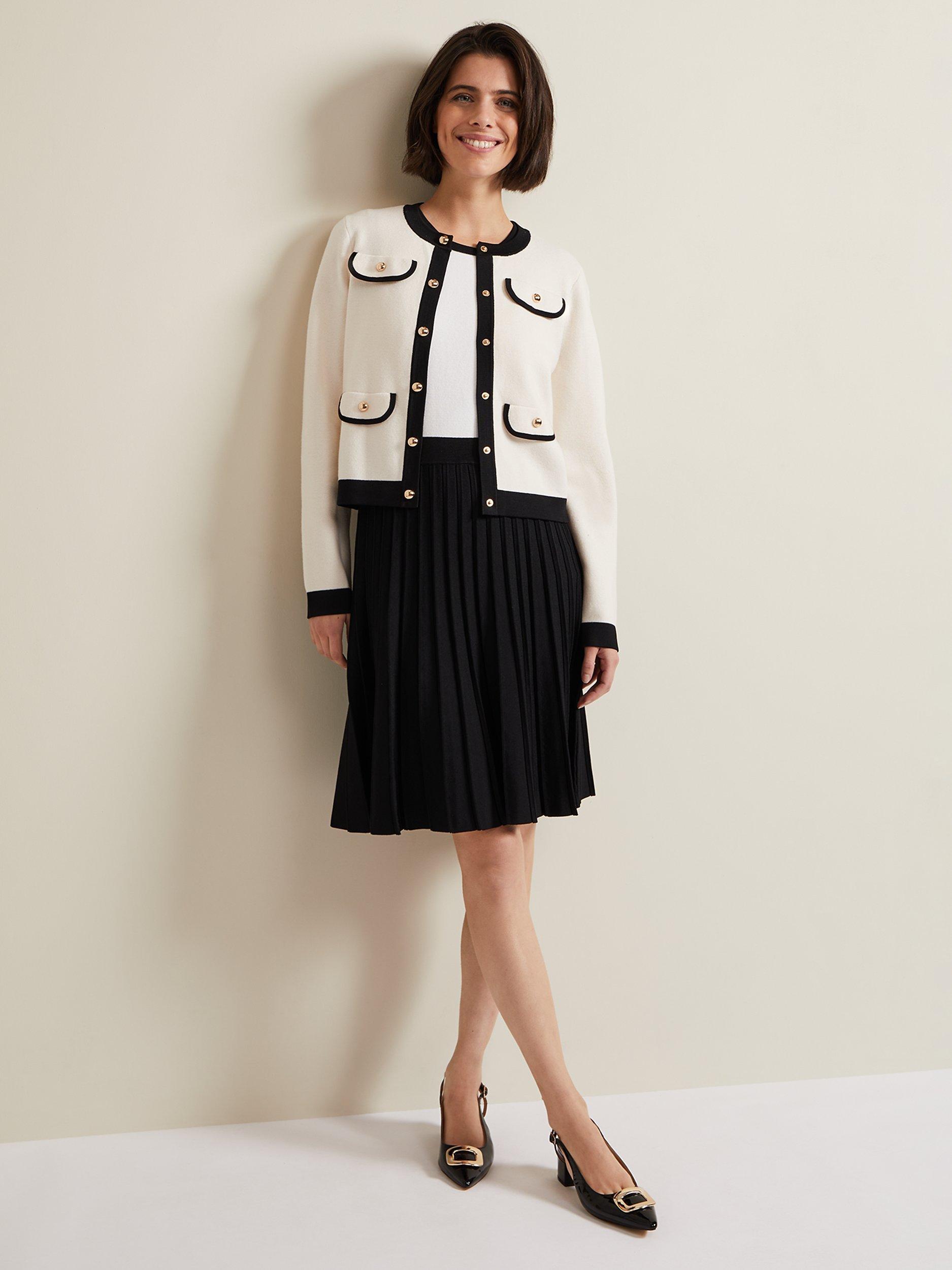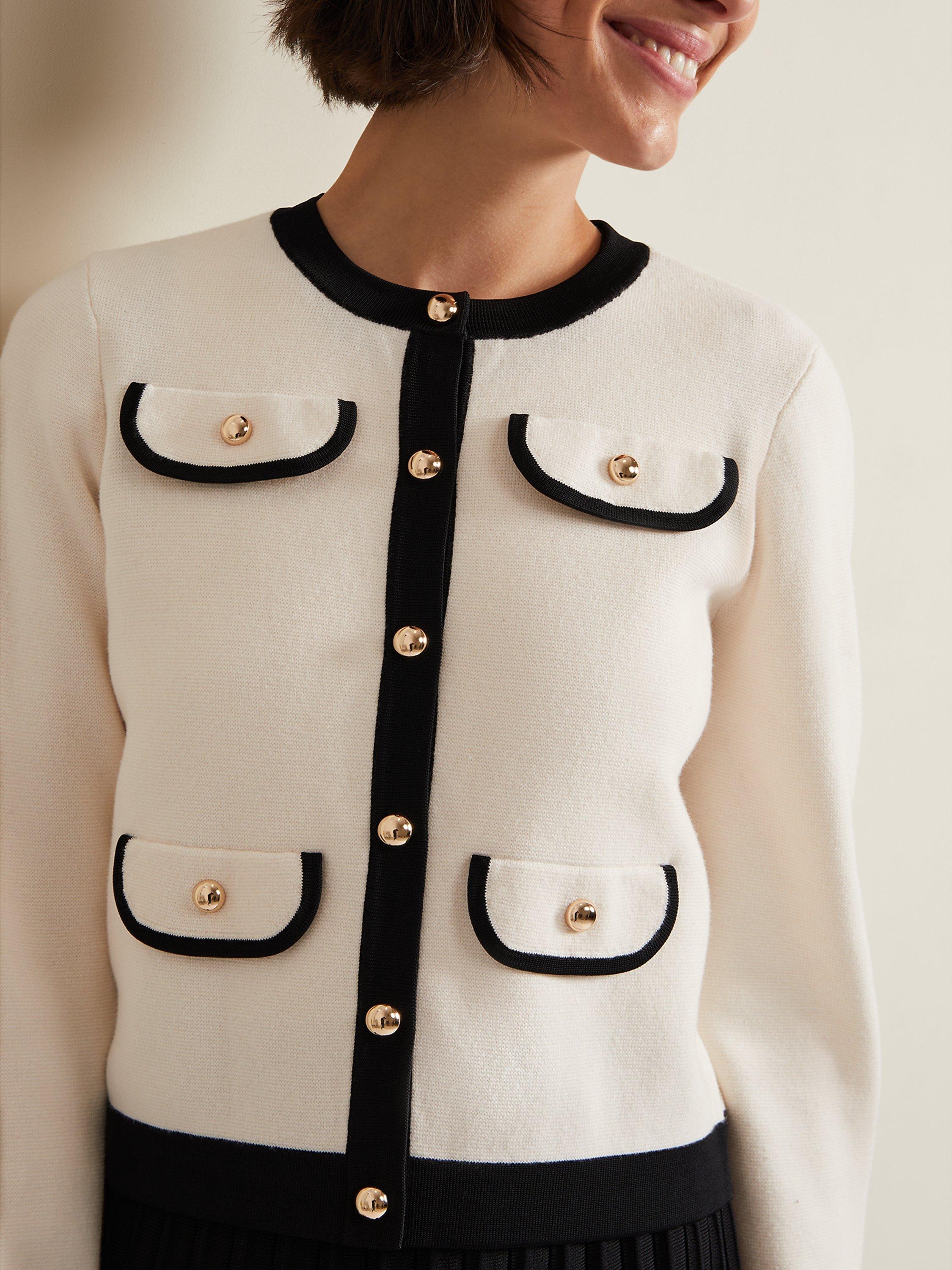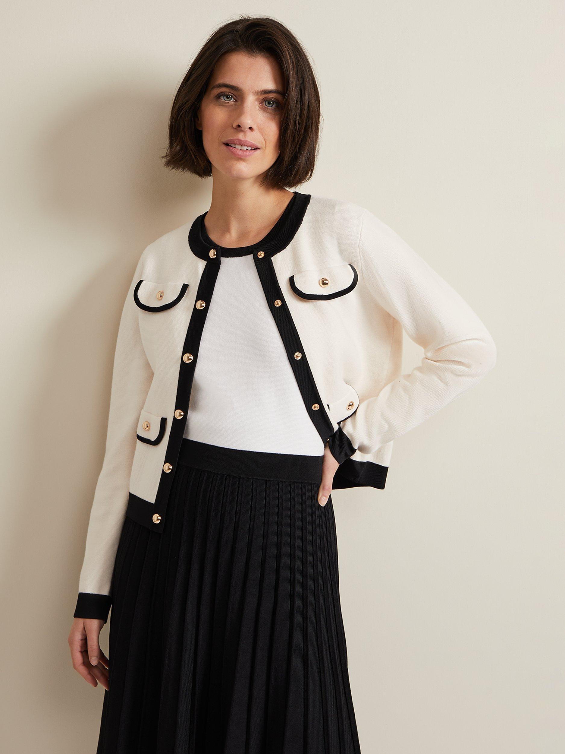 Elevate all your outfits with the Libby jacket. Designed in a versatile shade, this blazer features contrast piping flap pockets and gold button detailing flap pockets to a slim fit silhouette. We wear ours with a black pleated skirt with heels for a smart yet stylish look.