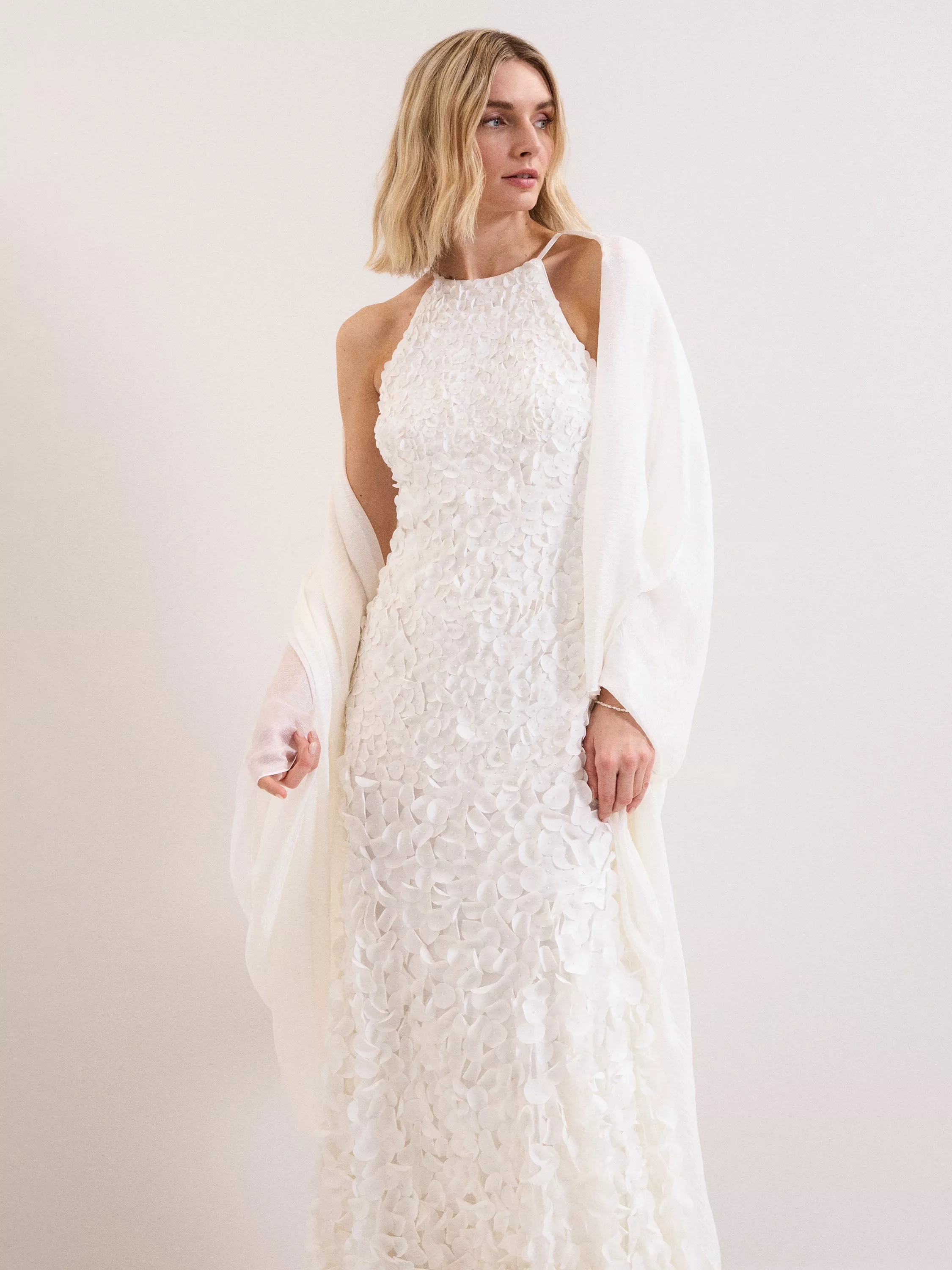 A sheer bridal scarf by Phase Eight with a soft texture that layers effortlessly over your look.