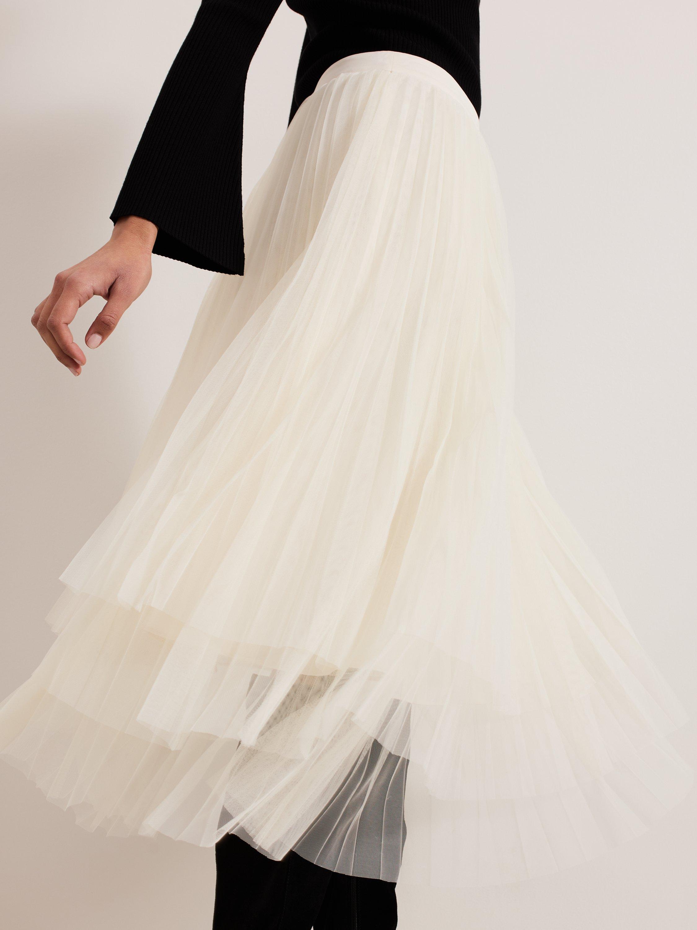 The Lila skirt is an effortlessly elegant solution to day to night dressing. The layered tulle brings fullness and soft movement to the silhouette whilst the colour makes it versatile enough for every season. For an everyday look style with your favourite boots or dress up with heels to take you through to the evening.