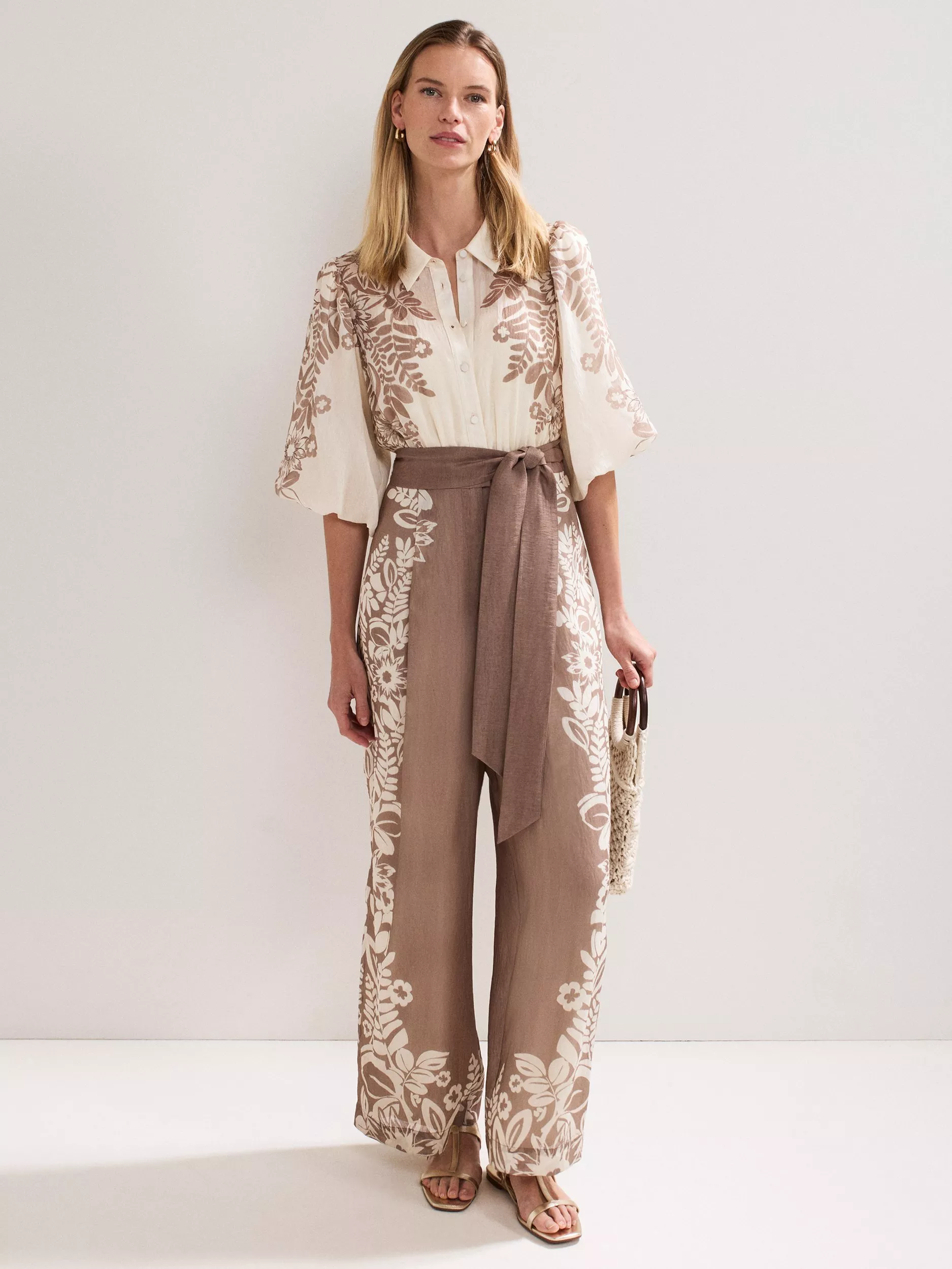 Embrace simplified elegance with the Lilja jumpsuit. In a trending shade, it features a feminine leaf print for subtle detailing. The lightweight linen blend has been designed to prevent creasing on warmer days, perfect for dressing up or down throughout summer.