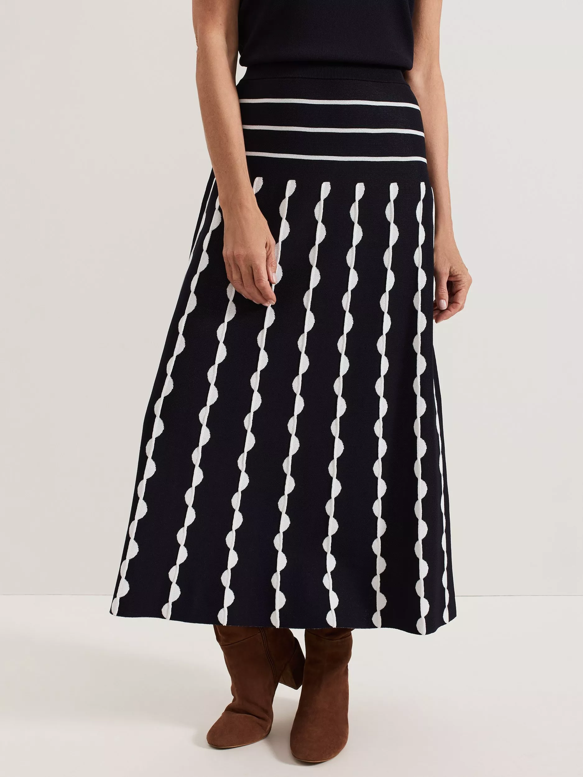 A transitional wardrobe staple, the Liz skirt will become your go-to style. With a weighty knitted material, this maxi skirt features a striped pattern at the dropped waist to flatter your figure. Subtle pleating and scalloped detailing throughout provide a contemporary edge.