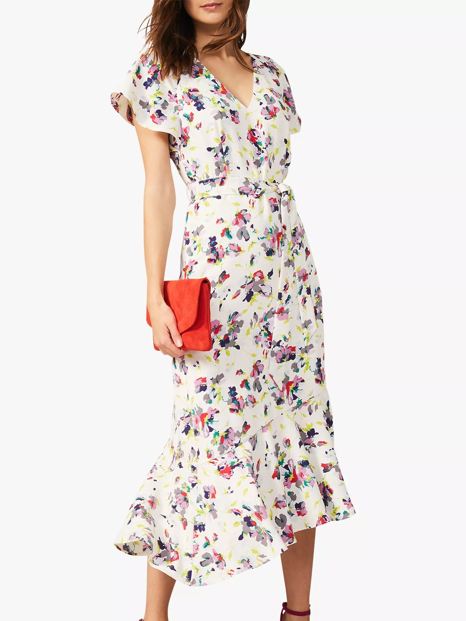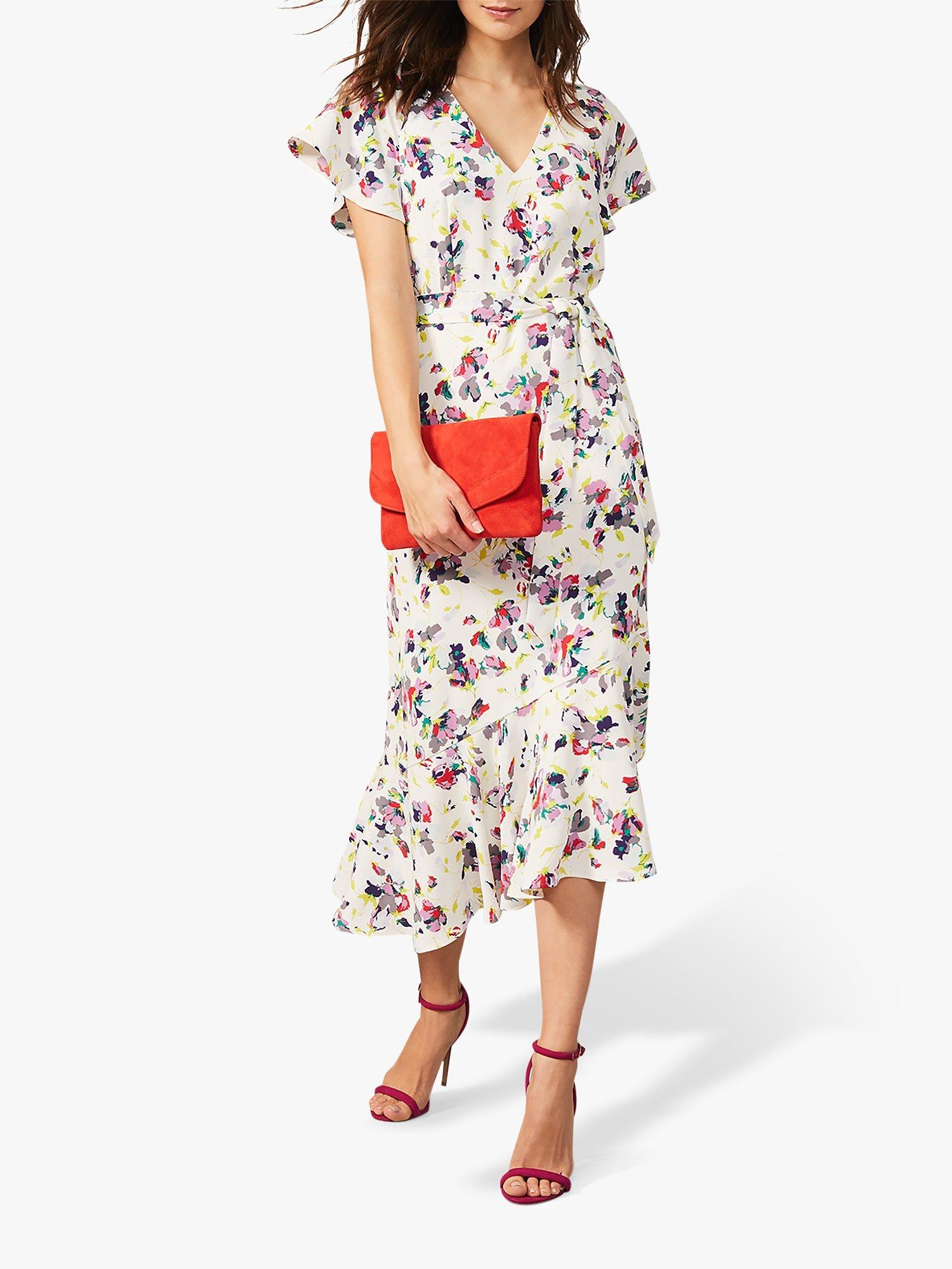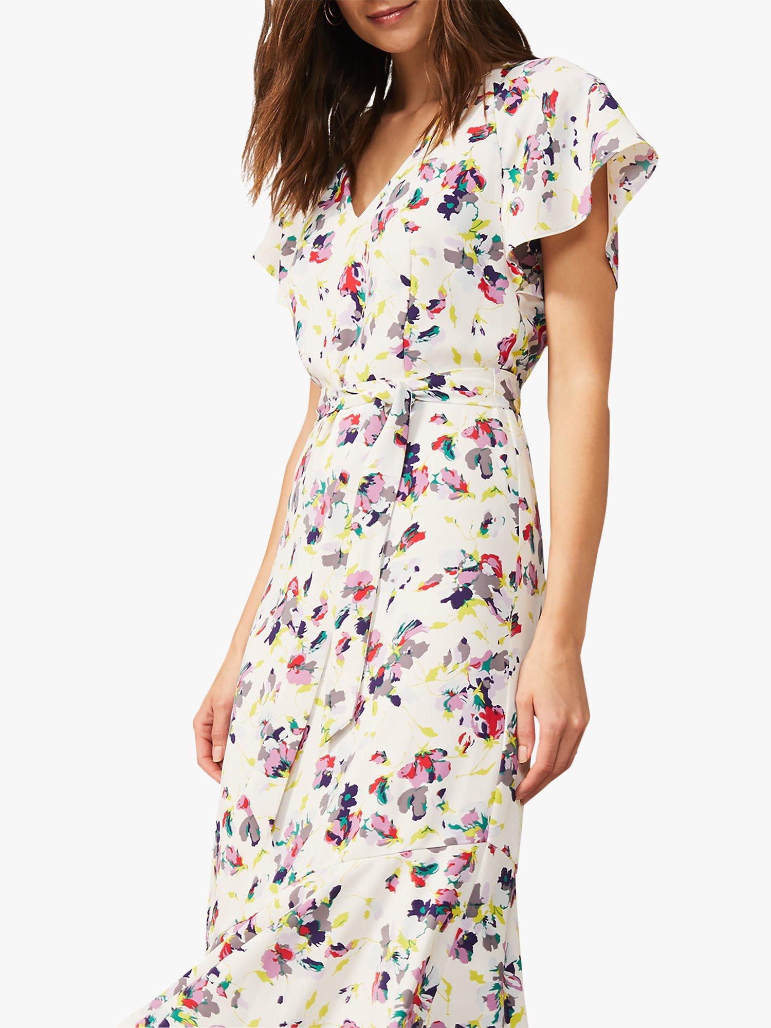 Cut from lightweight fabric for graceful fluidity, this dress from Phase Eight is the perfect occasion style. Designed with a tie-belt waist that draws in your silhouette, it's detailed with delicate frill sleeves and an asymmetric peplum hem for a feminine finish. Complete your look with strappy heels and a box clutch bag.