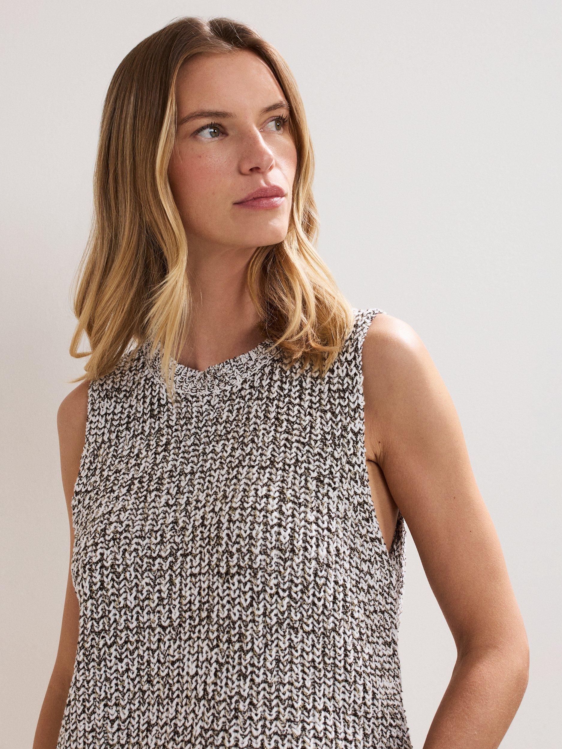 The Lorelle knit is the ultimate luxe trans-seasonal layering piece. Subtle metallic thread detailing provides a contemporary edge, perfect for adding a touch of subtle glamour to any outfit.