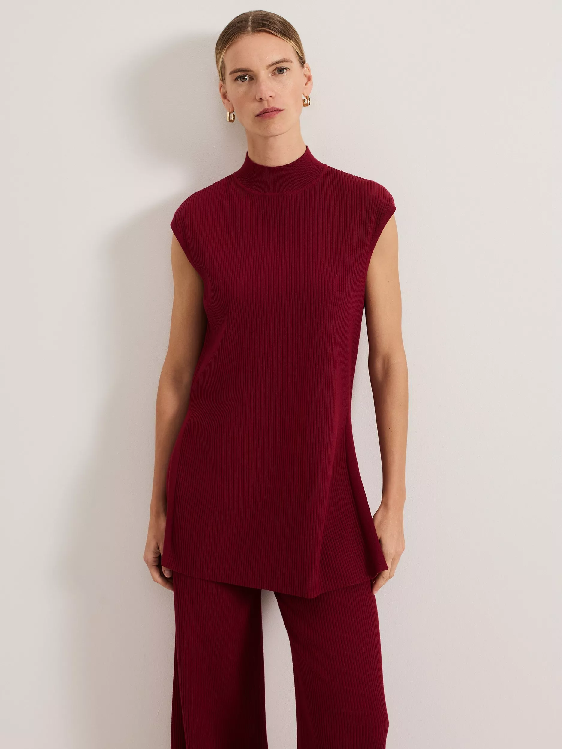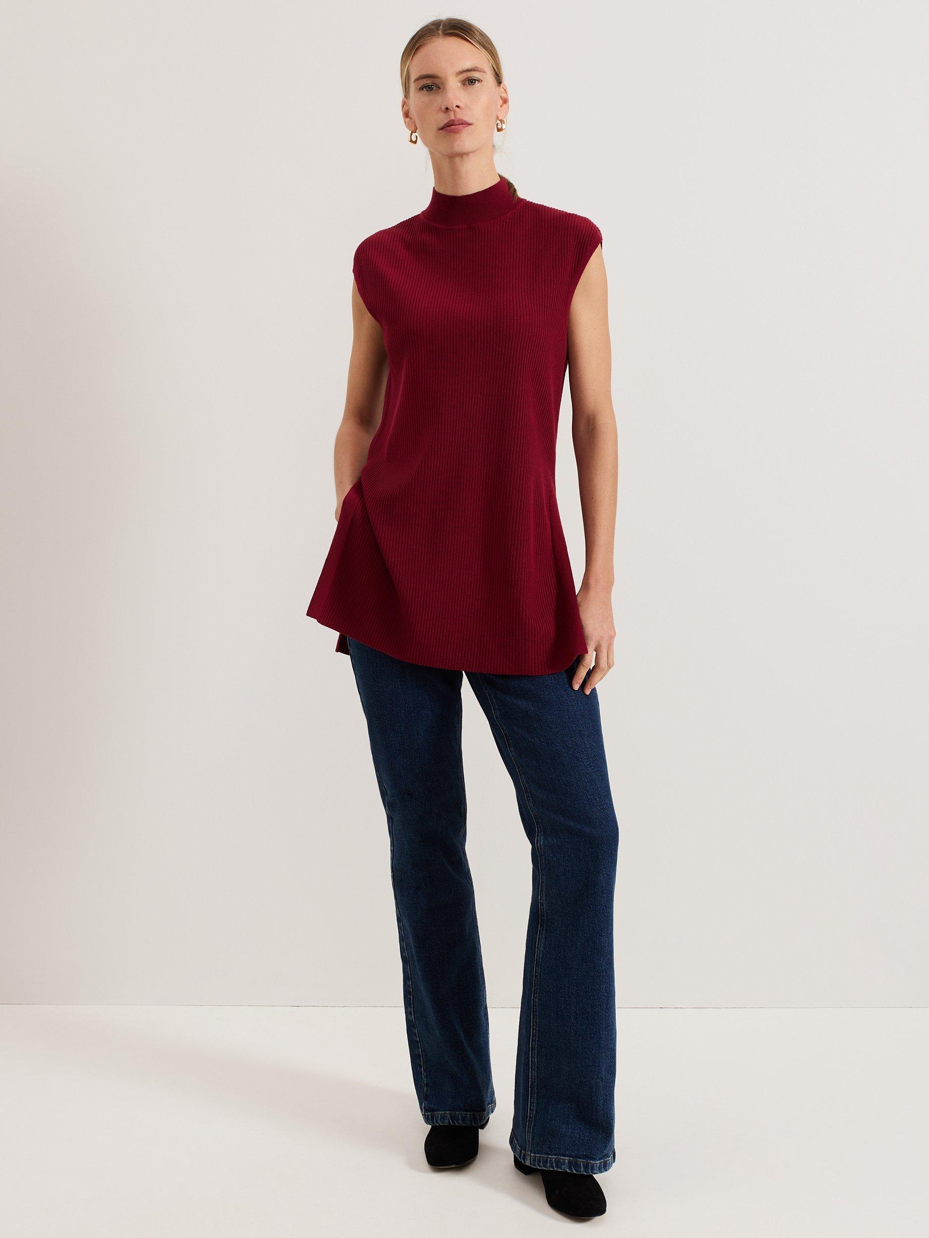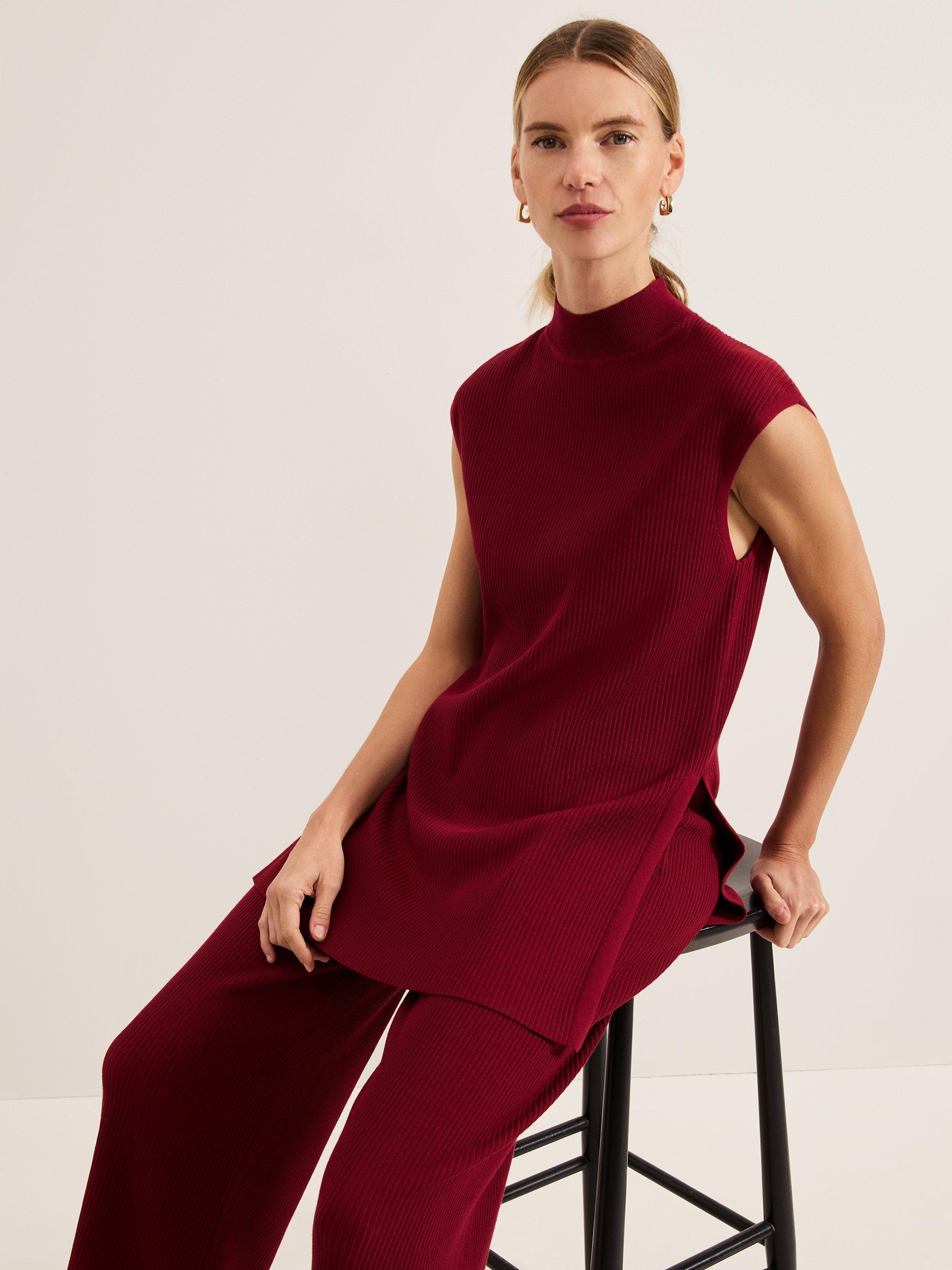 In a rich hue, the Lori tunic is a transitional style hero. The ribbed knitted texture provides a subtle stretch, perfect for wear-all-day comfort, whilst the longline silhouette further relaxes the shape, updated with contemporary side splits.