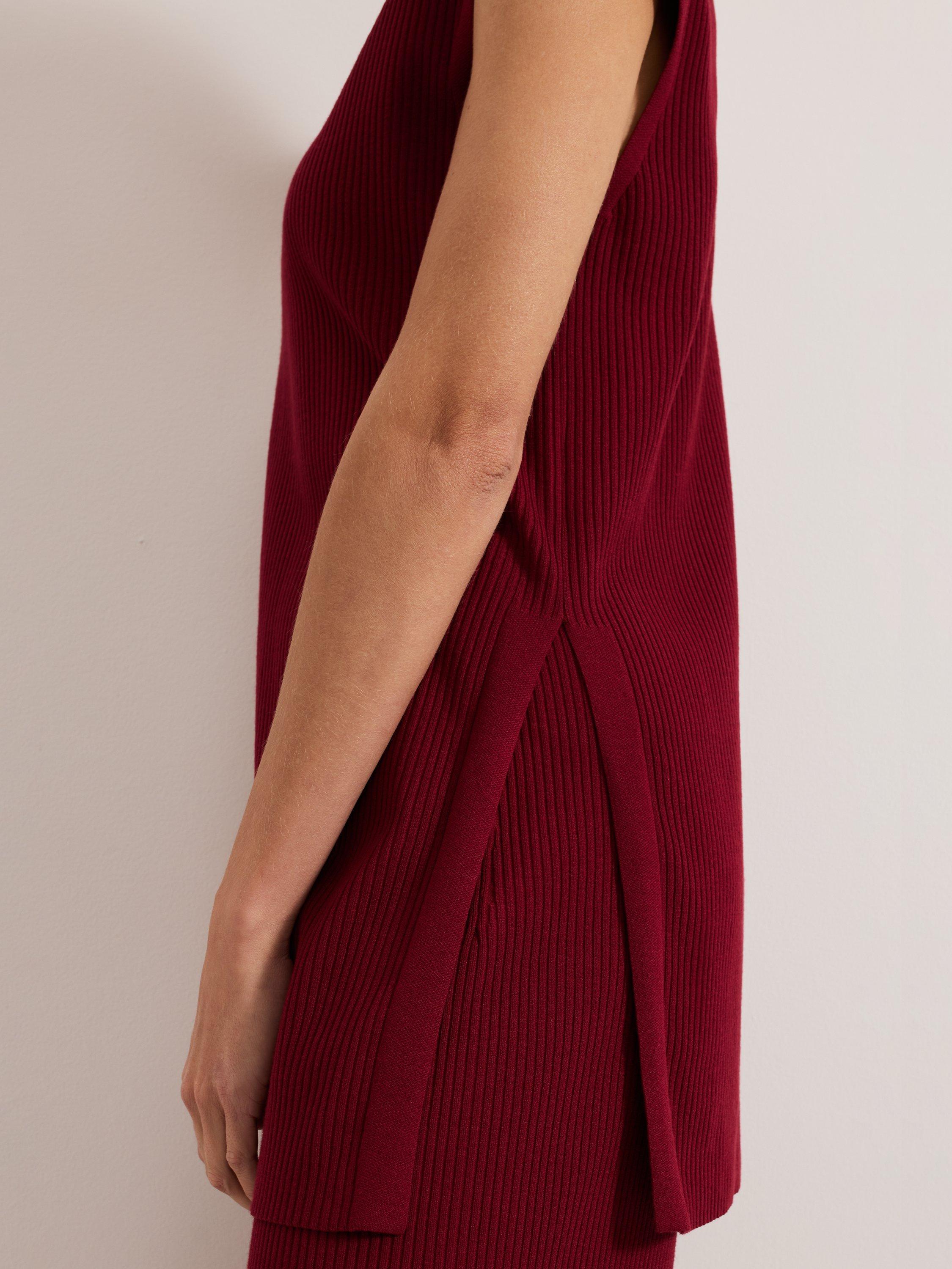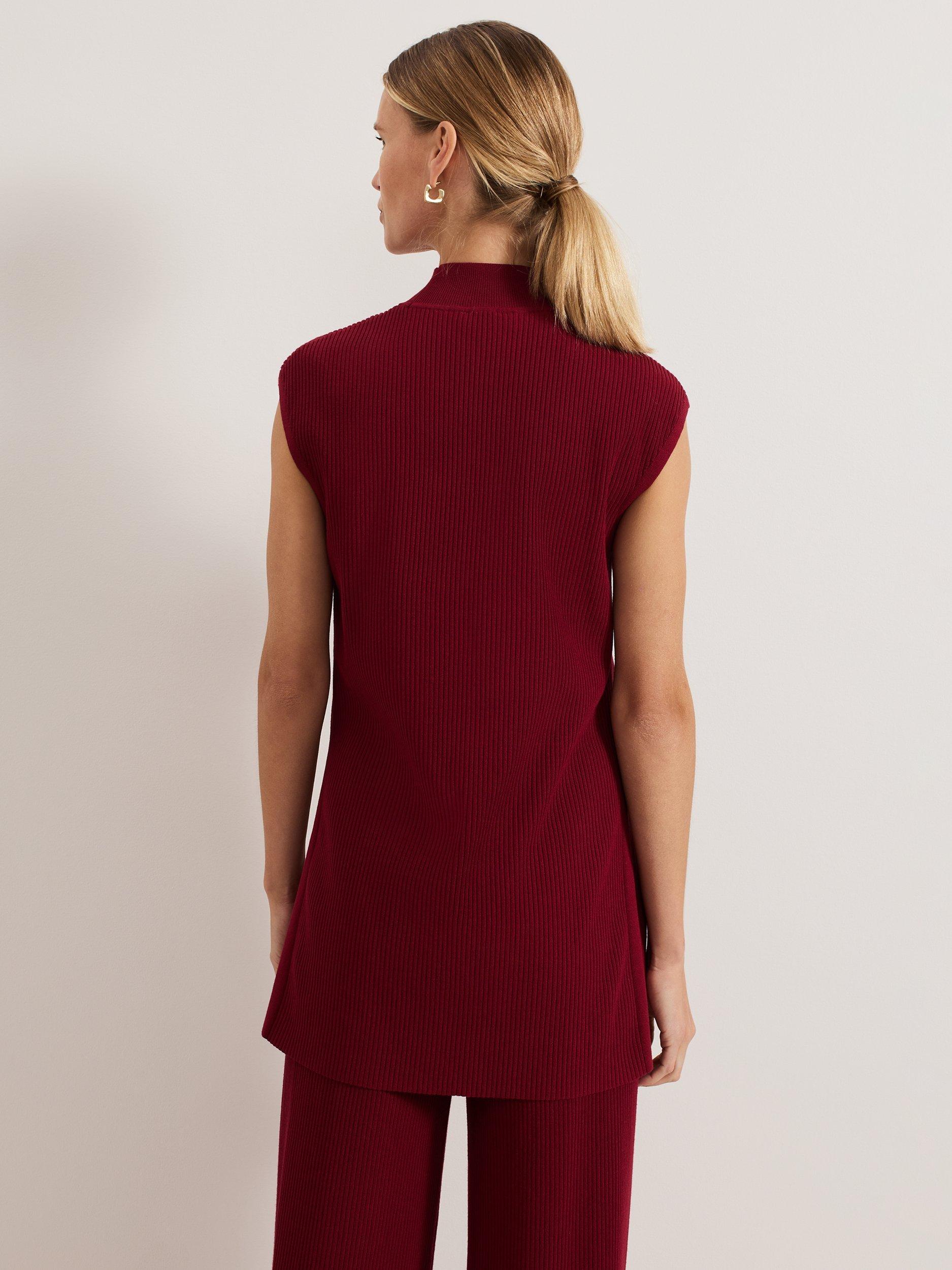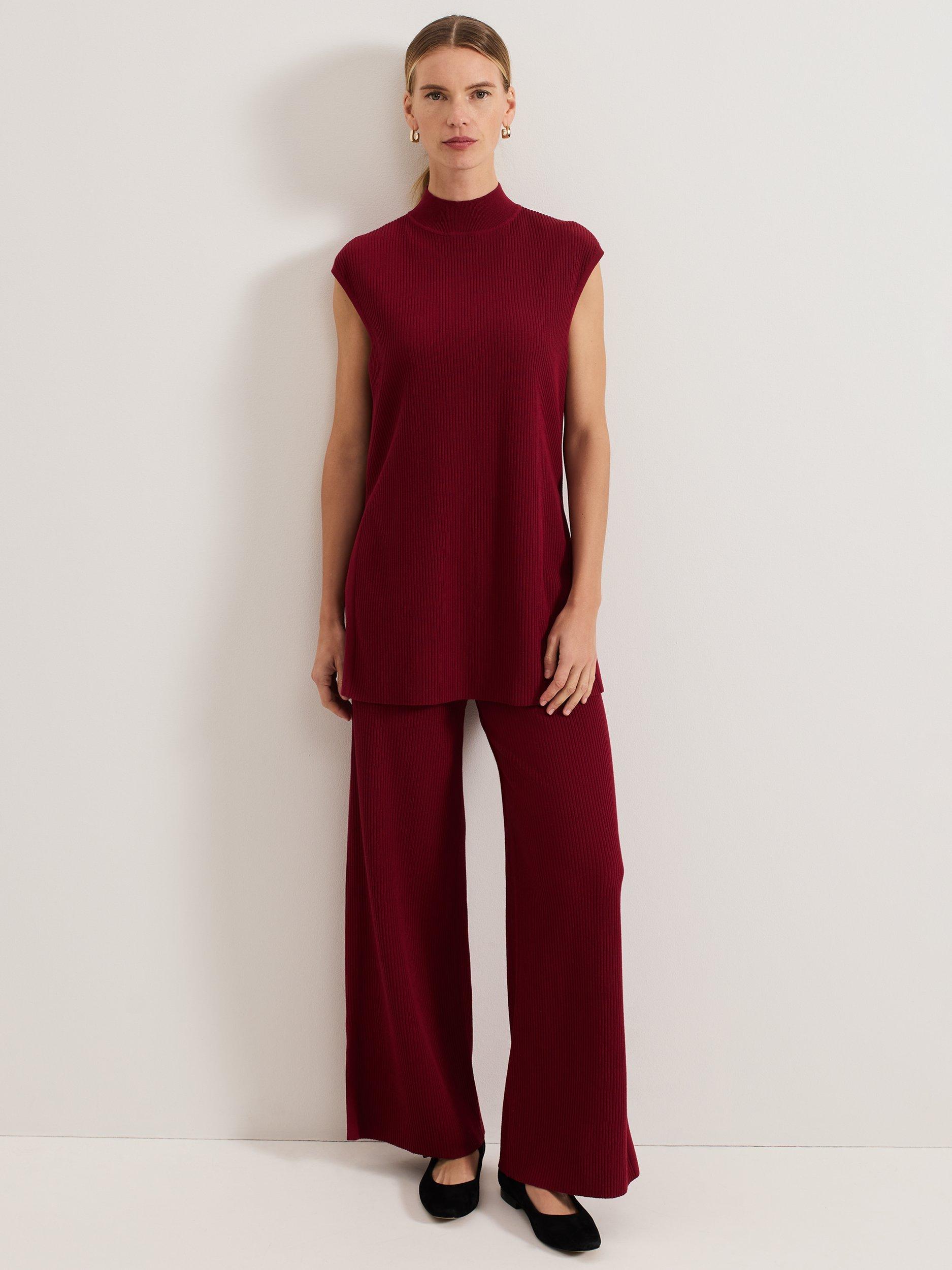 In a rich hue, the Lori tunic is a transitional style hero. The ribbed knitted texture provides a subtle stretch, perfect for wear-all-day comfort, whilst the longline silhouette further relaxes the shape, updated with contemporary side splits.