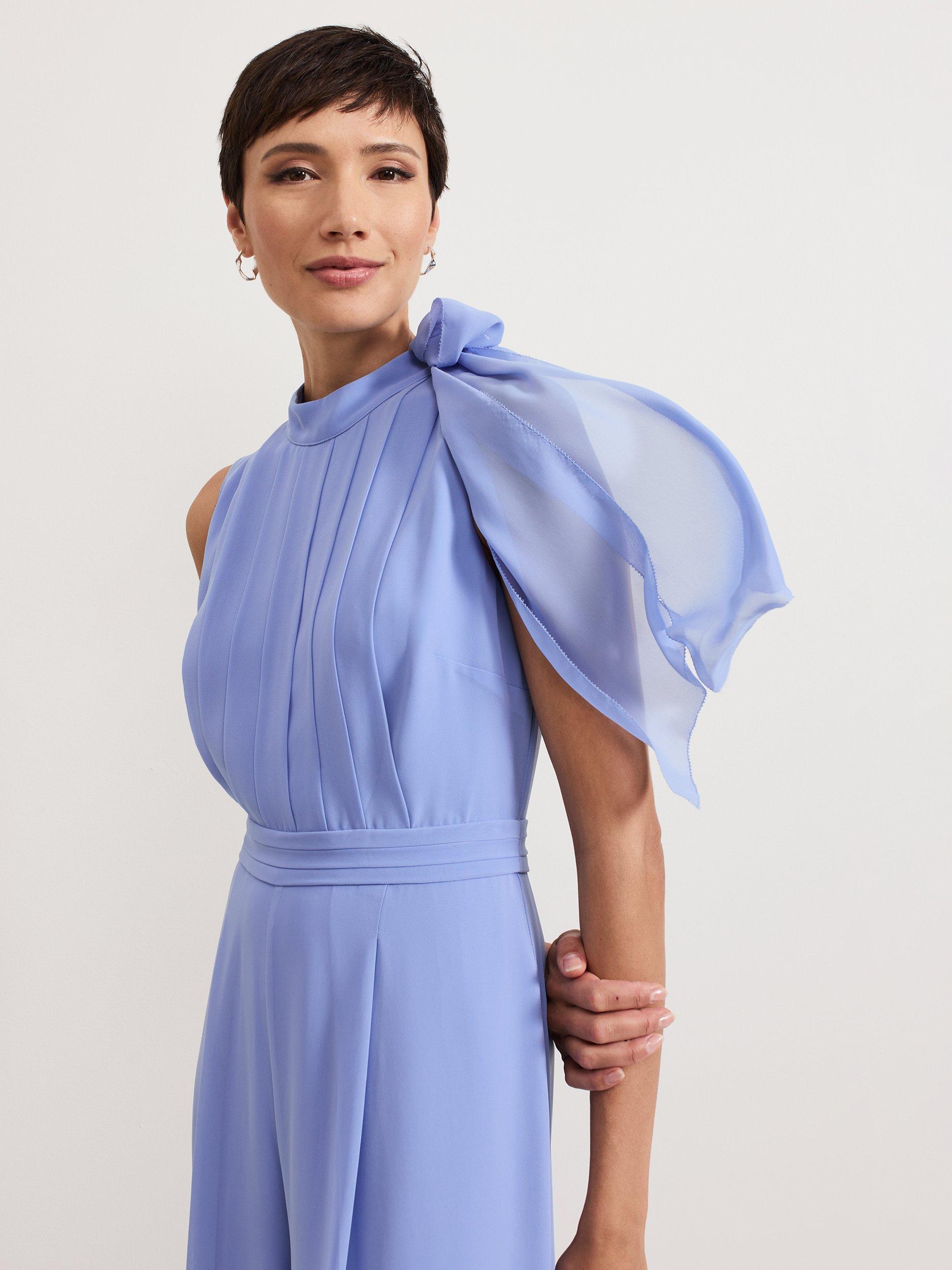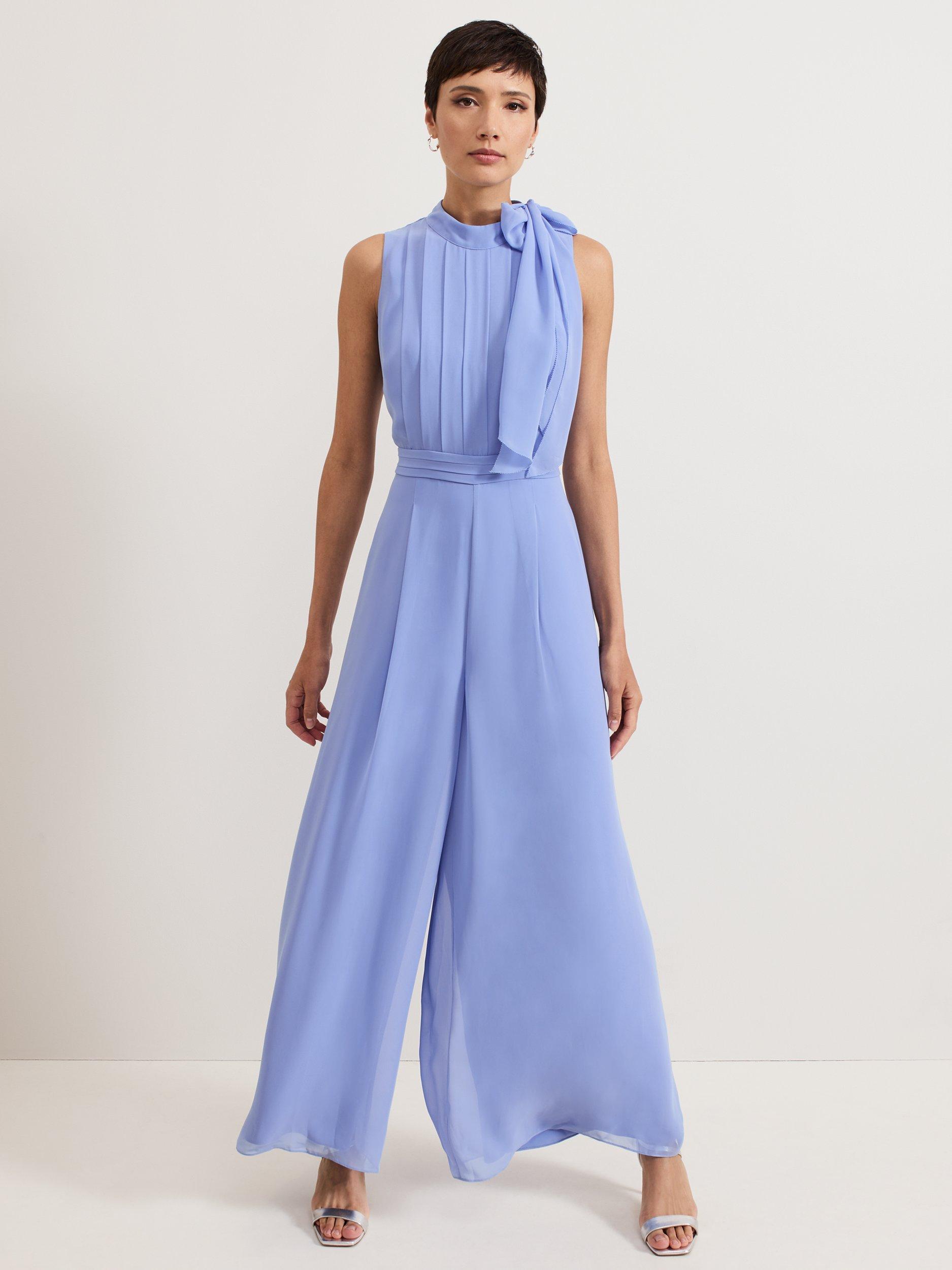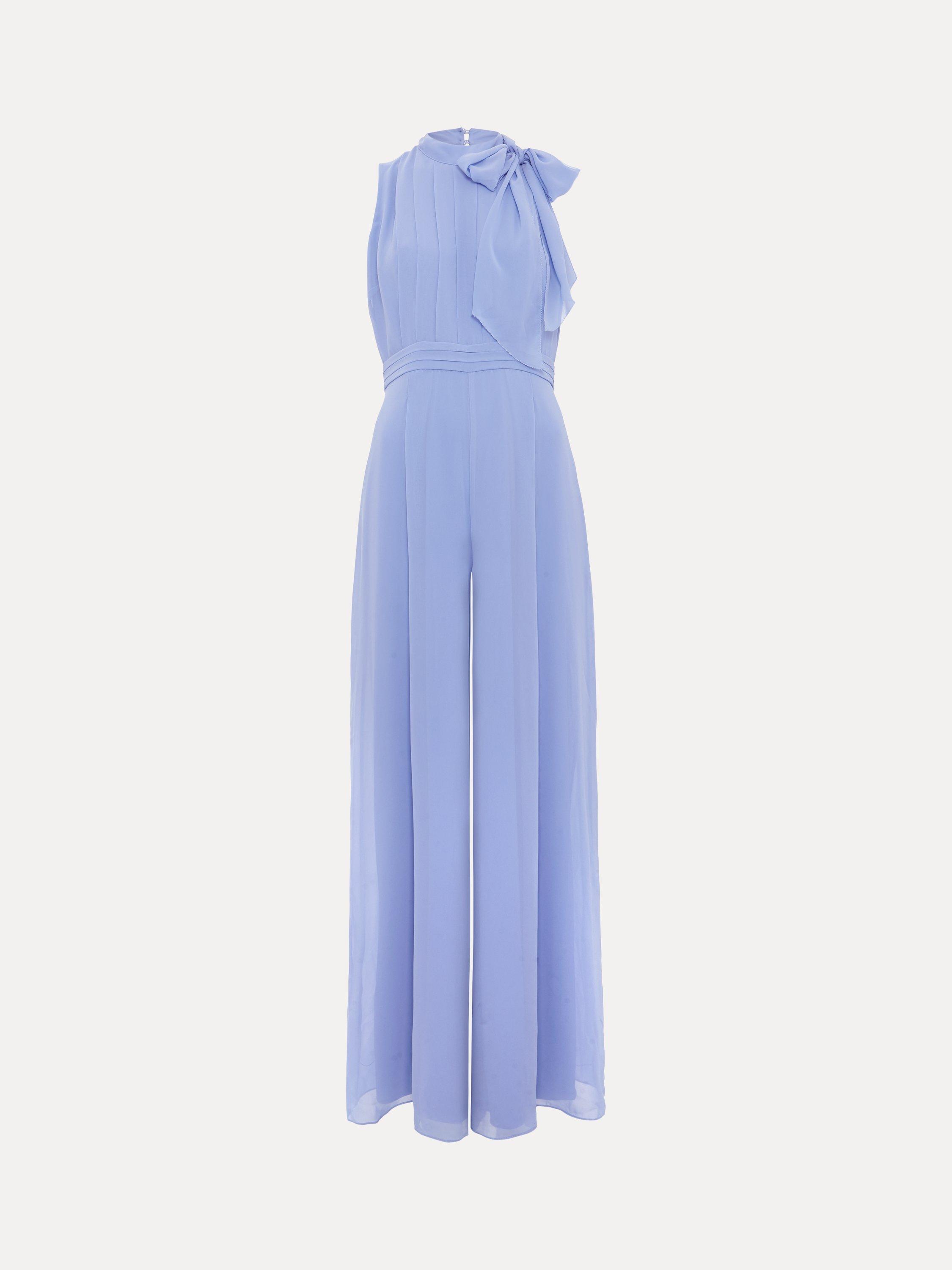 Made from a fluid crepe fabric, the Lucie jumpsuit is a standout occasion style. Panelling on the bodice adds a contemporary touch before flaring through to exaggerated wide-leg trousers that create soft movement. Finished with an elegant pussybow neck detail, it's a sophisticated choice for all your events.