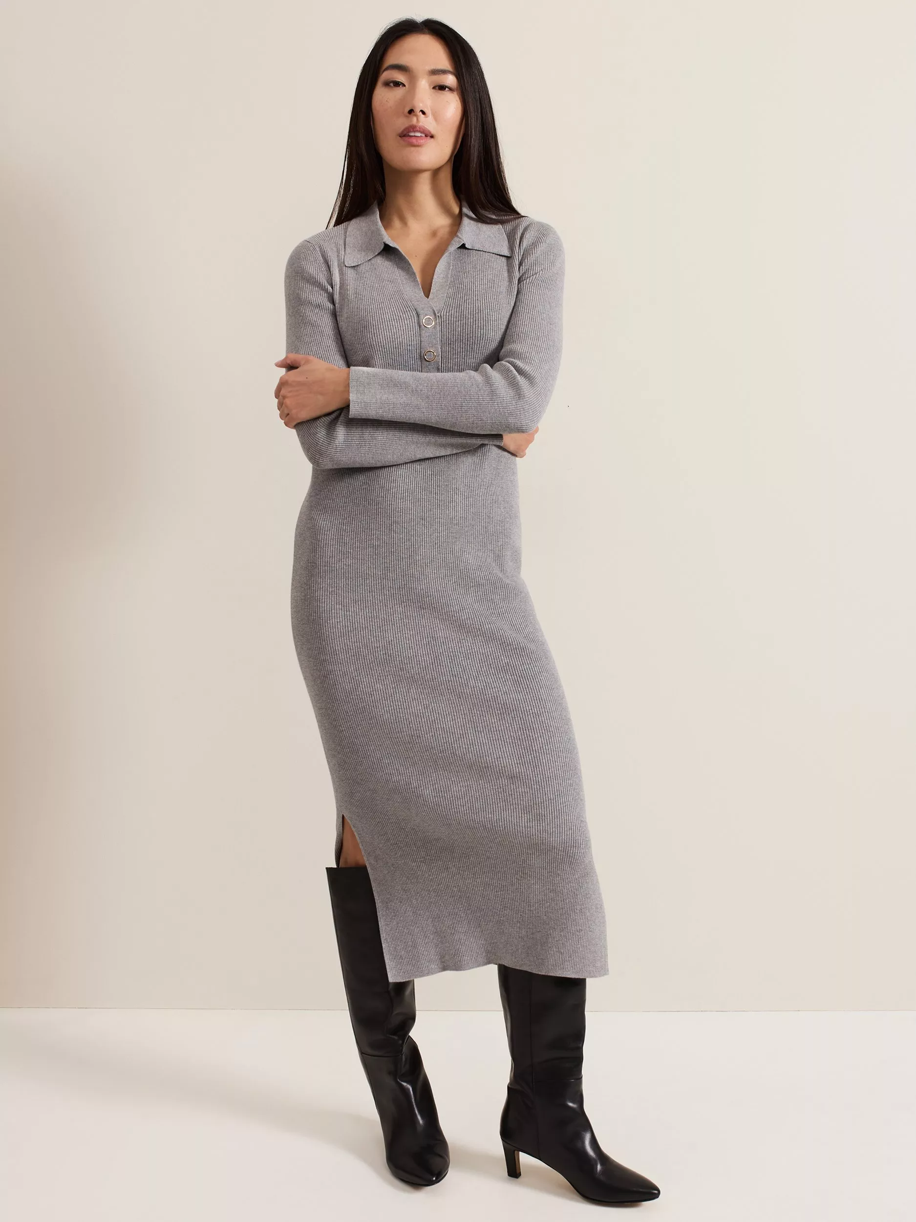 Looking for a timeless staple to add to your wardrobe? The ribbed Lucy dress from Phase Eight features a collared V-neckline, gold popper detailing and split hems. The column shape skims the body to enhance your figure whilst allowing for a subtle stretch, perfect for all day wear.