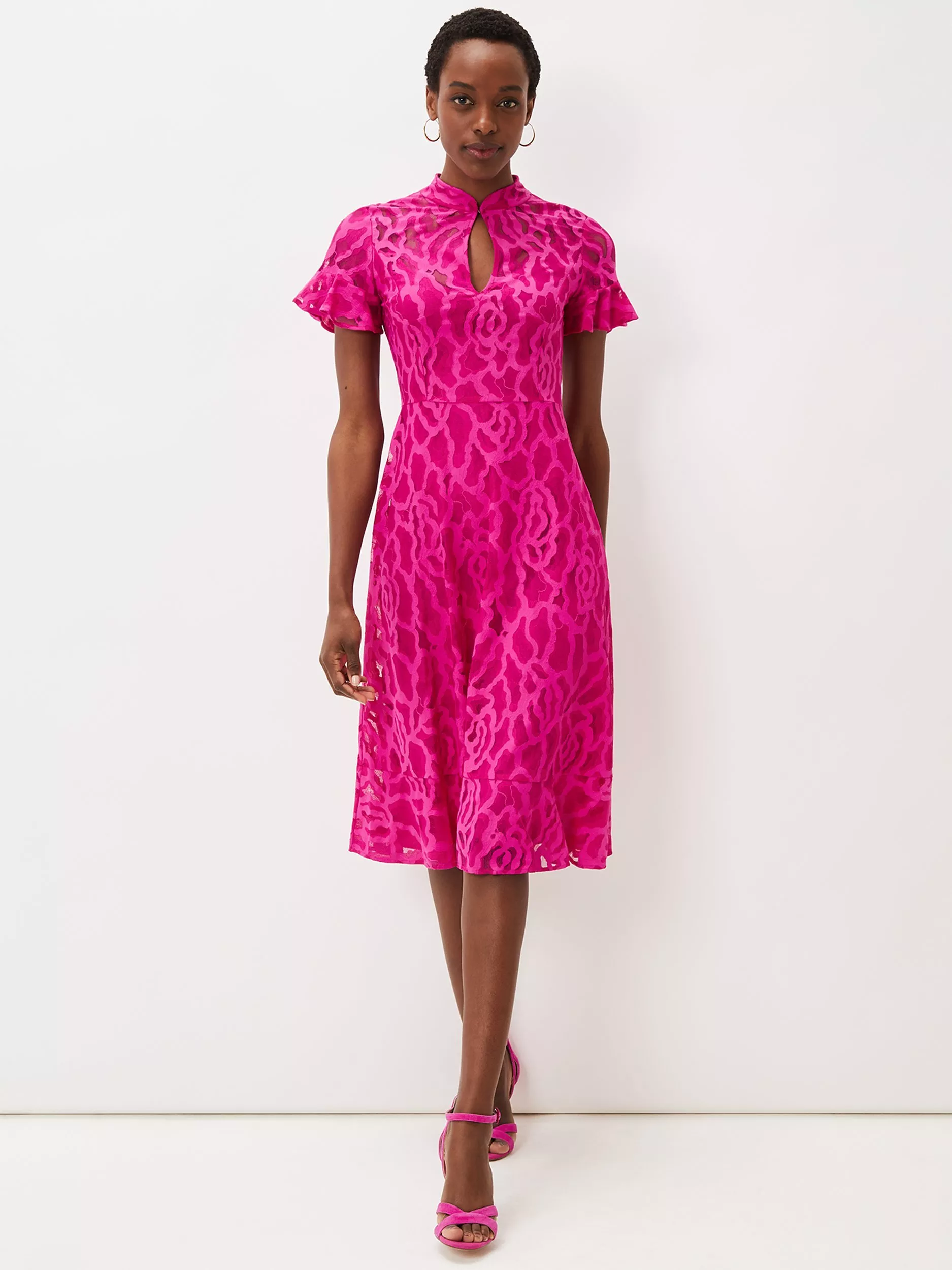Flaring out at the hem for a feminine silhouette, this knee-length dress by Phase Eight has a dainty lace detail all over.