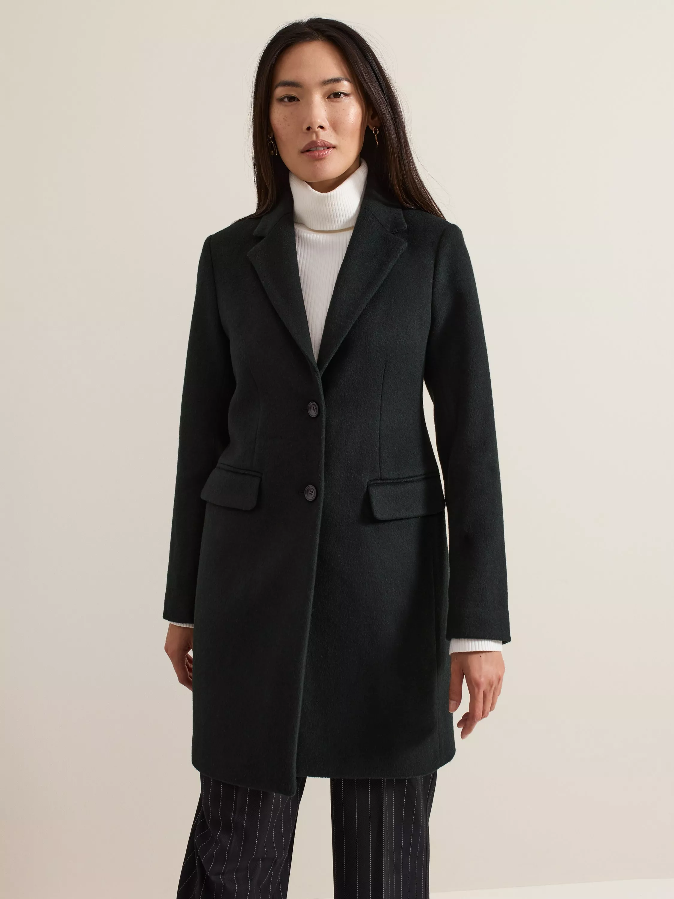 Celebrating minimalist silhouettes, this coat from Phase Eight elongates your profile with its longline cut and is made from a luxury wool blend.