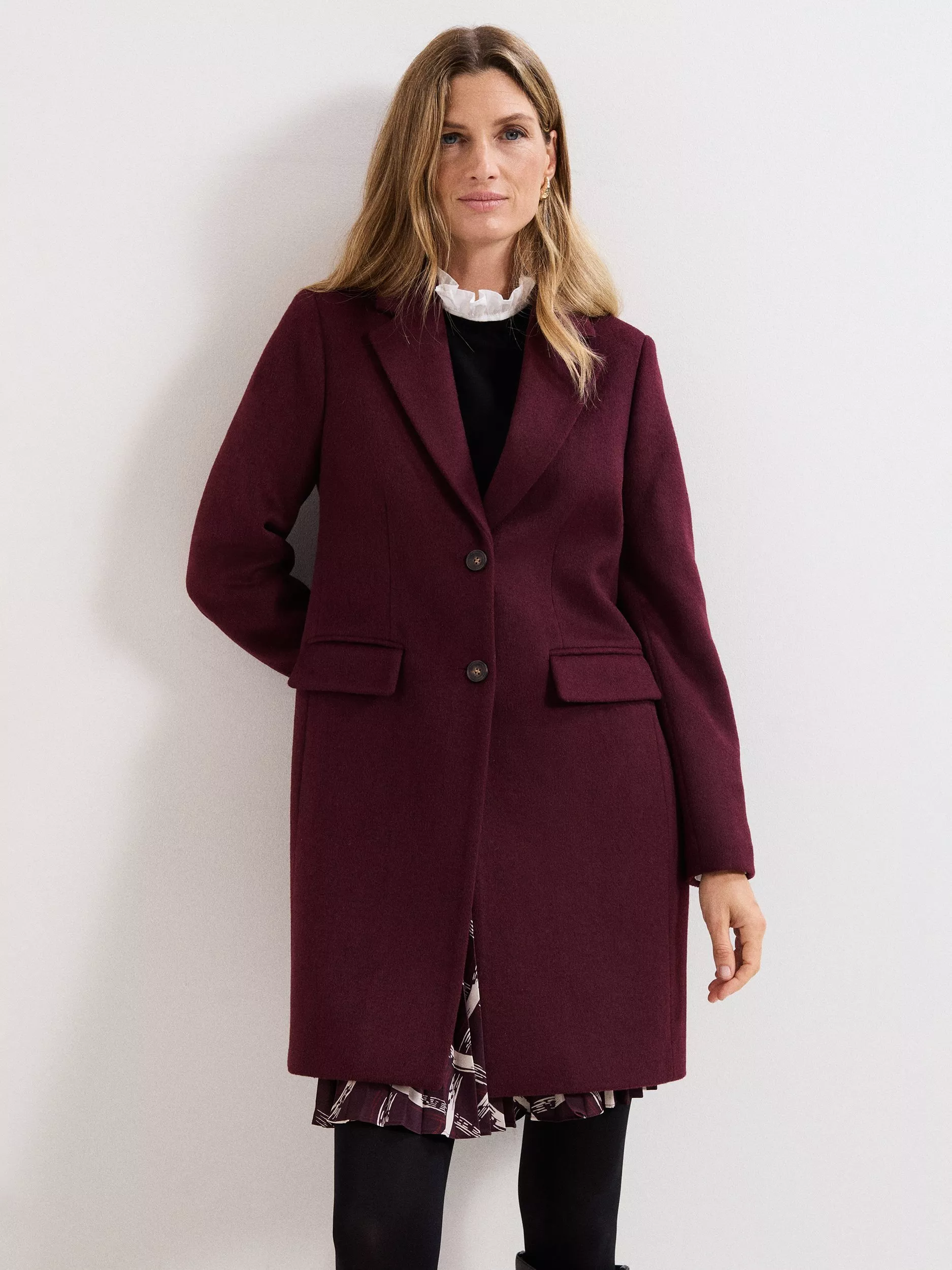 Designed in a soft wool-blend, this striking coat has a chic tortoiseshell button closing, cuff button detail, front pockets and a back vent, elevating this style further.