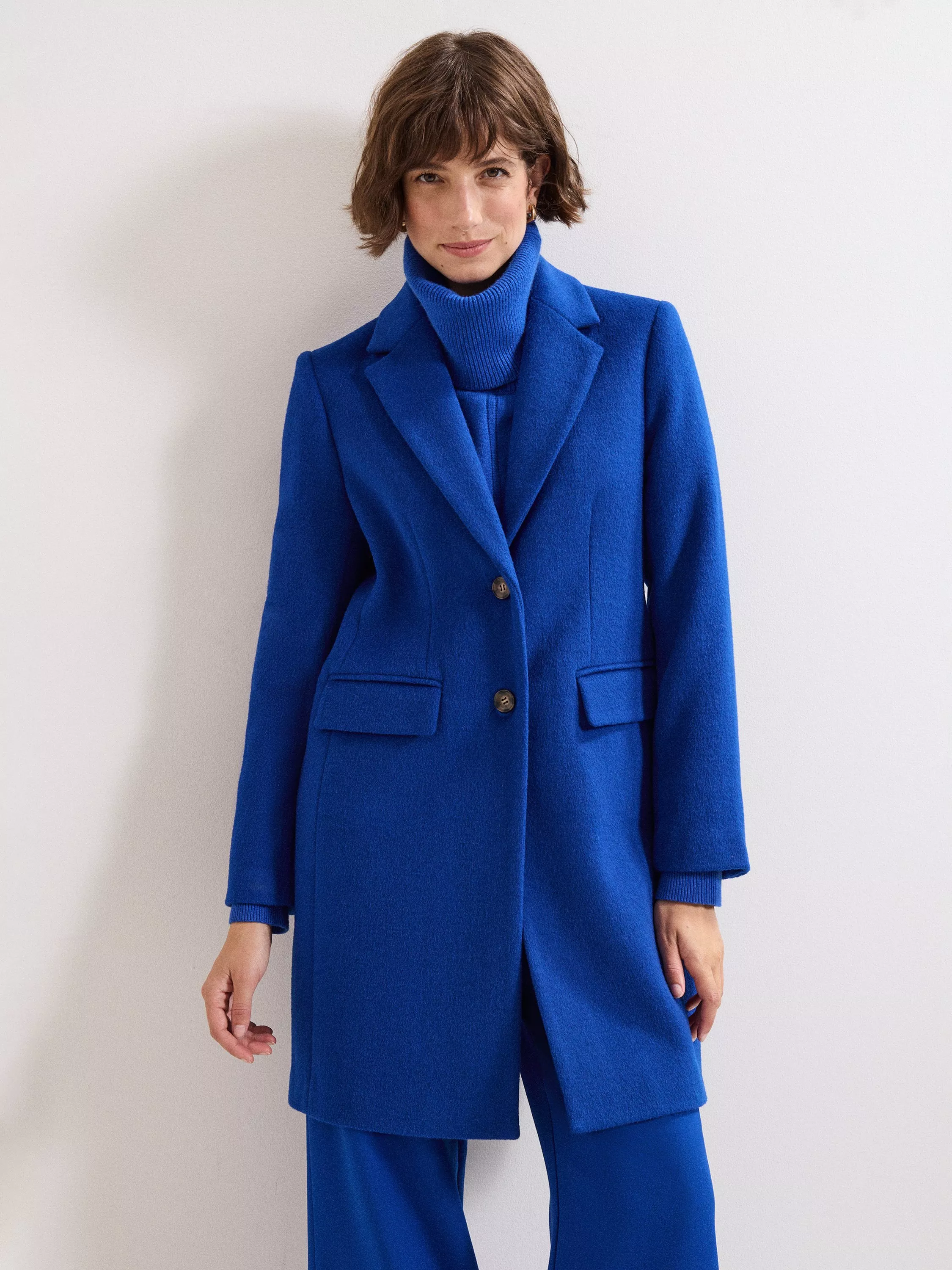 Designed in a gorgeous shade, the signature Lydia coat is crafted from a warm soft blend of recycled wool, featuring front flap pockets, button detailing and a back vent. Shaped for a streamlined slim fit, the coat is the perfect timeless silhouette to add to your outerwear collection.