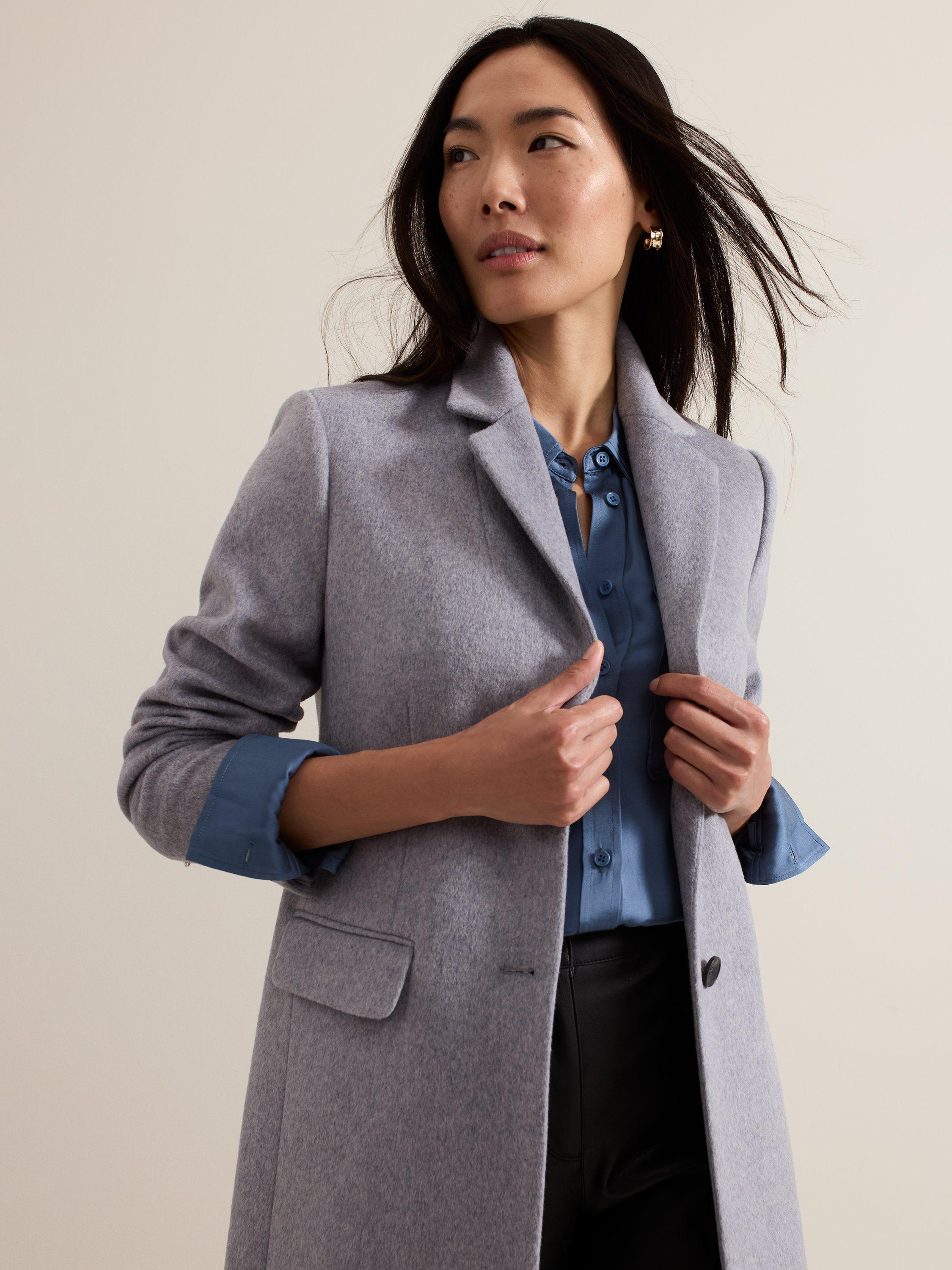 Designed in a gorgeous shade, the signature Lydia coat is crafted from a warm soft blend of recycled wool, featuring front flap pockets, button detailing and a back vent. Shaped for a streamlined slim fit, the coat is the perfect timeless silhouette to add to your outerwear collection.