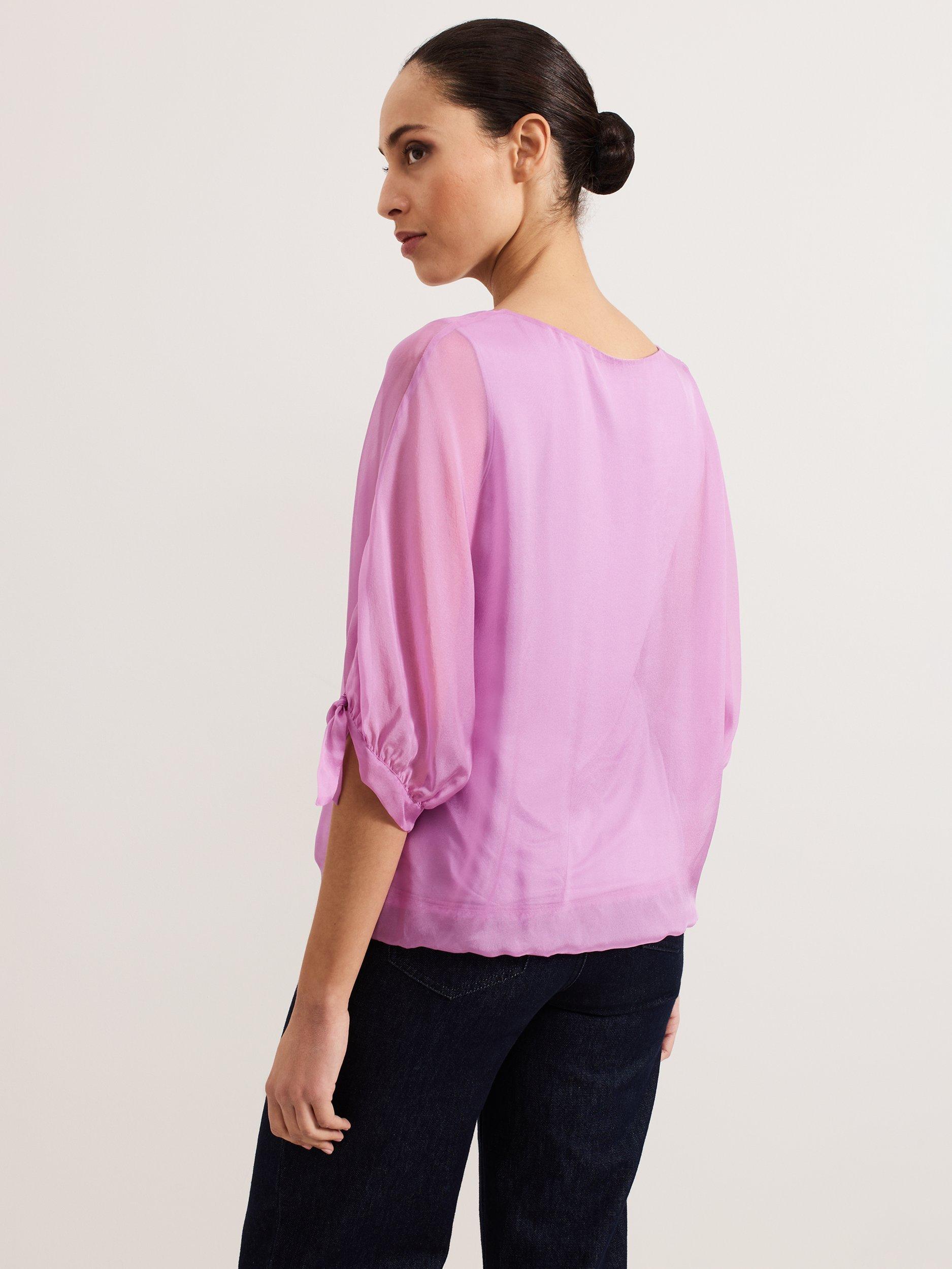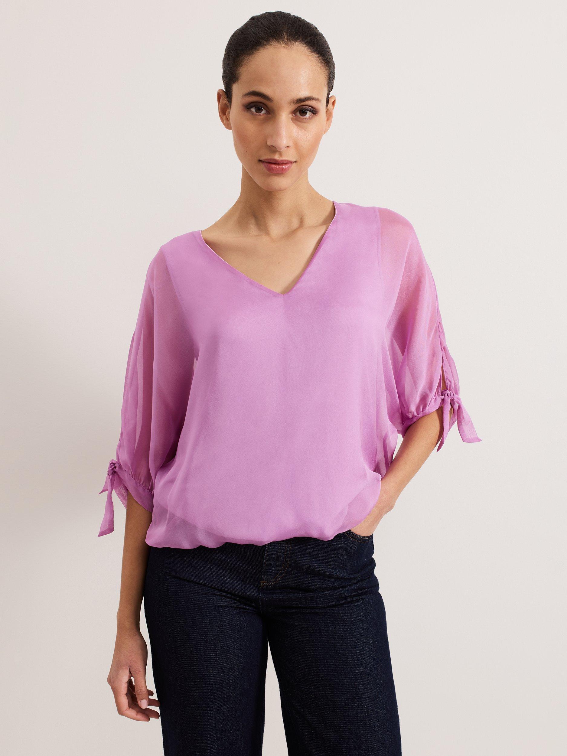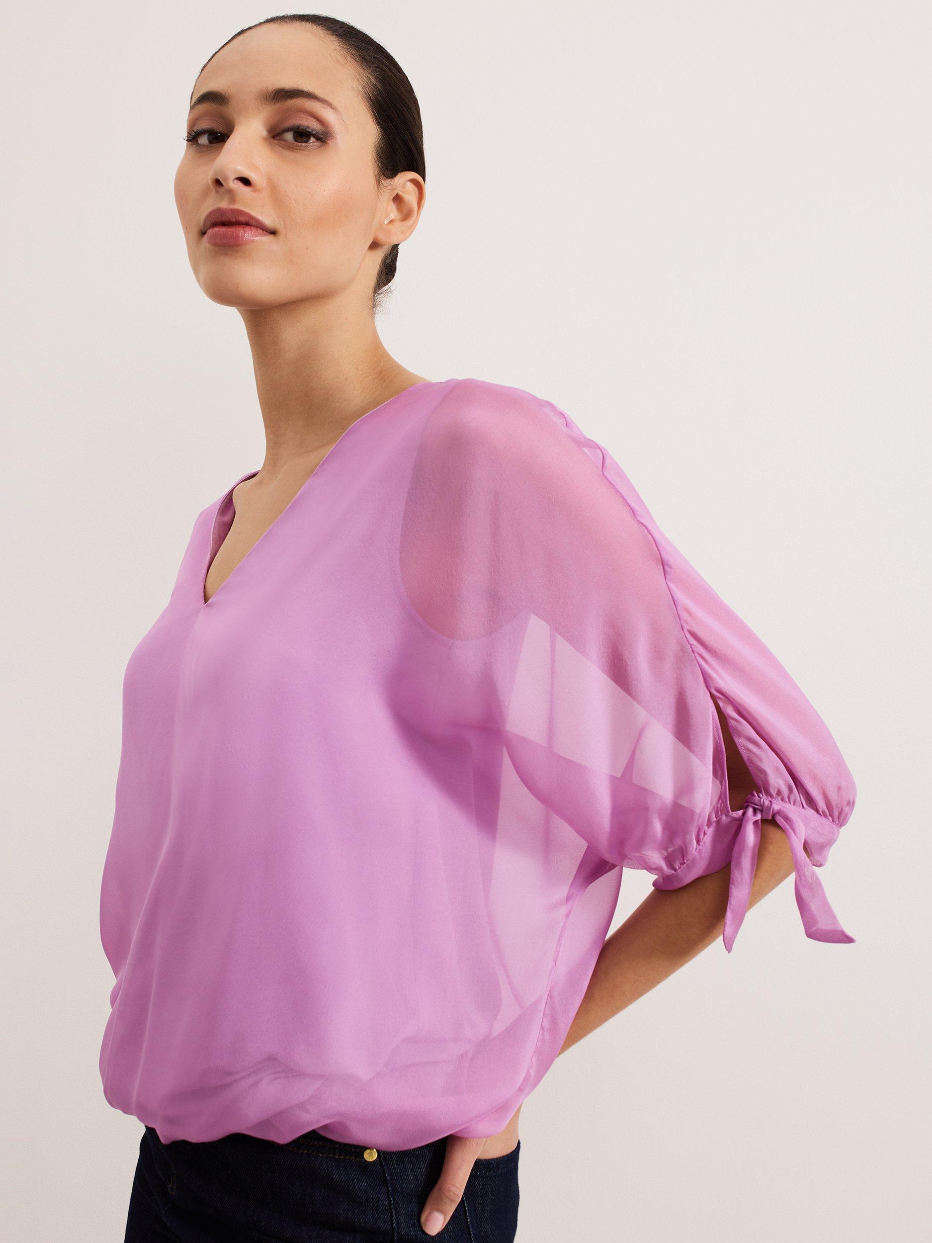A luxuriously versatile style to add to your wardrobe. Our 100% silk blouse features semi-sheer sleeves, finished with an elegant bow detail for a feminine edge. Simply style with your favourite trousers and shoes for a look that you can dress up or down for any occasion.