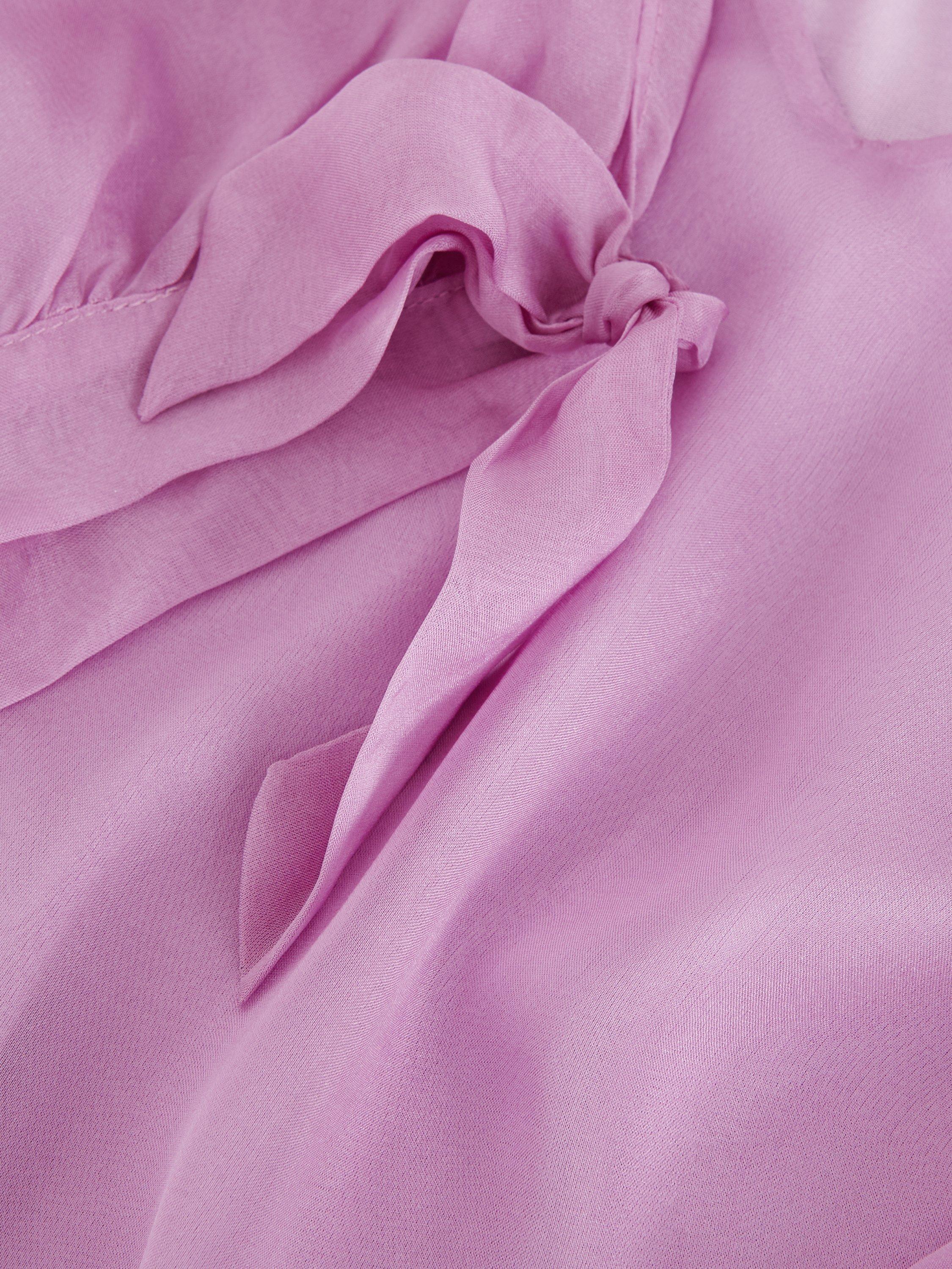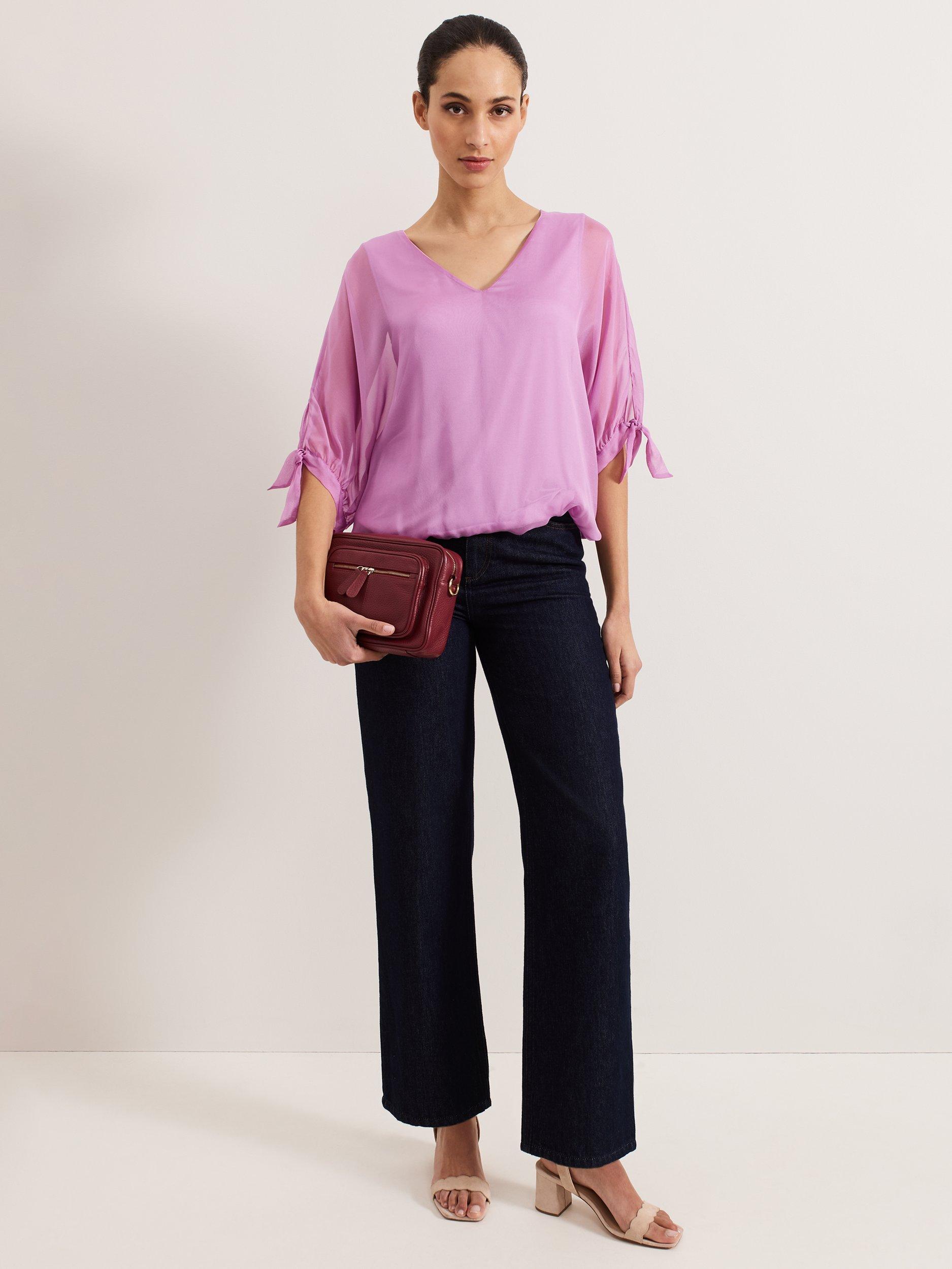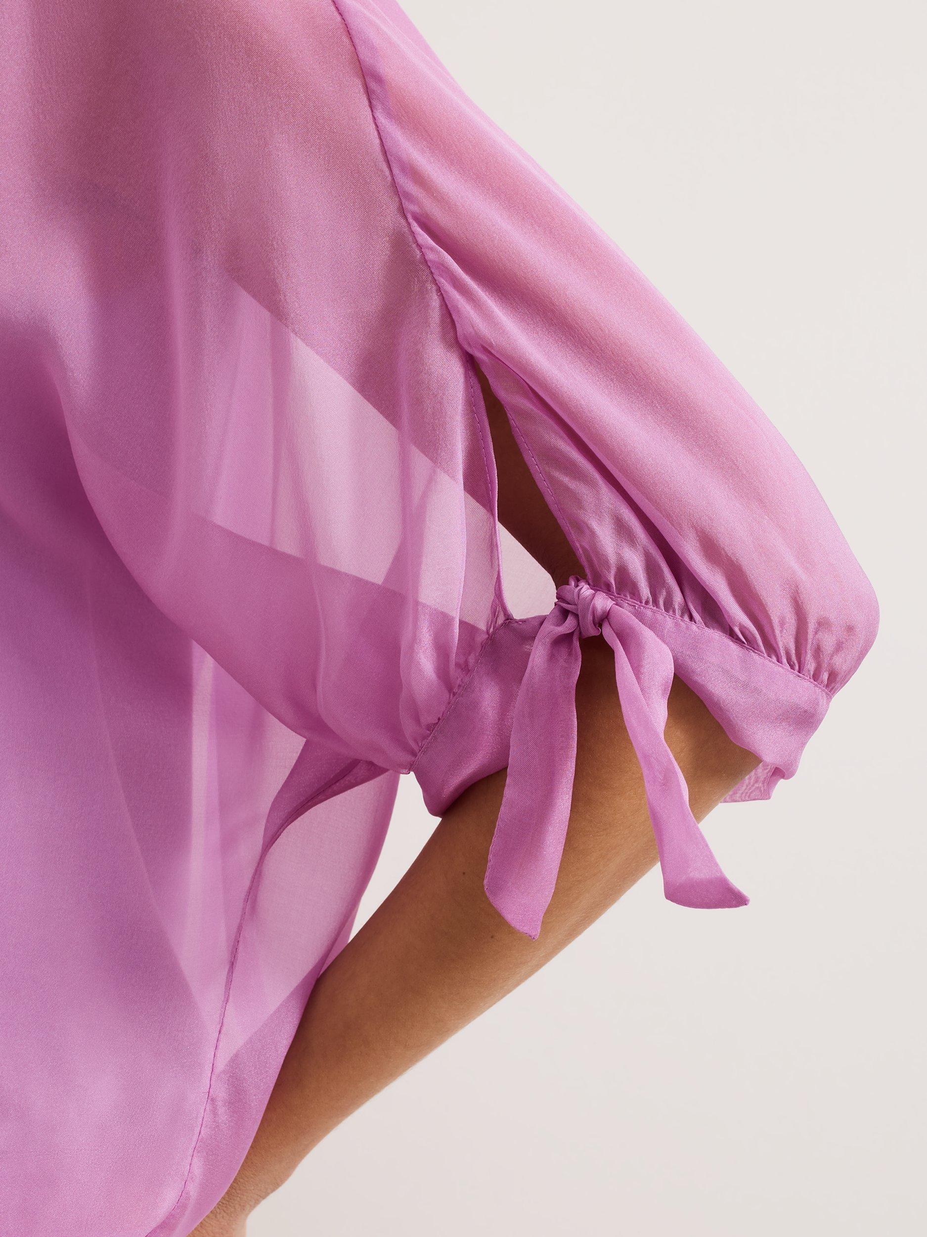 A luxuriously versatile style to add to your wardrobe. Our 100% silk blouse features semi-sheer sleeves, finished with an elegant bow detail for a feminine edge. Simply style with your favourite trousers and shoes for a look that you can dress up or down for any occasion.
