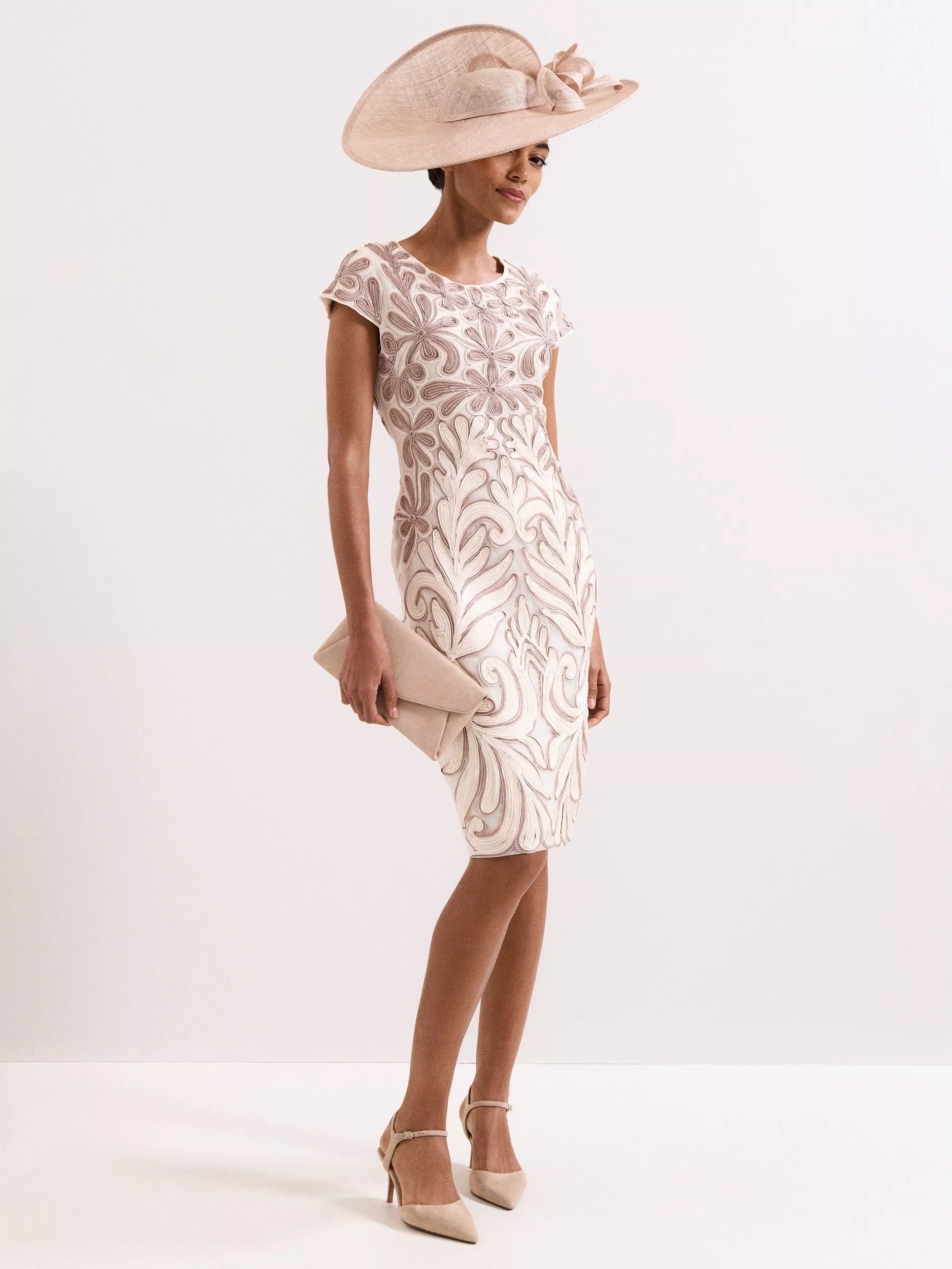 A knee-length occasion dress from Phase Eight. The round neck, cap sleeves and sheath shape create a polished look, while the concealed zip lets you get ready quickly for your next unforgettable moment. Finished in textured tapework for stunning intrigue.