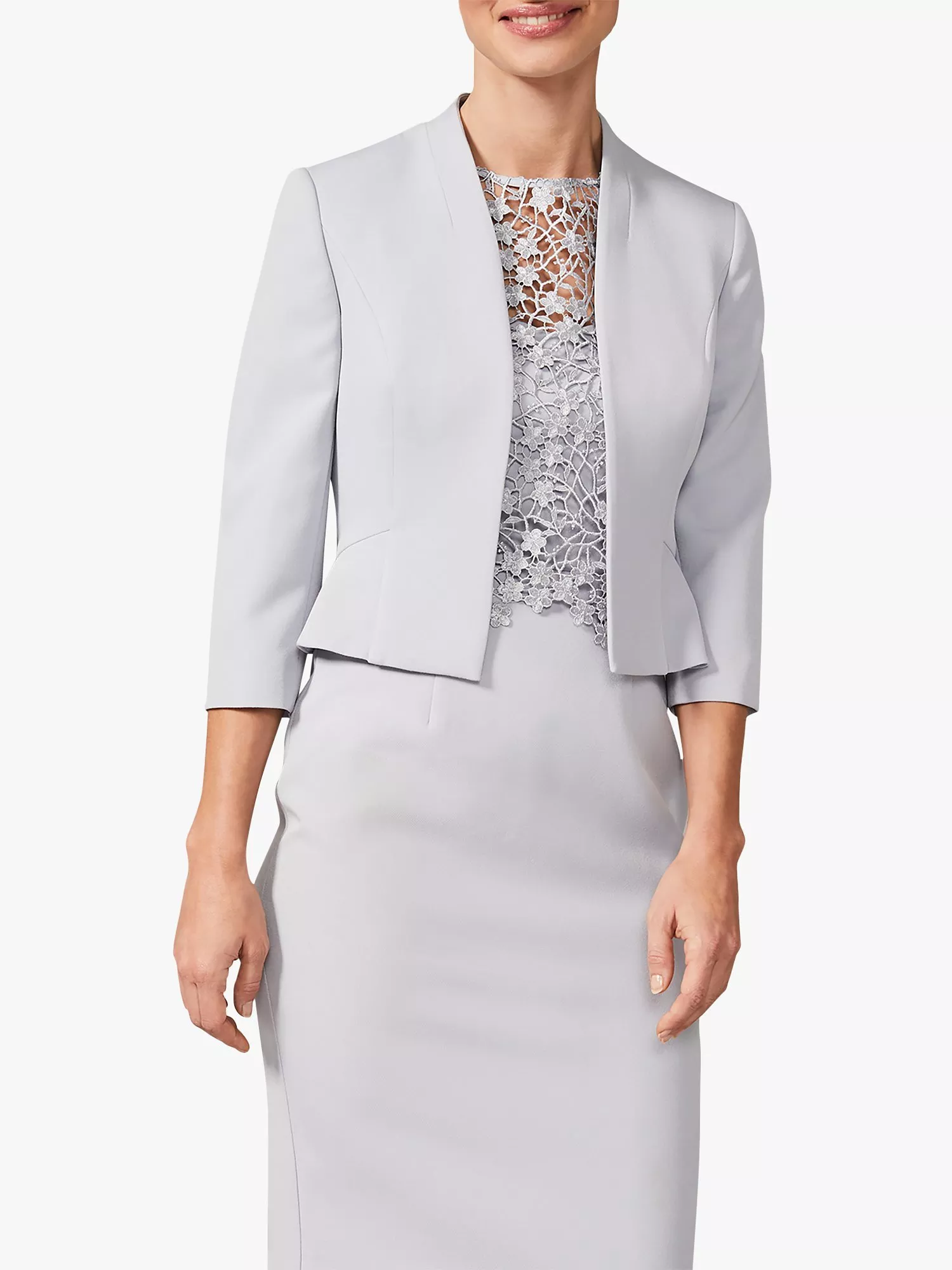 Enhancing classic tailoring with modern features, the Mariposa jacket from Phase Eight is nipped in at the waist with a flared peplum hem for a defined hourglass silhouette. The perfect pairing with endless coordinating dresses from their collection, Phase Eight has got you covered - quite literally.