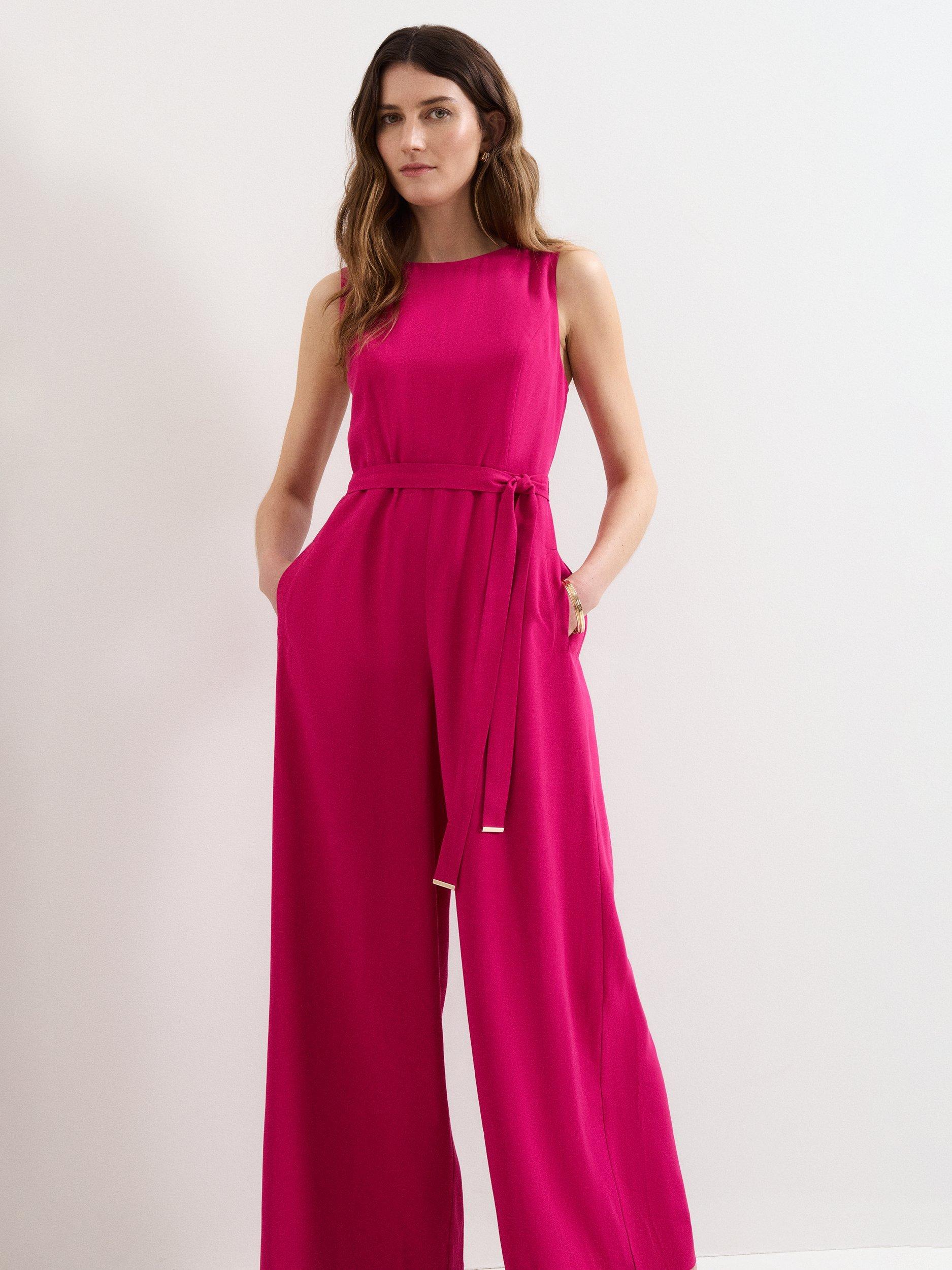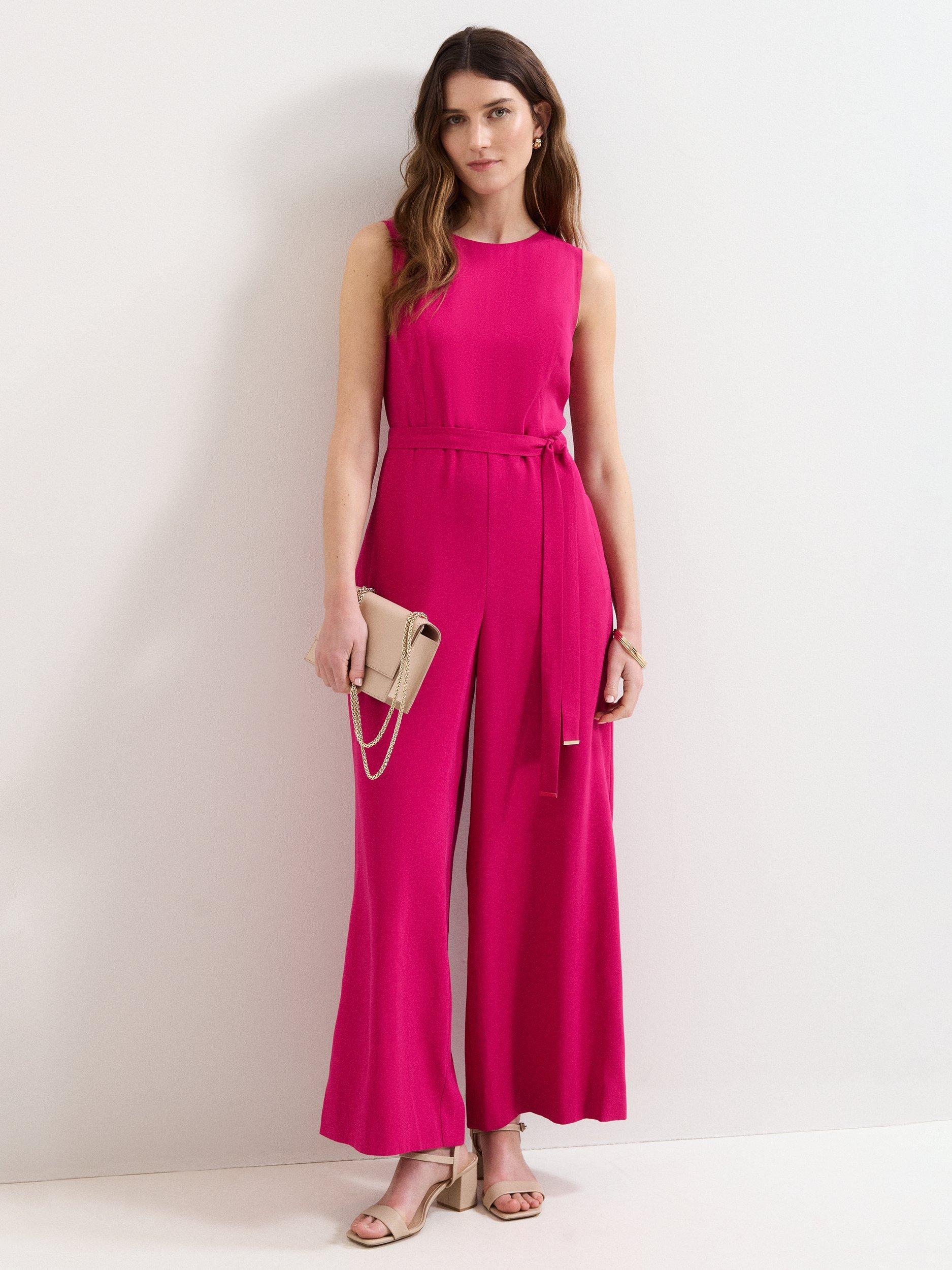 A sleeveless jumpsuit by Phase Eight, designed for comfort and ease. Its round neck and wide-leg fit move with you, while the open back and concealed zip ensures dressing ease.
