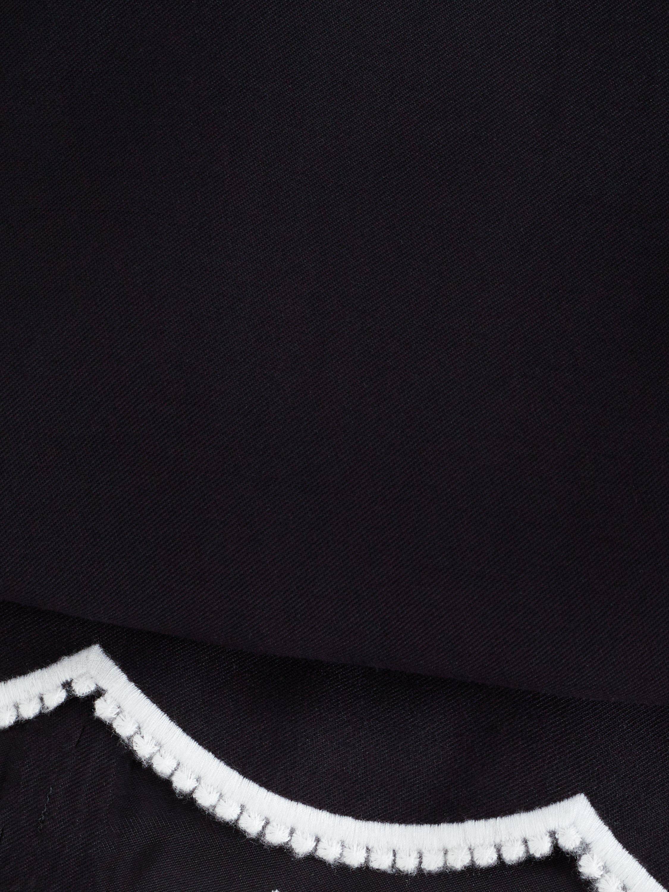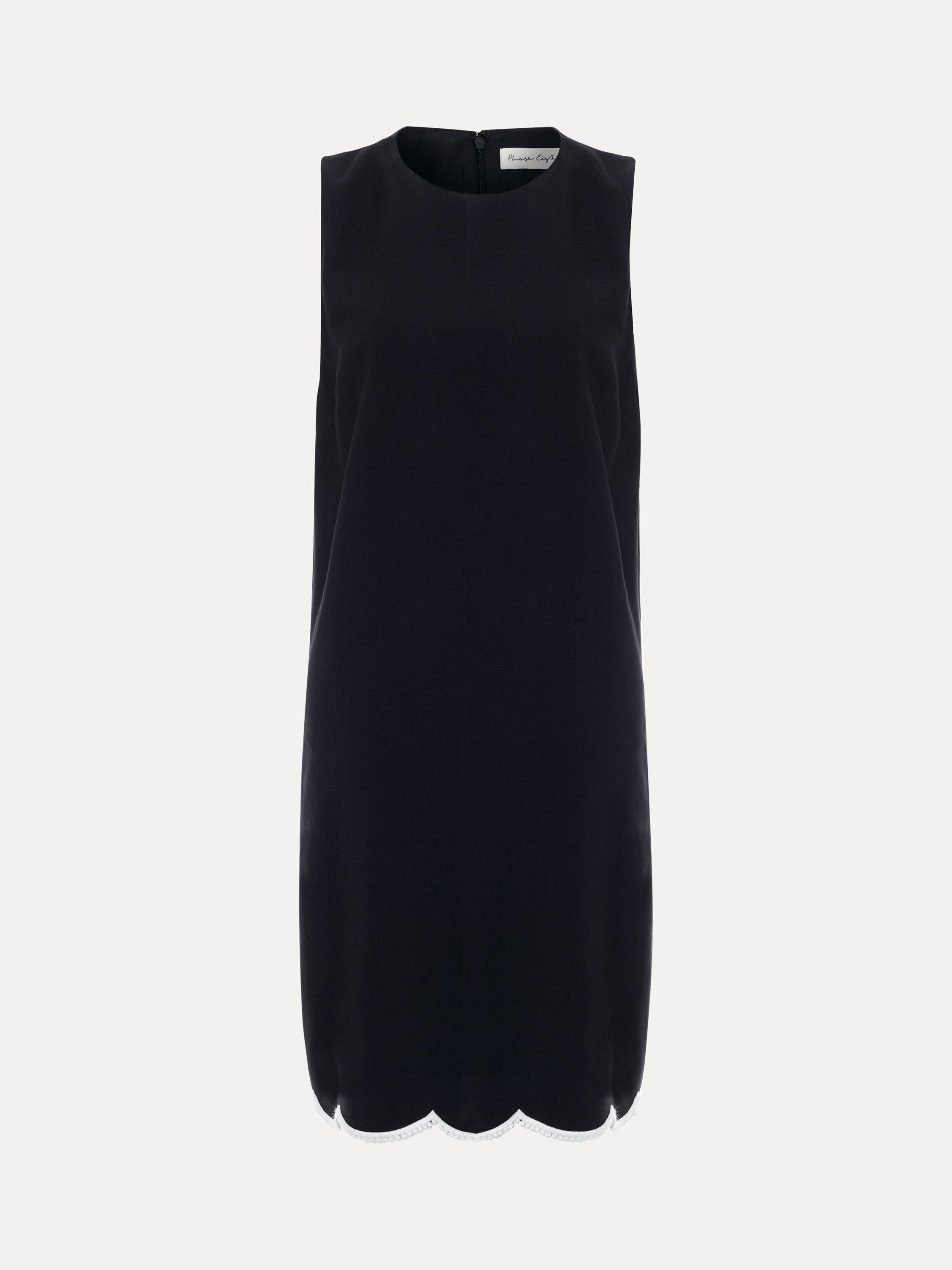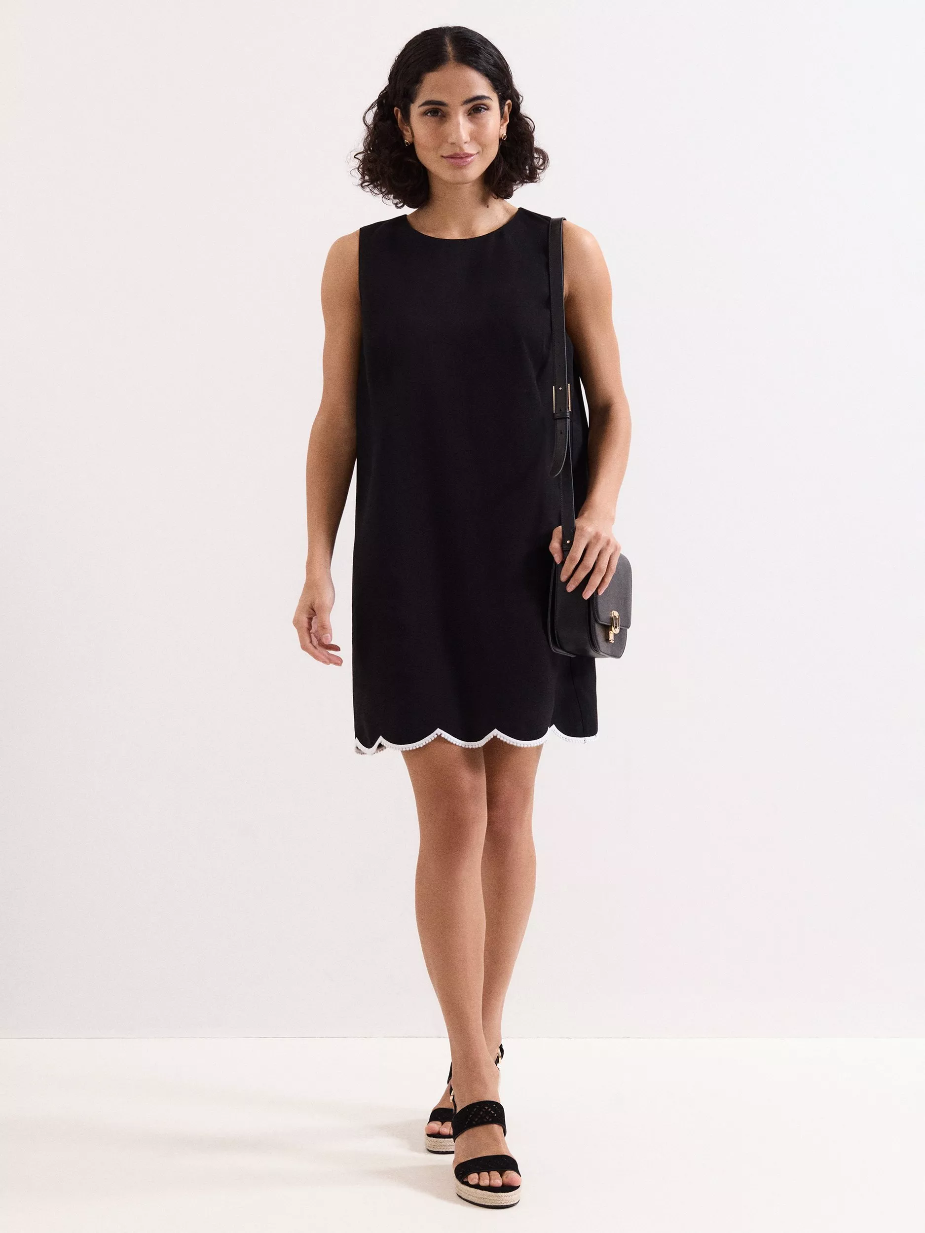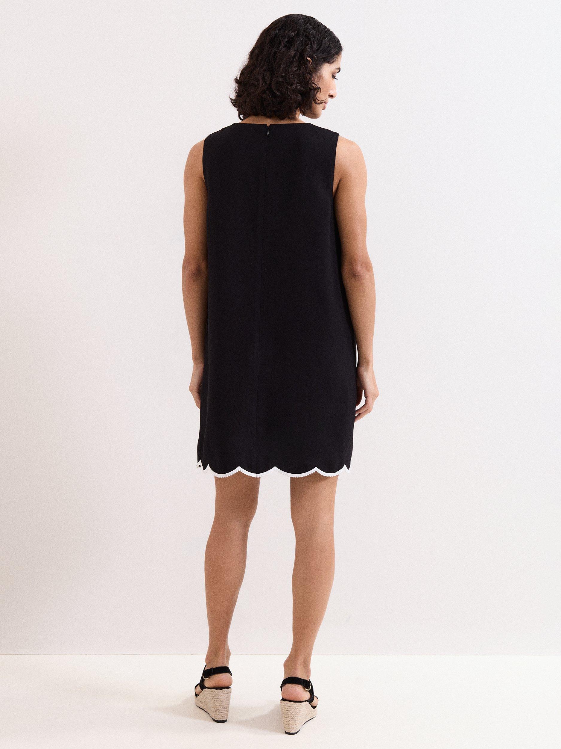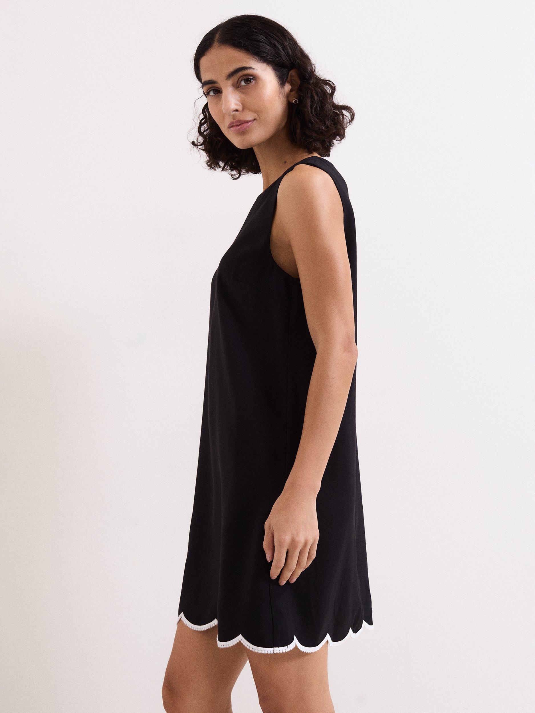 Designed in a chic shift silhouette, this mini dress features a beautiful, scalloped hemline with contrasting piping and edging to the hem, adding additional interest. Perfect for summer days and evenings, wear with your favourite sandals to finish the look.