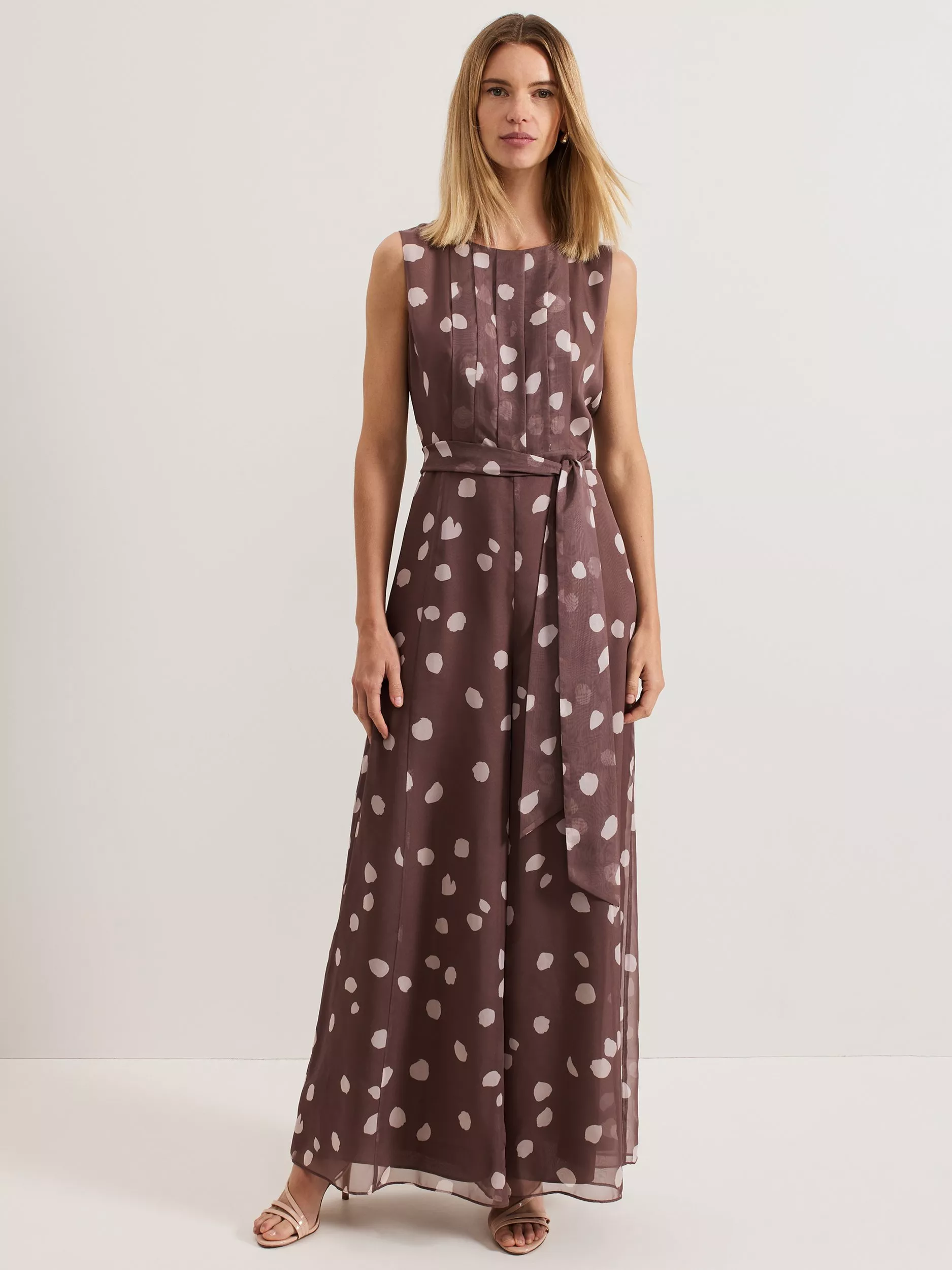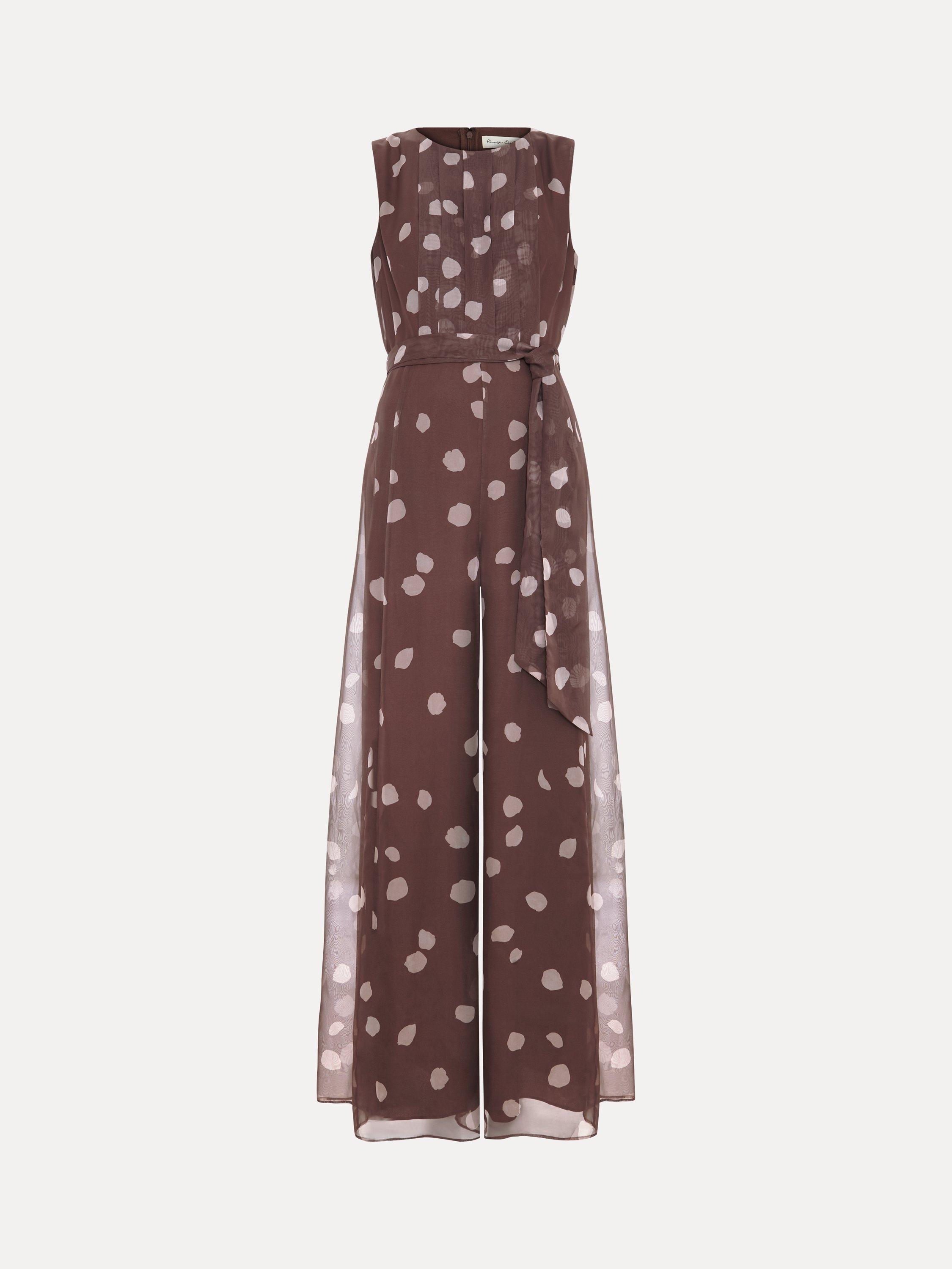 Meet the chiffon jumpsuit, decorated with timeless polka dots. Perfect for all your upcoming events, the Maxine jumpsuit features subtle pleating on the bodice whilst the matching tie cinches the waist, falling through to a floaty wide leg silhouette. Style with your favourite heels for a feminine event style.