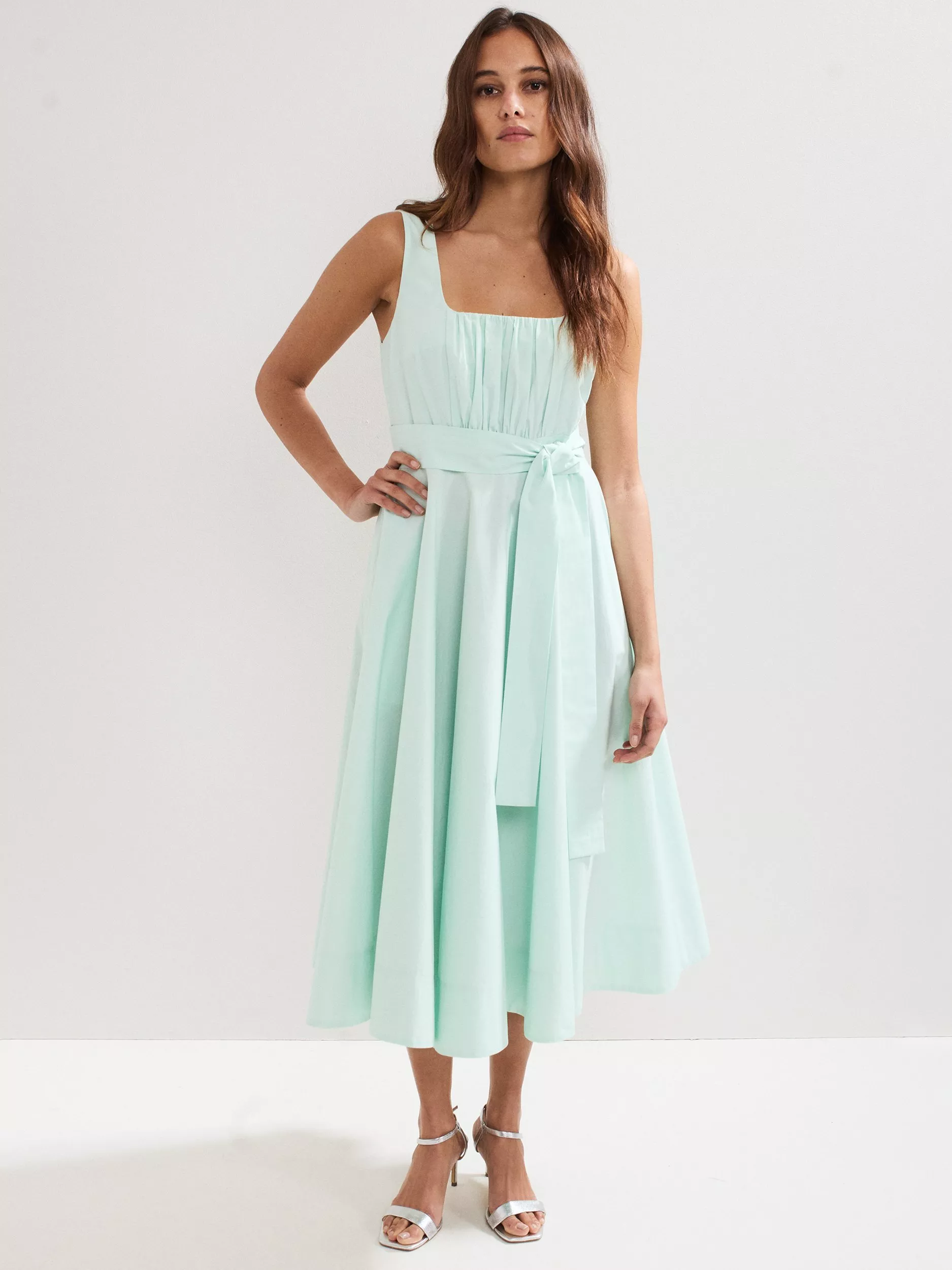 Simple yet stylish, this 100% cotton dress features feminine ruching, flowing through to a full midi skirt for ease of wear. Perfect pop of colour for spring and summer, and can be dressed up for events or down for sunny days out.