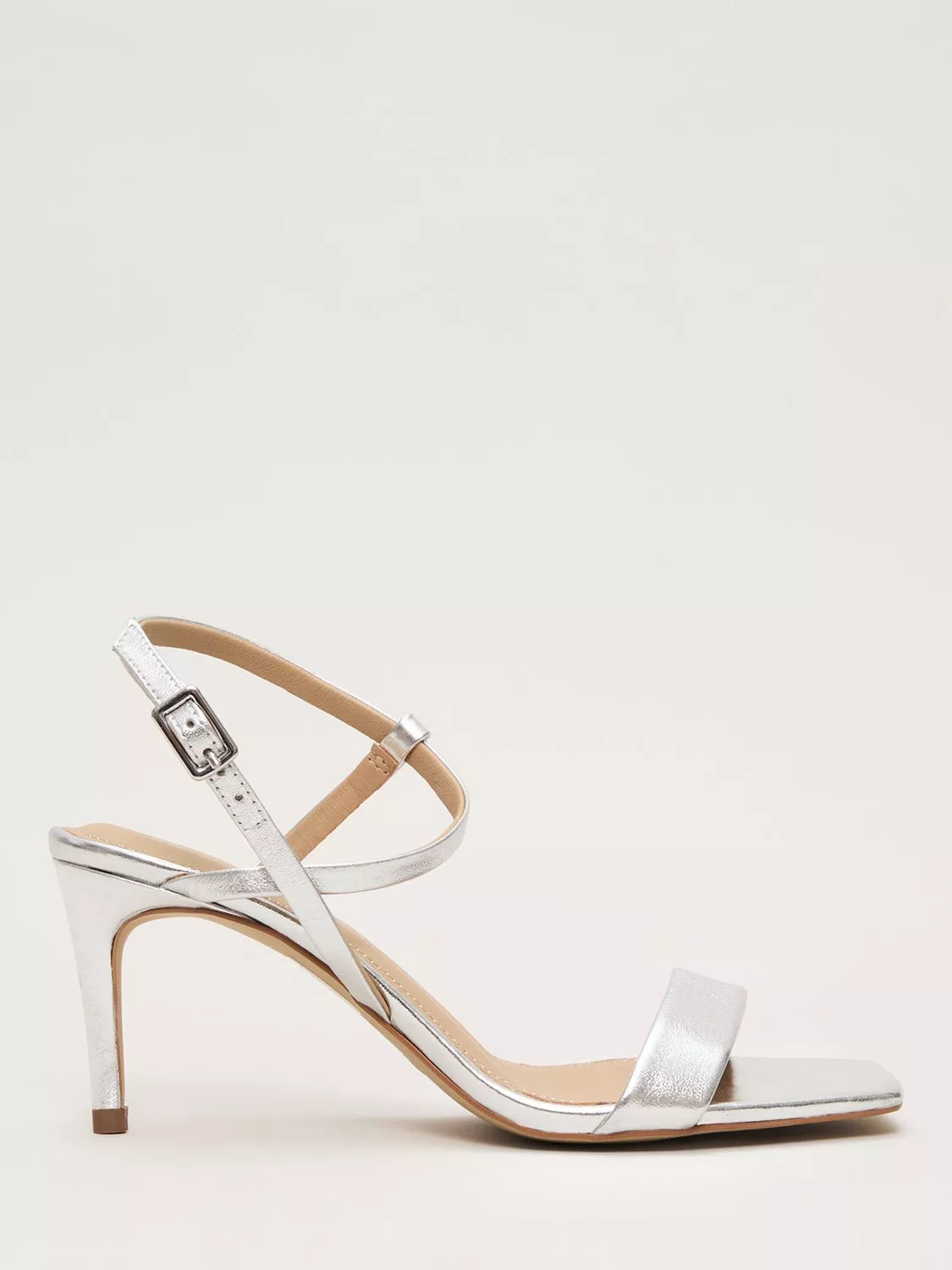 Understated yet elegant, Phase Eight's silver heels will become a constant companion in your shoe collection. Finished with a delicate ankle strap for ease of wear our open toe heels add the perfect pop of metallic shimmer to all your favourite occasion styles. Style with a matching silver bag for a coordinated look.