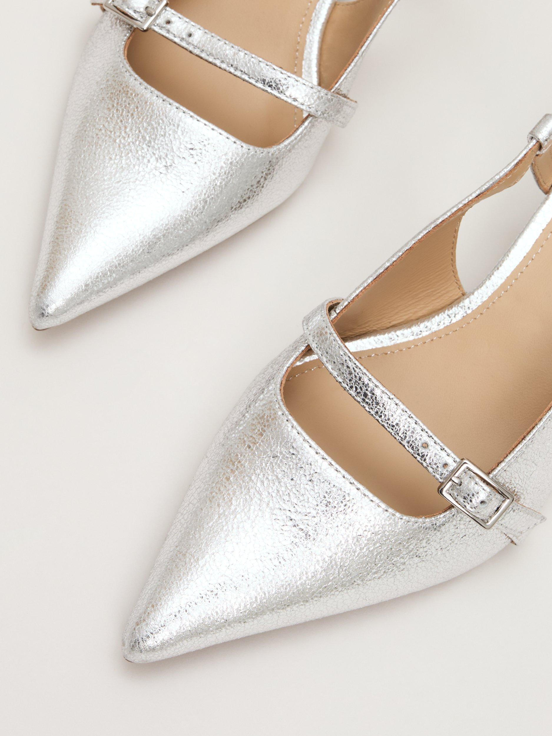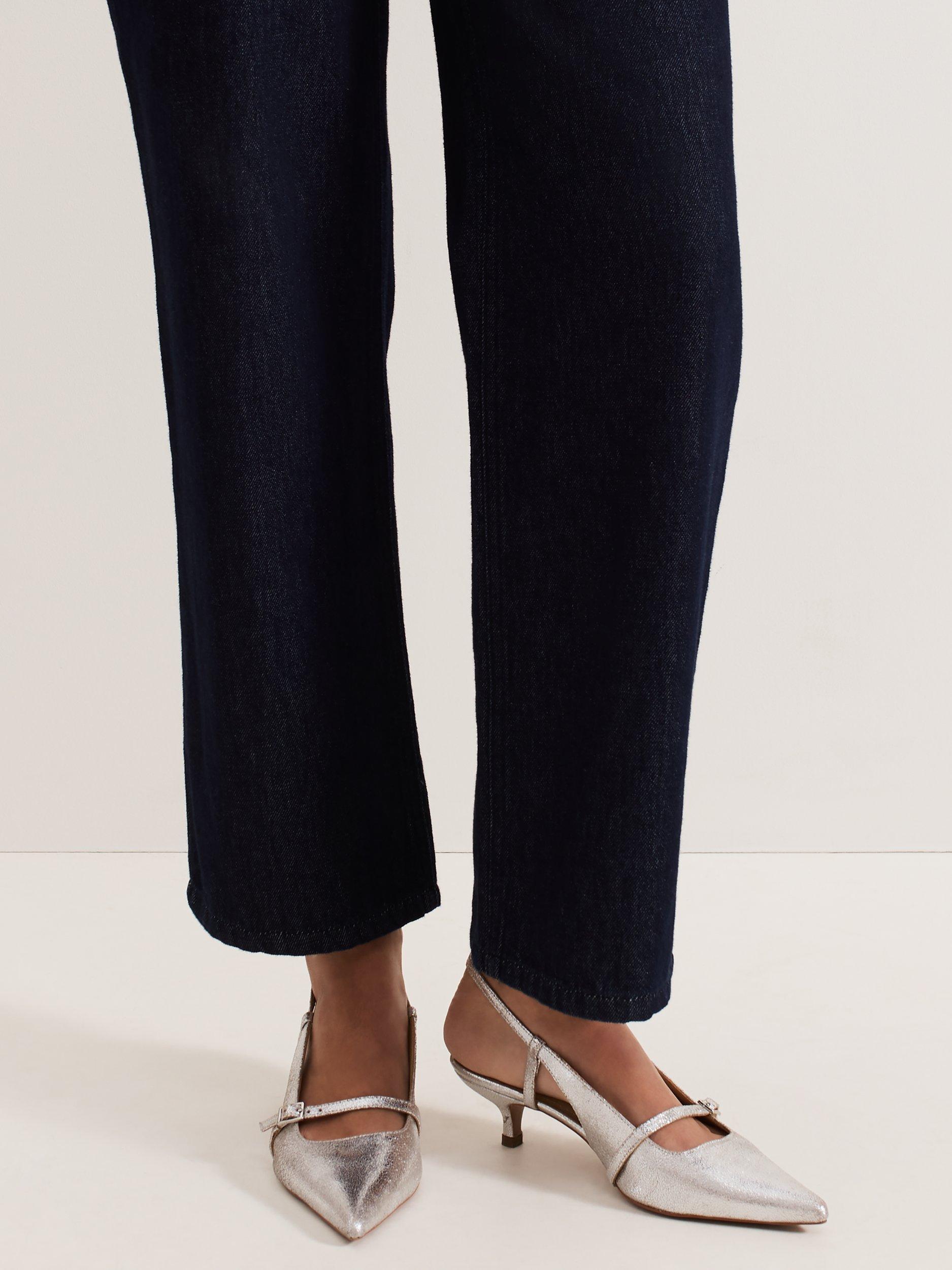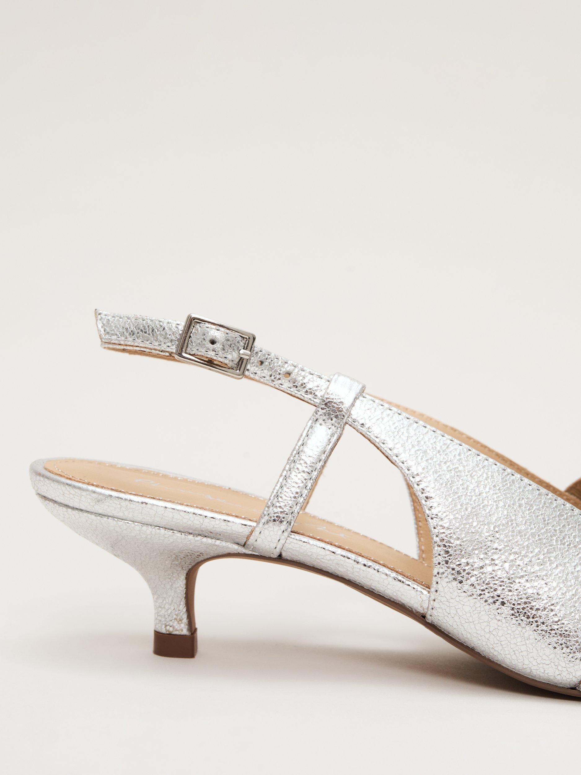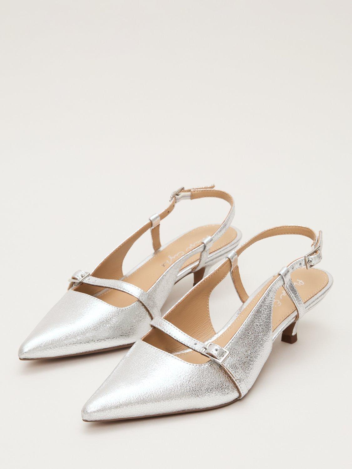 An effortless choice for evenings spent out and about, this pair of slingbacks from Phase Eight is made with metallic leather uppers. Sitting on a kitten heel, they are neatly pointed at the toe for a timeless finish.