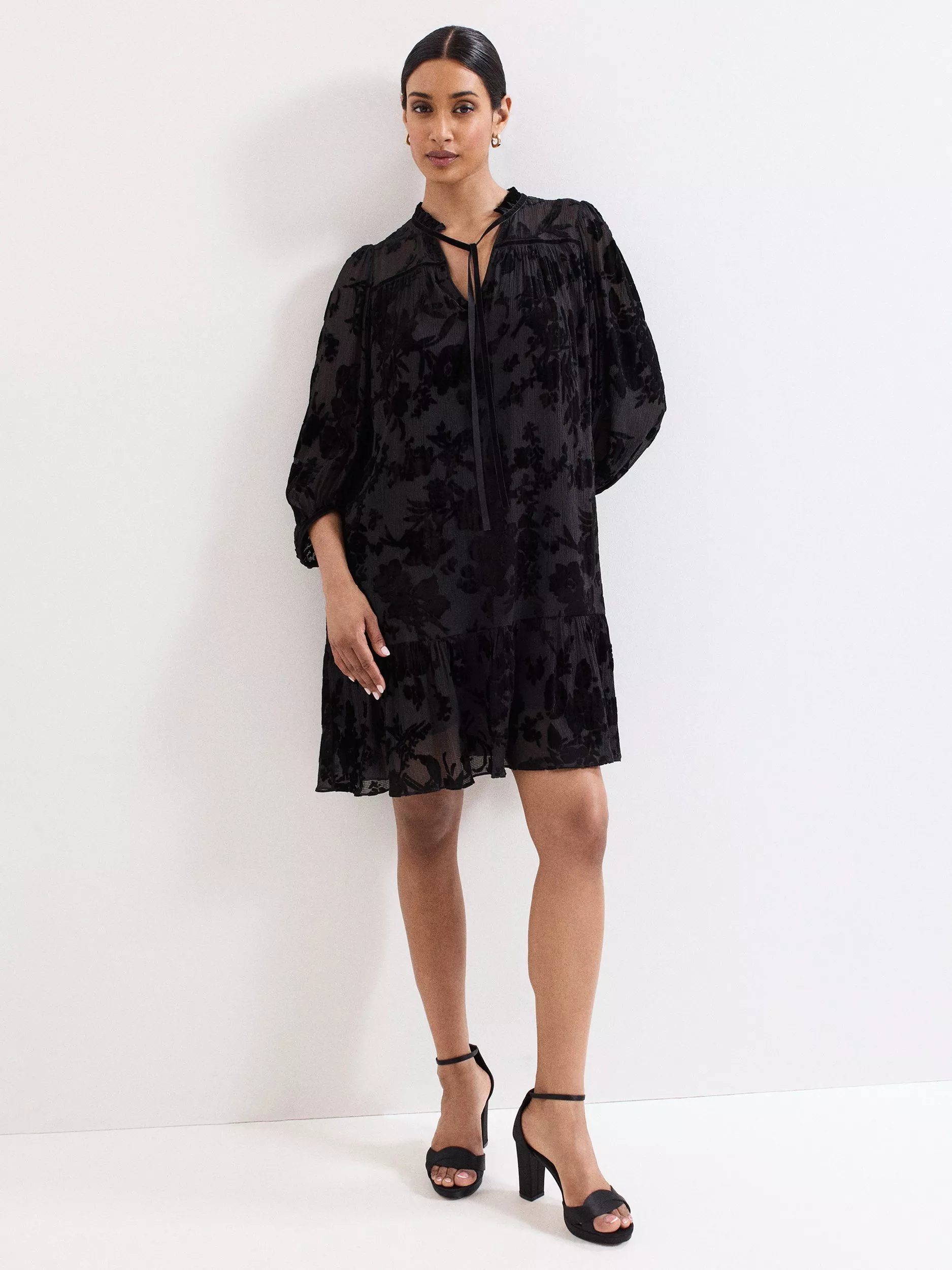 Every wardrobe needs a day-to-night little dress. This velvet mini dress features a feminine floral burnout design and a drop hem detail. With a tie neck fastening, it’s designed to be the ultimate throw-on-and-go style, taking you effortlessly from office to party with a simple change of accessories.