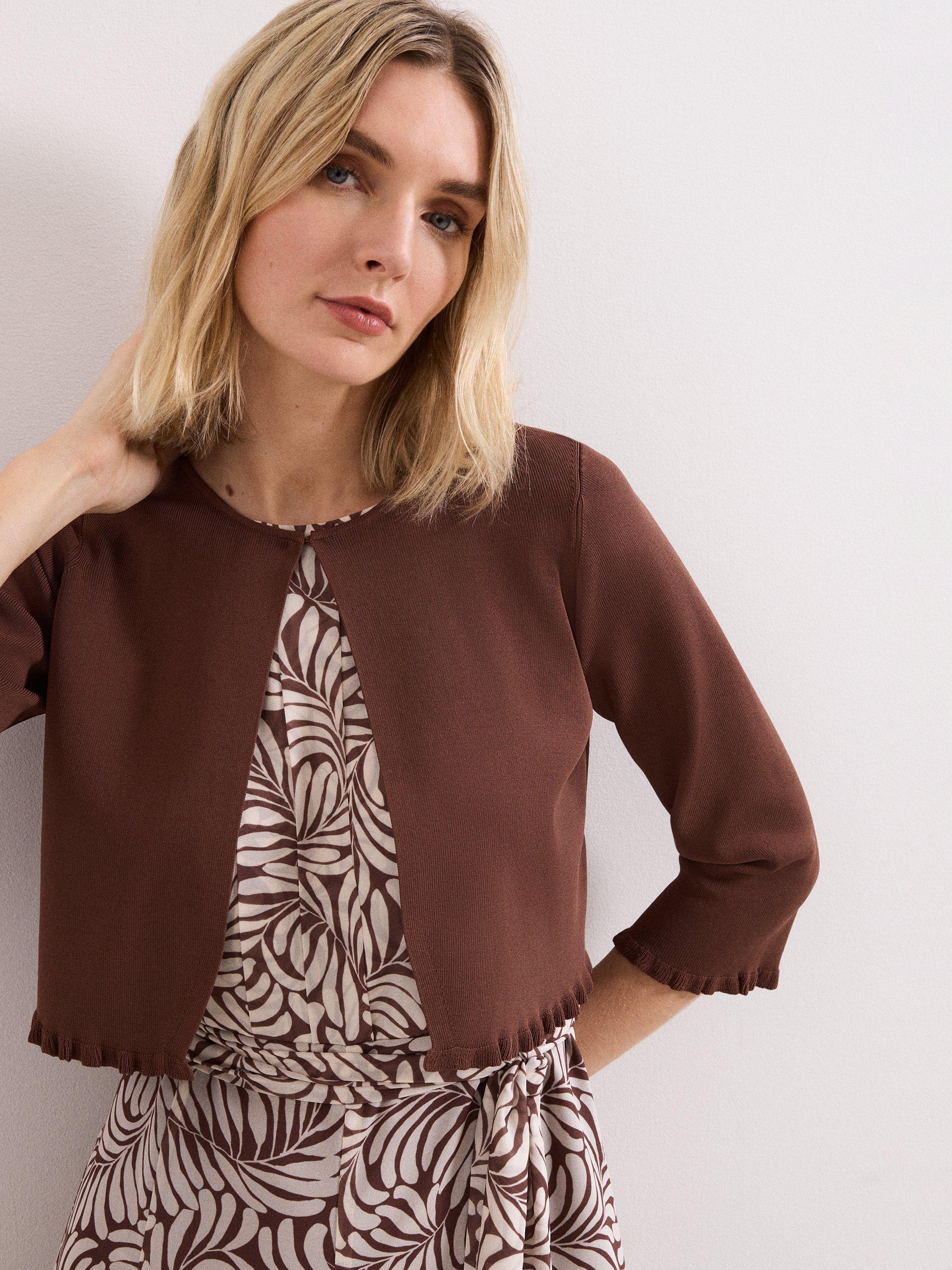 A knitted shrug cardigan by Phase Eight. Its cropped shape layers easily, while three quarter sleeves and a round neck offer comfort for every day. Designed for effortless pairing, it's the perfect finishing touch to any outfit.
