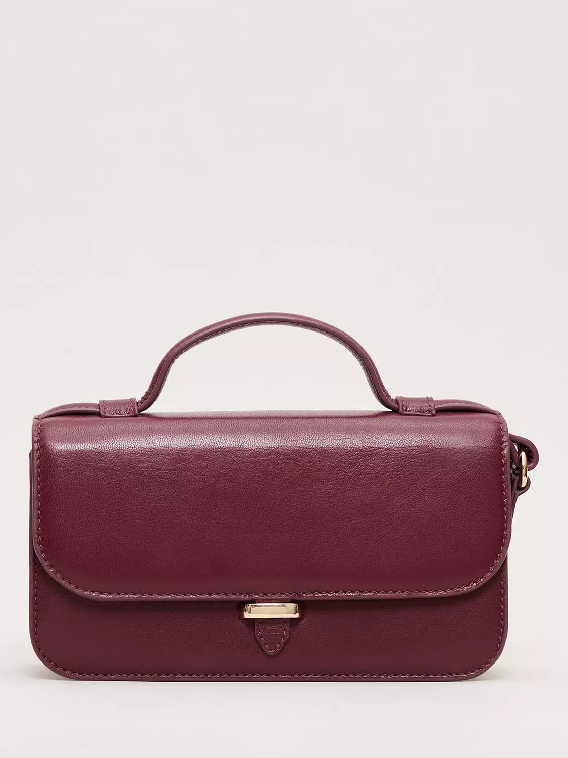 Add instant polish to any outfit with this leather bag. It’s finished with a magnetic clasp and metal accents. Perfect for carrying all your essentials, wear with the crossbody strap for everyday or use as a clutch for evenings out.