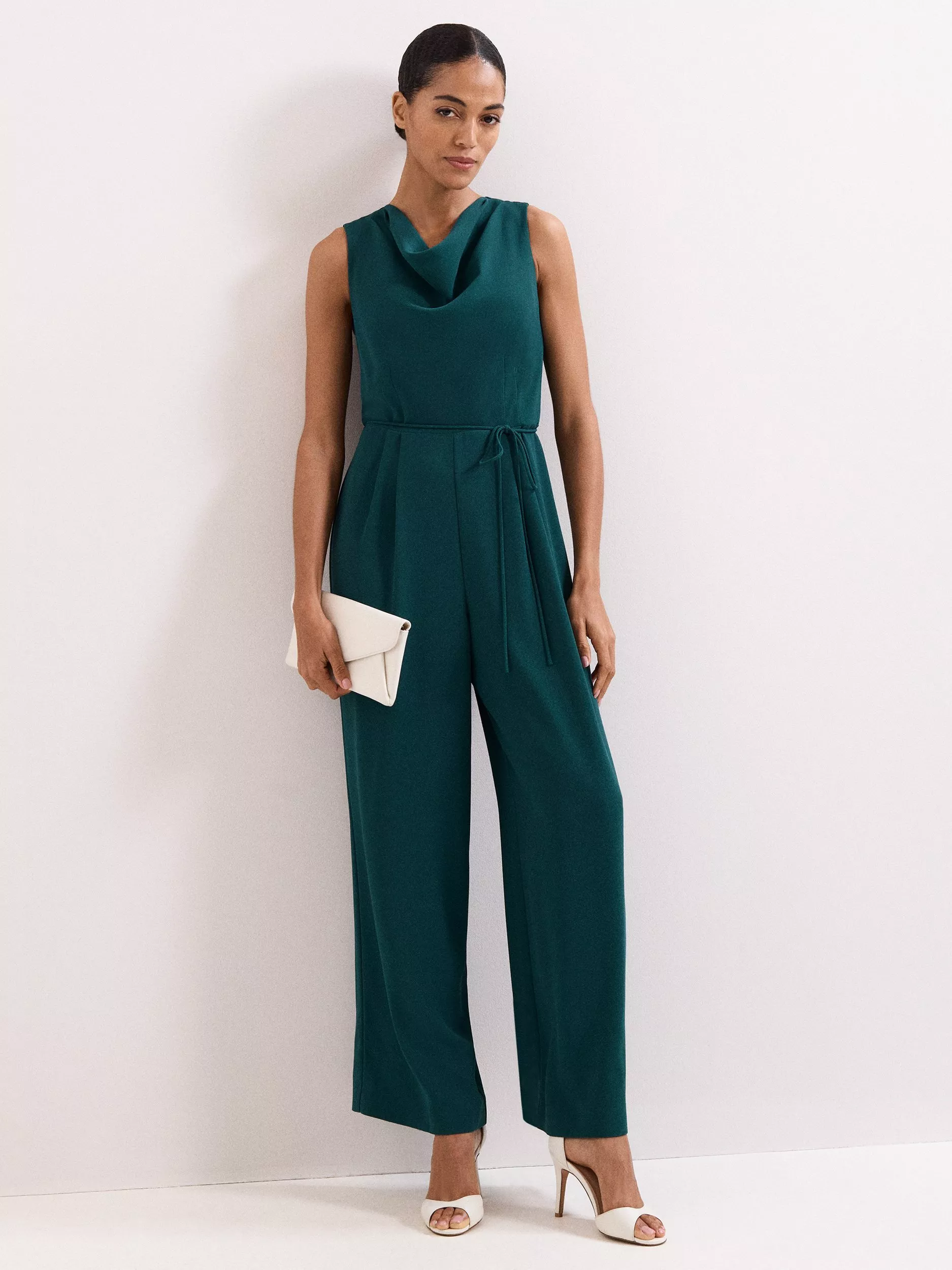A Phase Eight jumpsuit, featuring a cowl neck and wide-leg cut for comfort and style at any celebration. Its clever design ensures you look sharp and feel confident at any occasion.