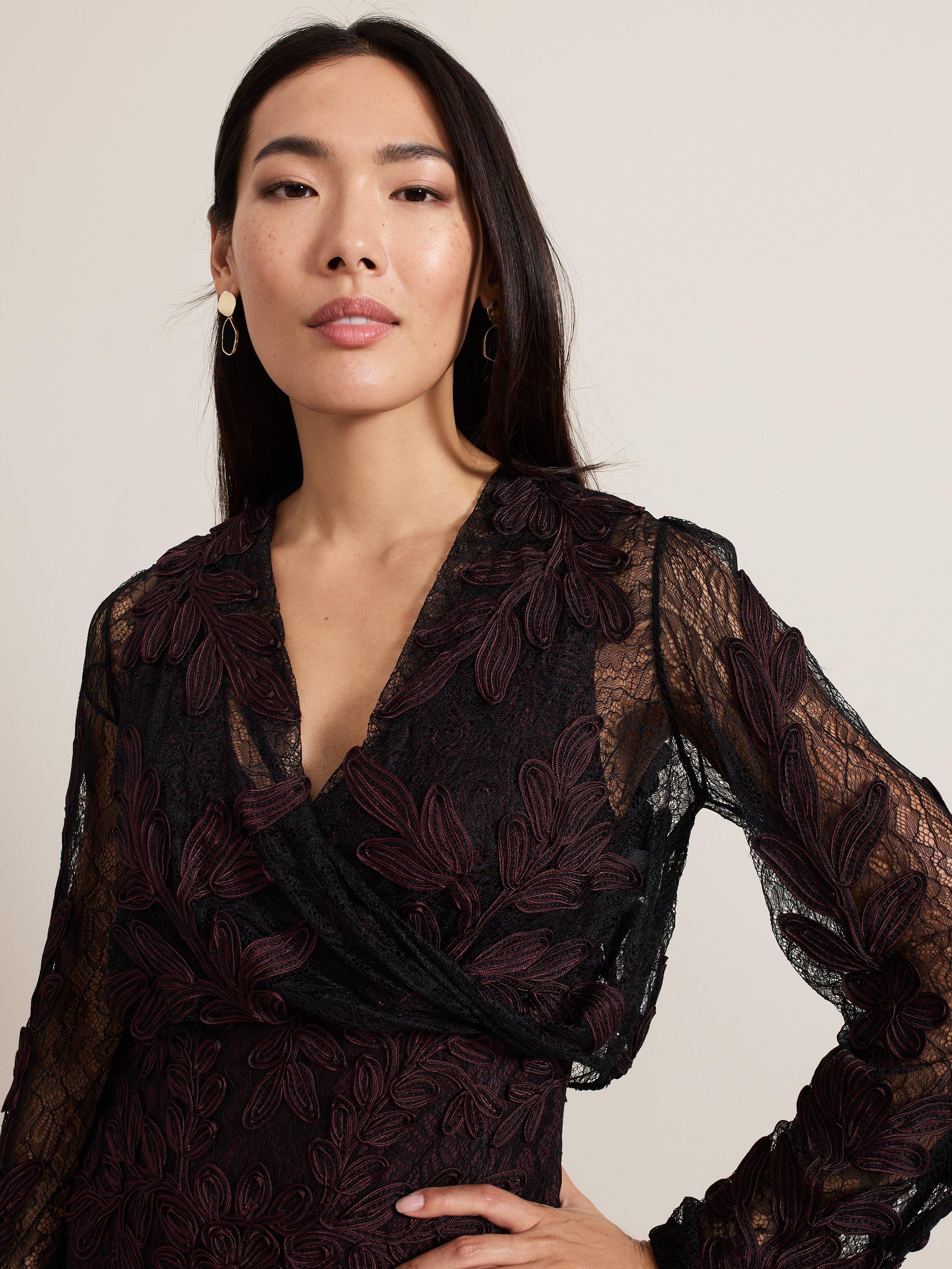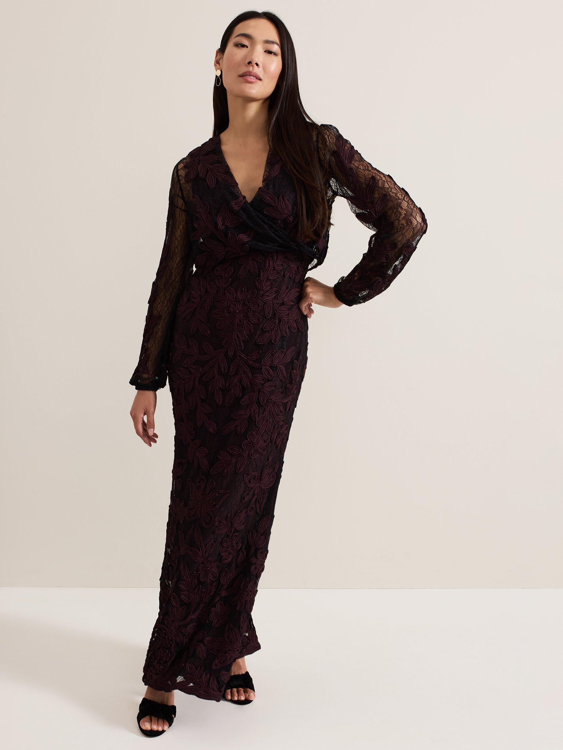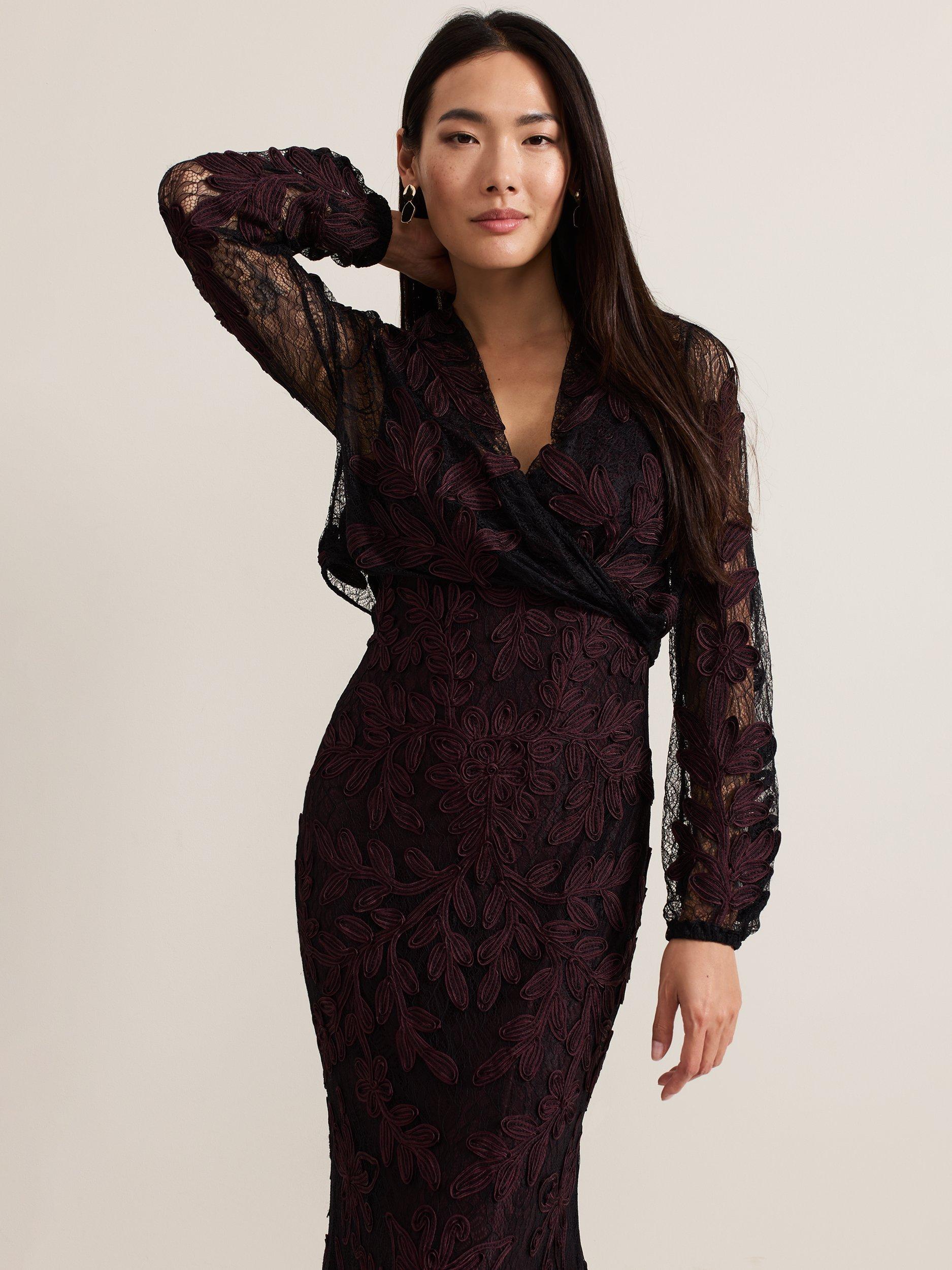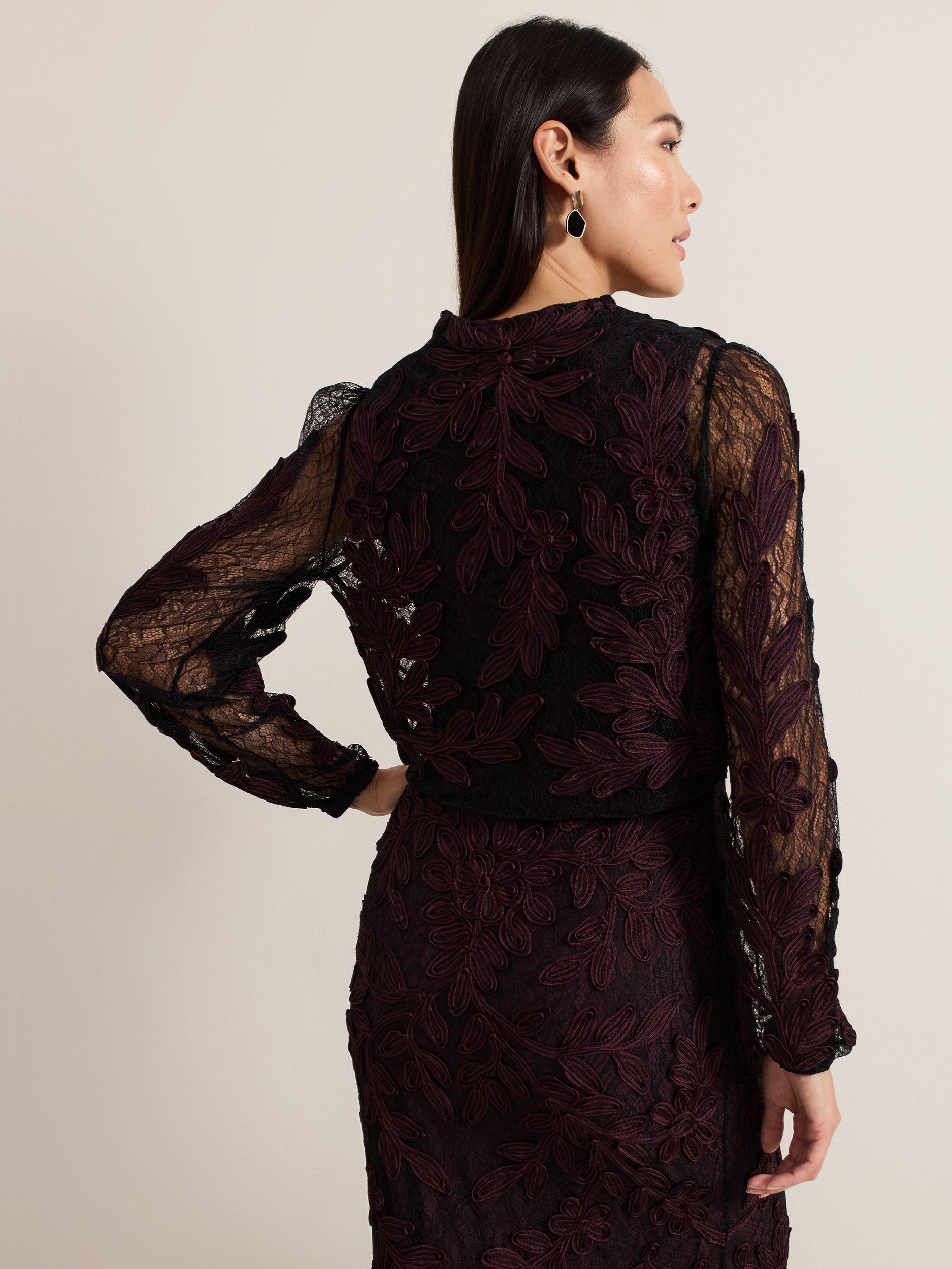 A stunning accompaniment to your occasionwear, this cover-up by Phase Eight is designed in signature tapework lace with a soft floral velvet finish. Wrapping over at the bust, pair with the coordinating Montee maxi or layer over plain black dresses for an elevated look.