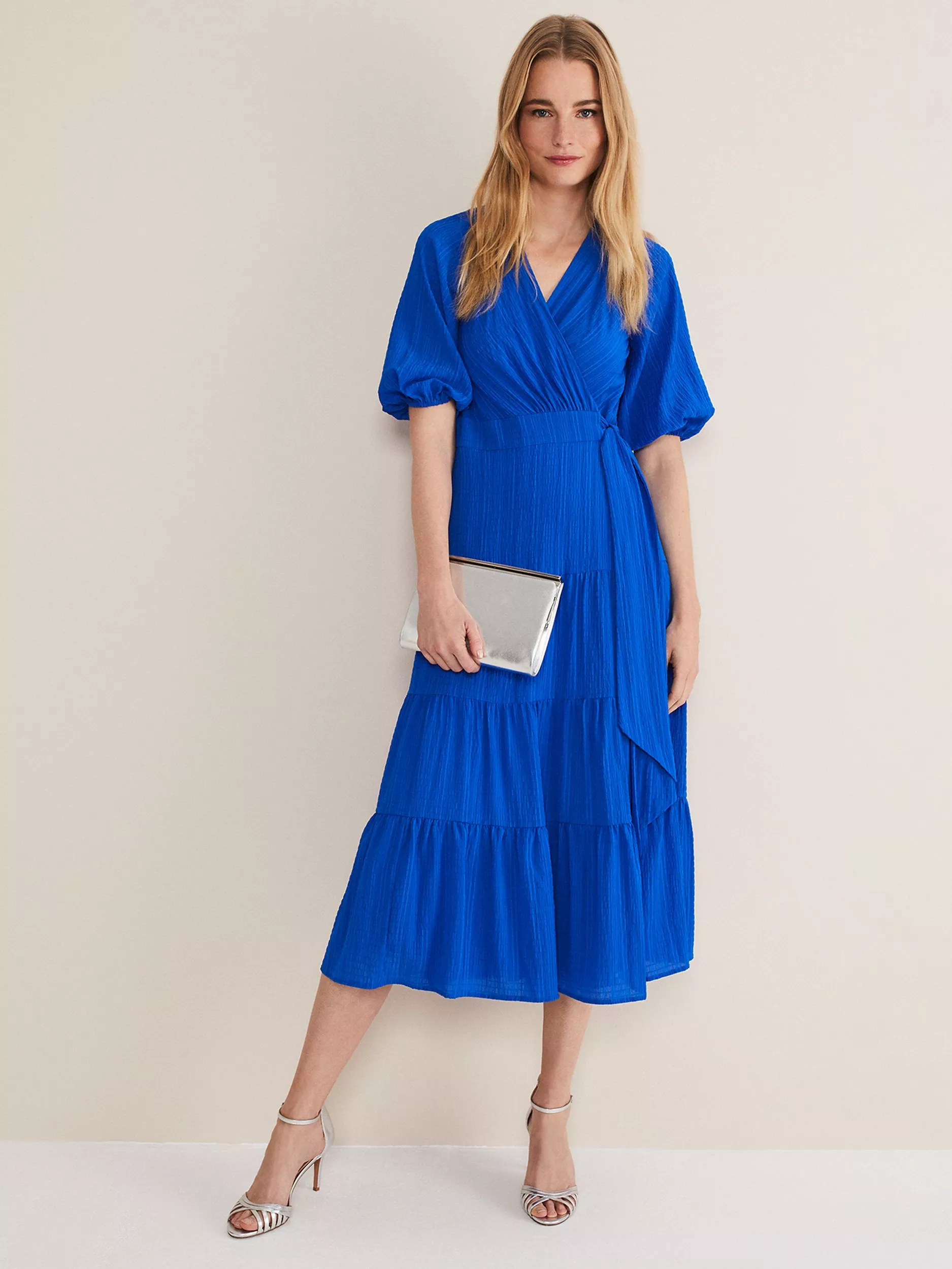 Offered in a timelessly flattering wrap style, this mid-length dress from Phase Eight comes in a fabric that's built to last. A feminine choice thanks to the wrap over neckline and elbow length sleeves, this style is kept minimal for a truly seasonal collection.