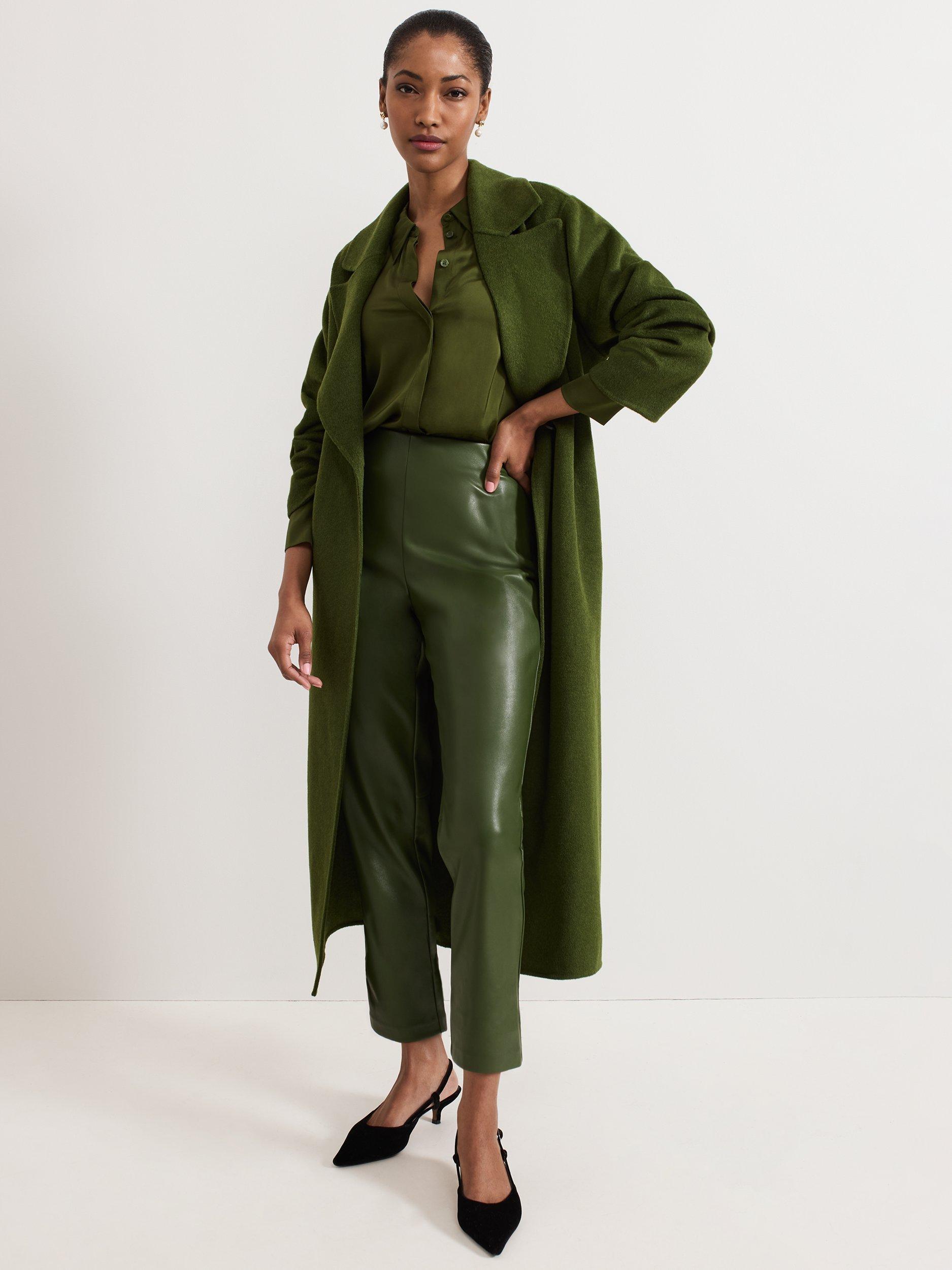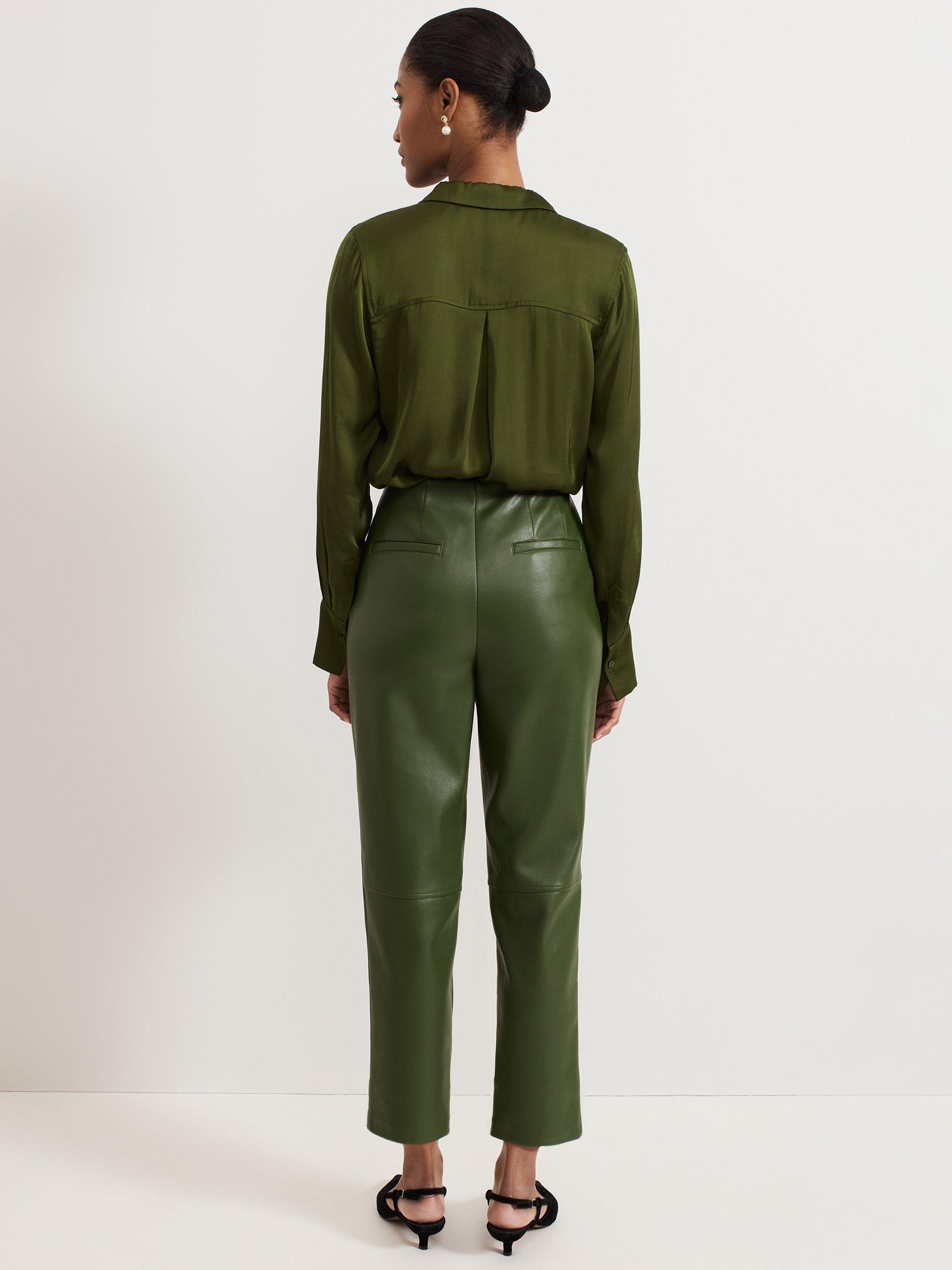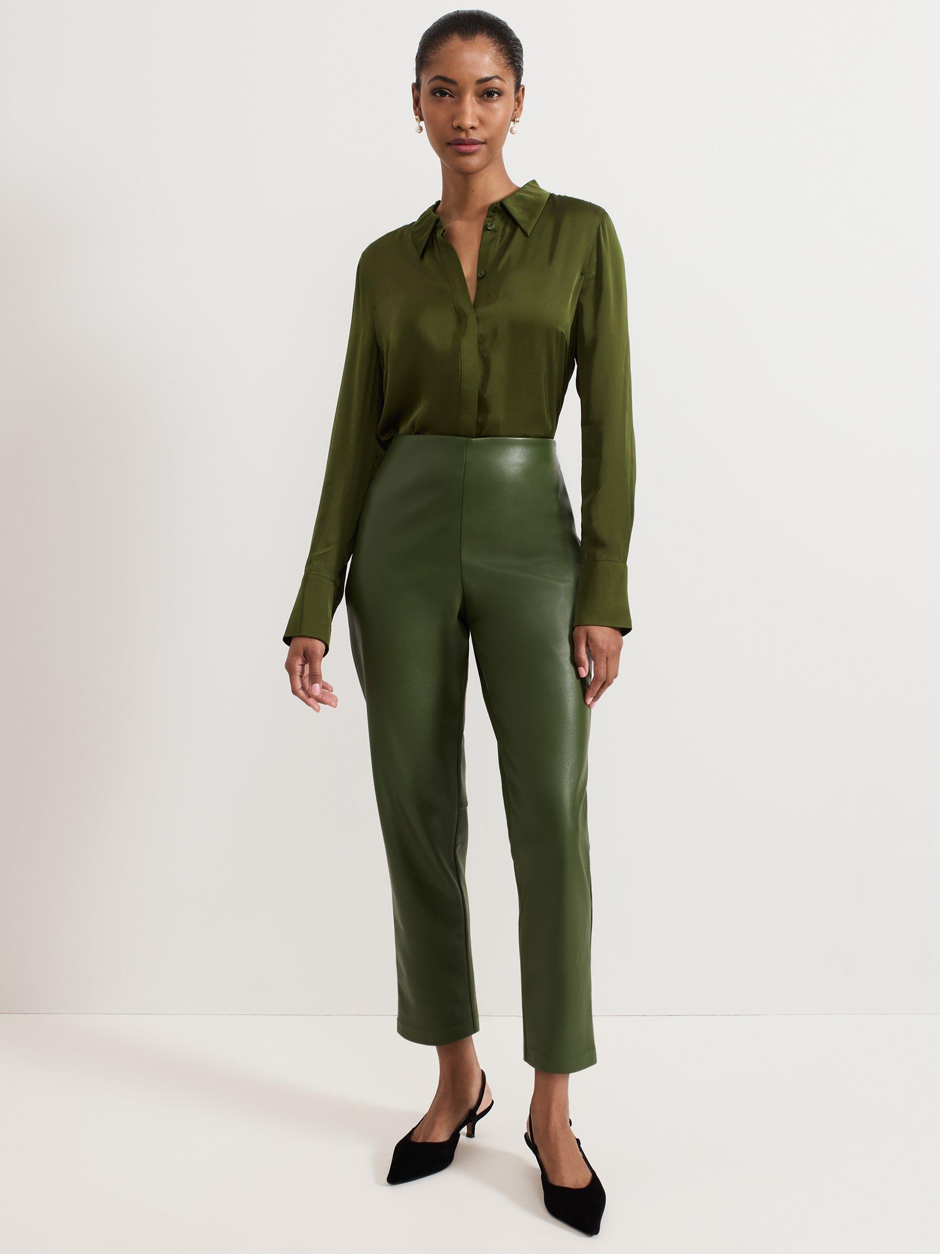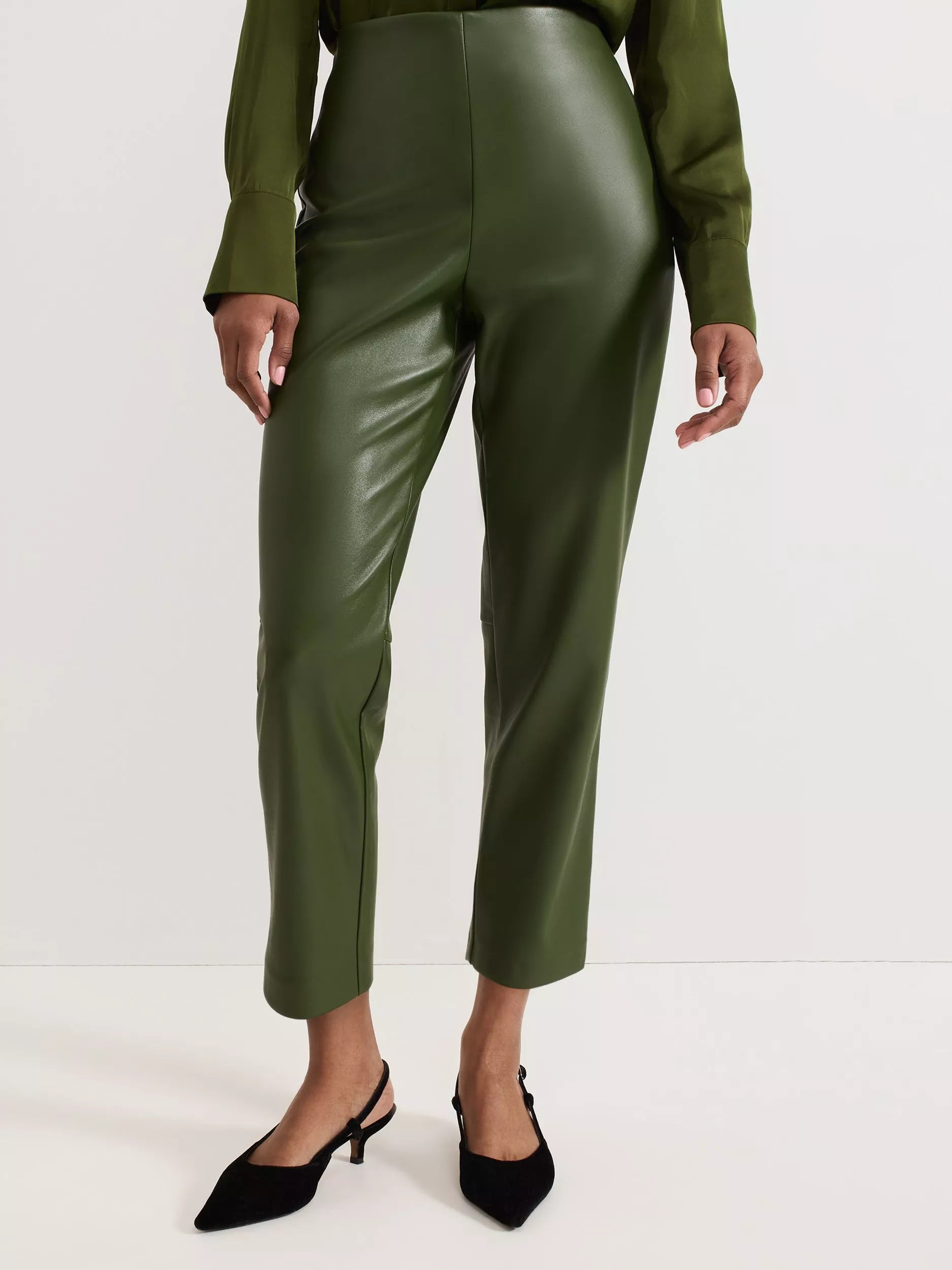 A fresh take on the faux leather trouser. These trousers fall to a cropped cigarette style that will highlight your favourite heels or boots.