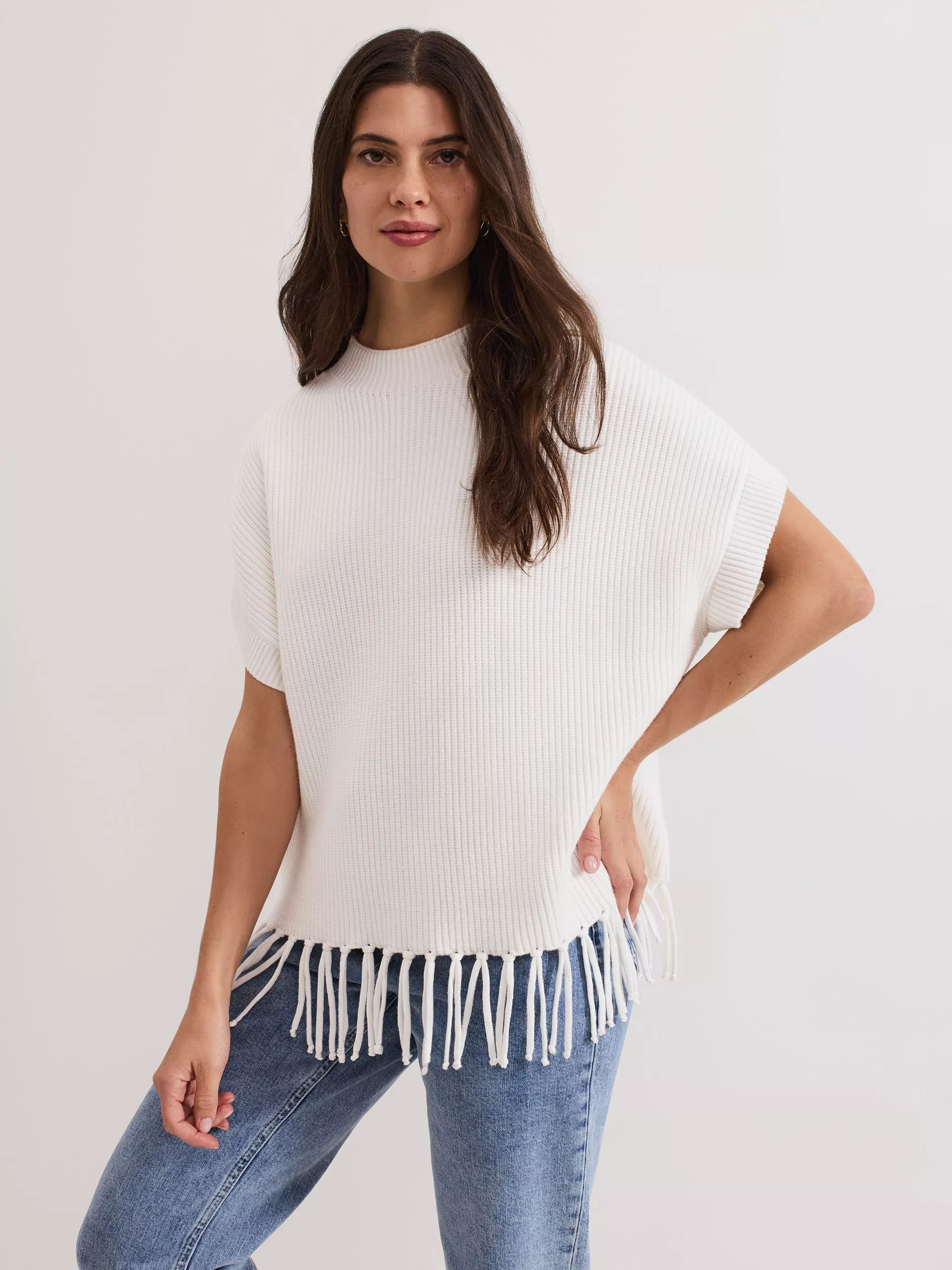 Timeless knitwear with a contemporary edge. This top is ribbed for a subtle stretch whilst dropped shoulders create a relaxed yet stylish shape. Finished with tassel detailing for a modern edge we love how this versatile style can be accessorised for day or night.