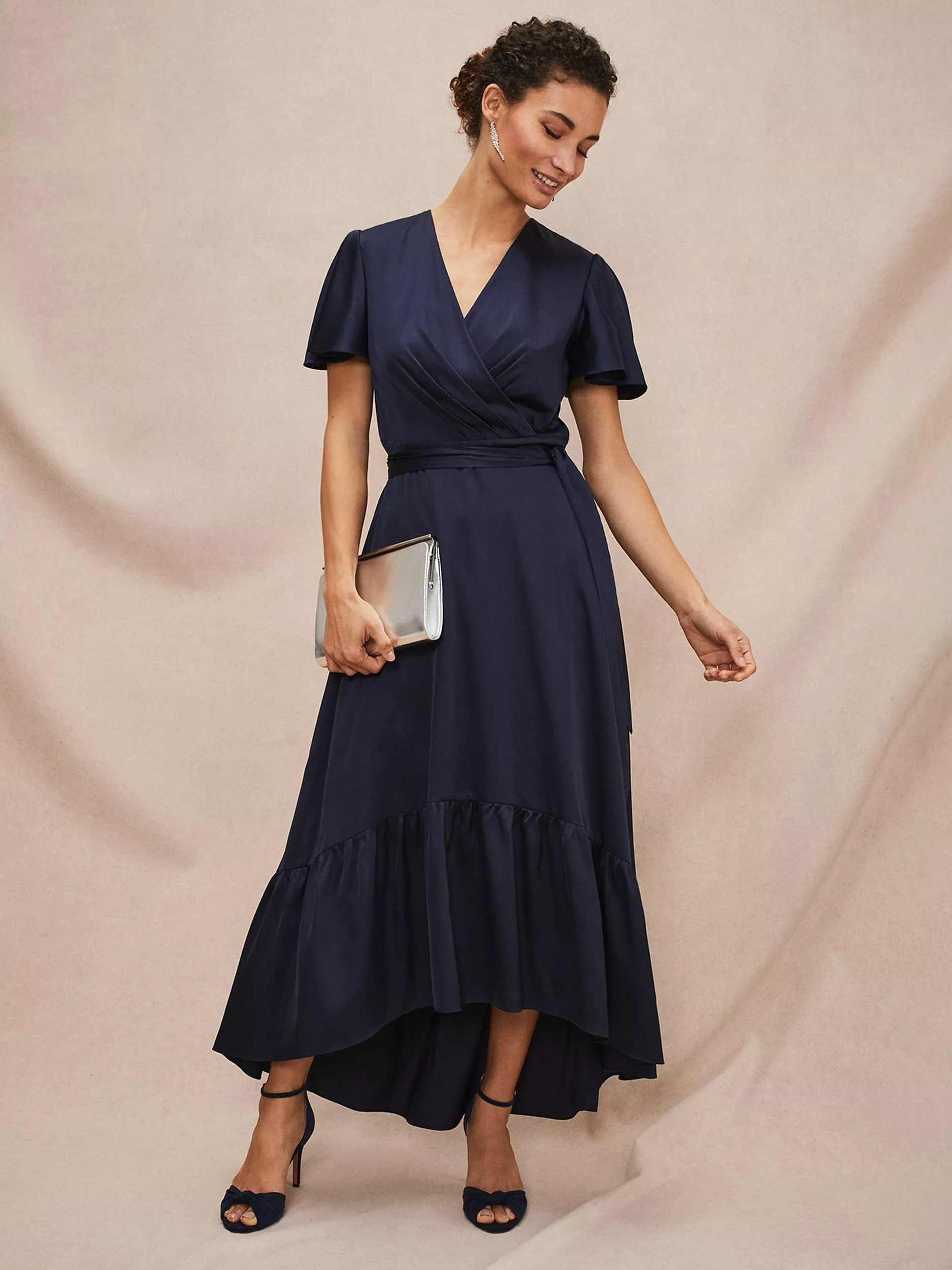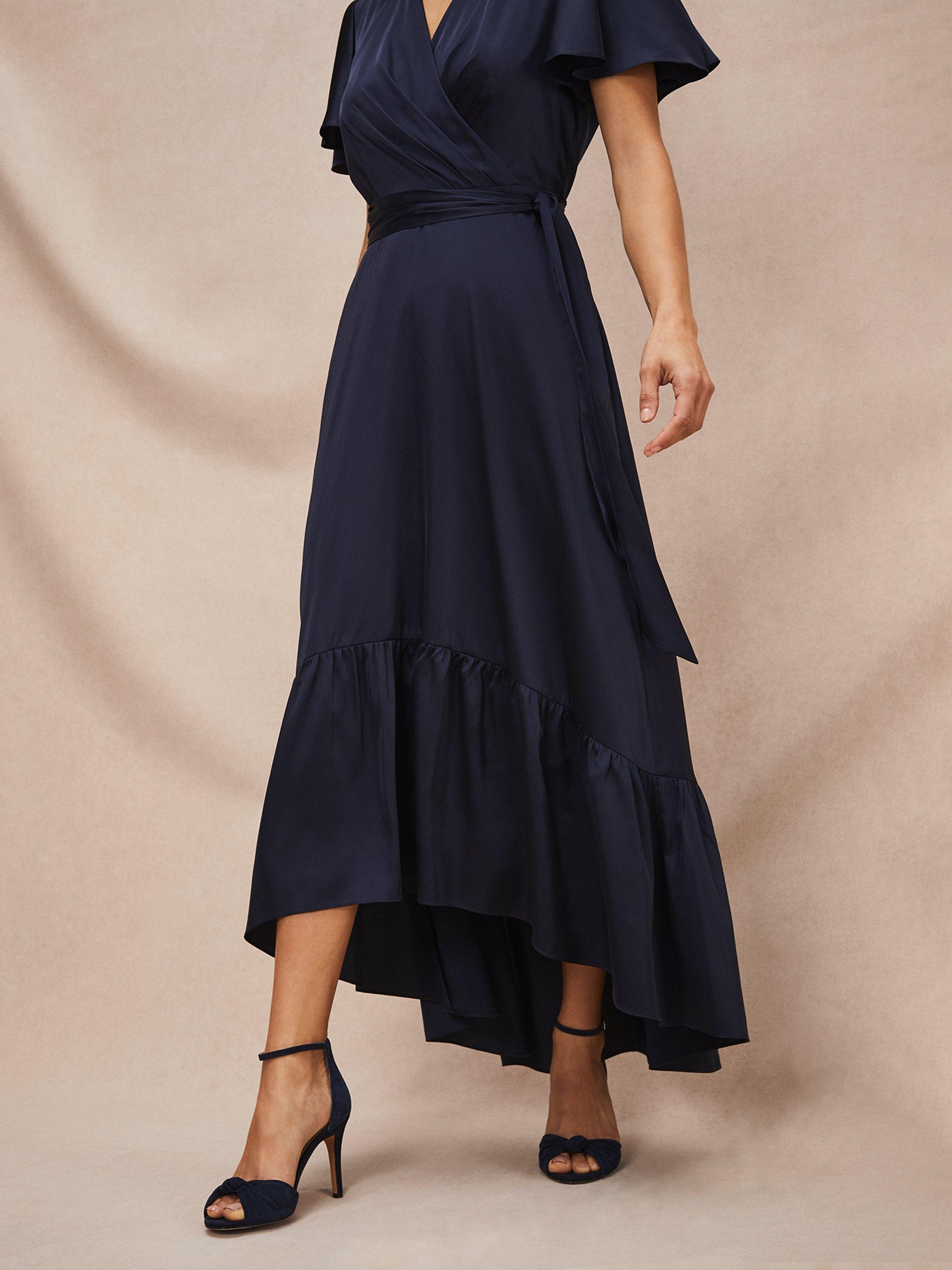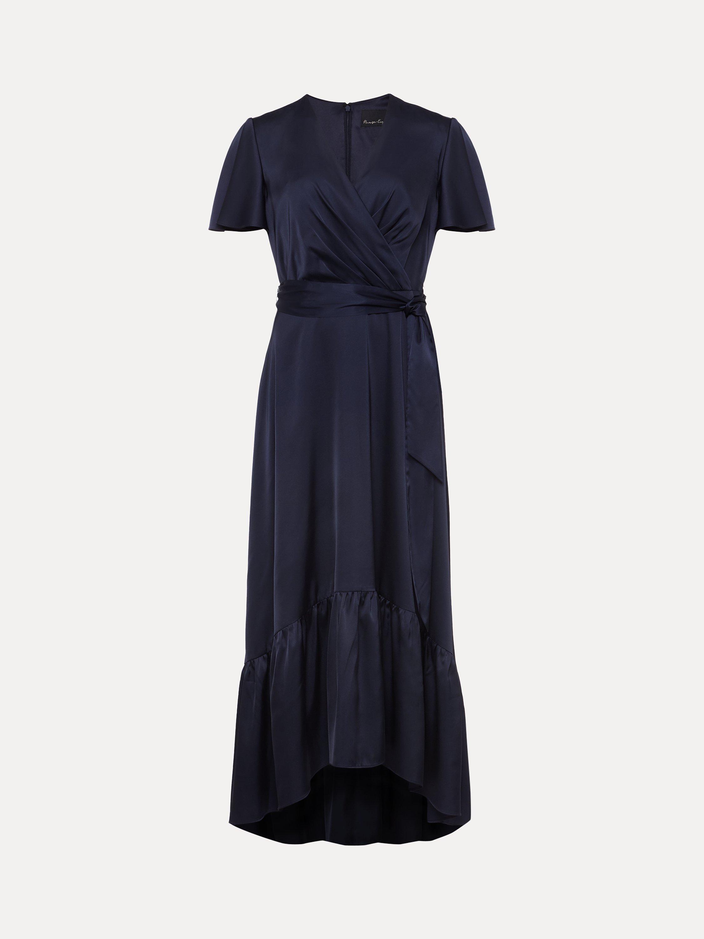 Designed with a unique dip hem, this satin midi dress by Phase Eight is free from any fussy details.