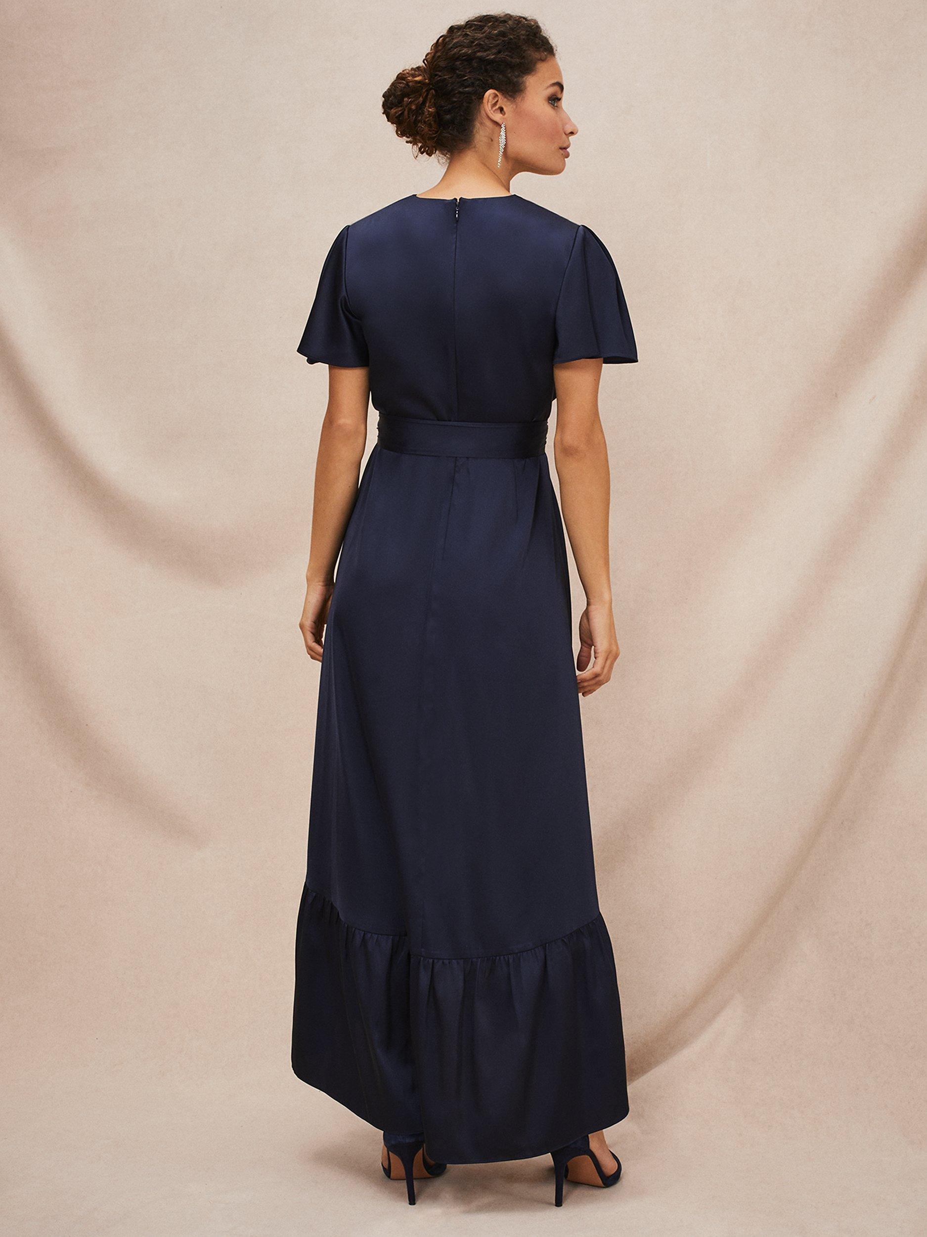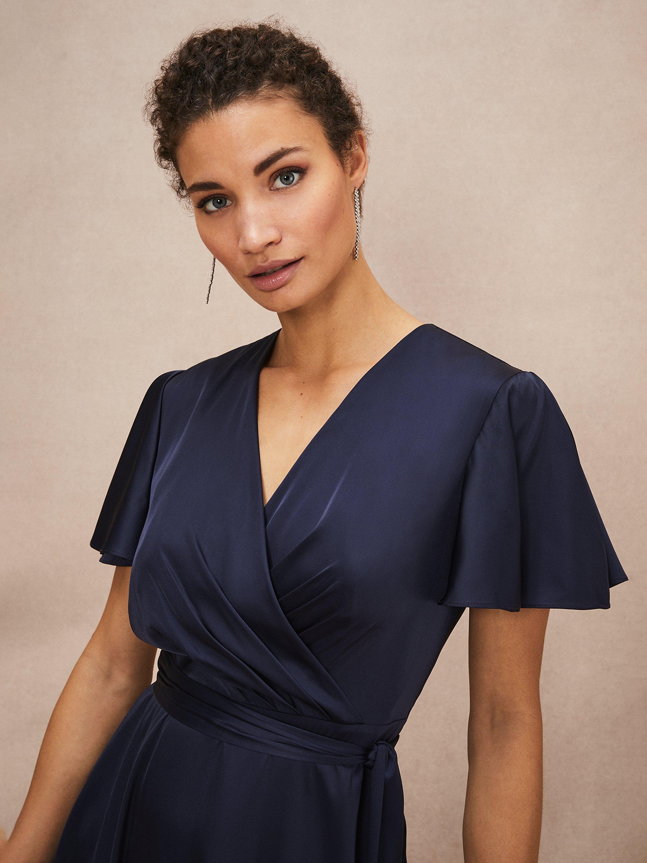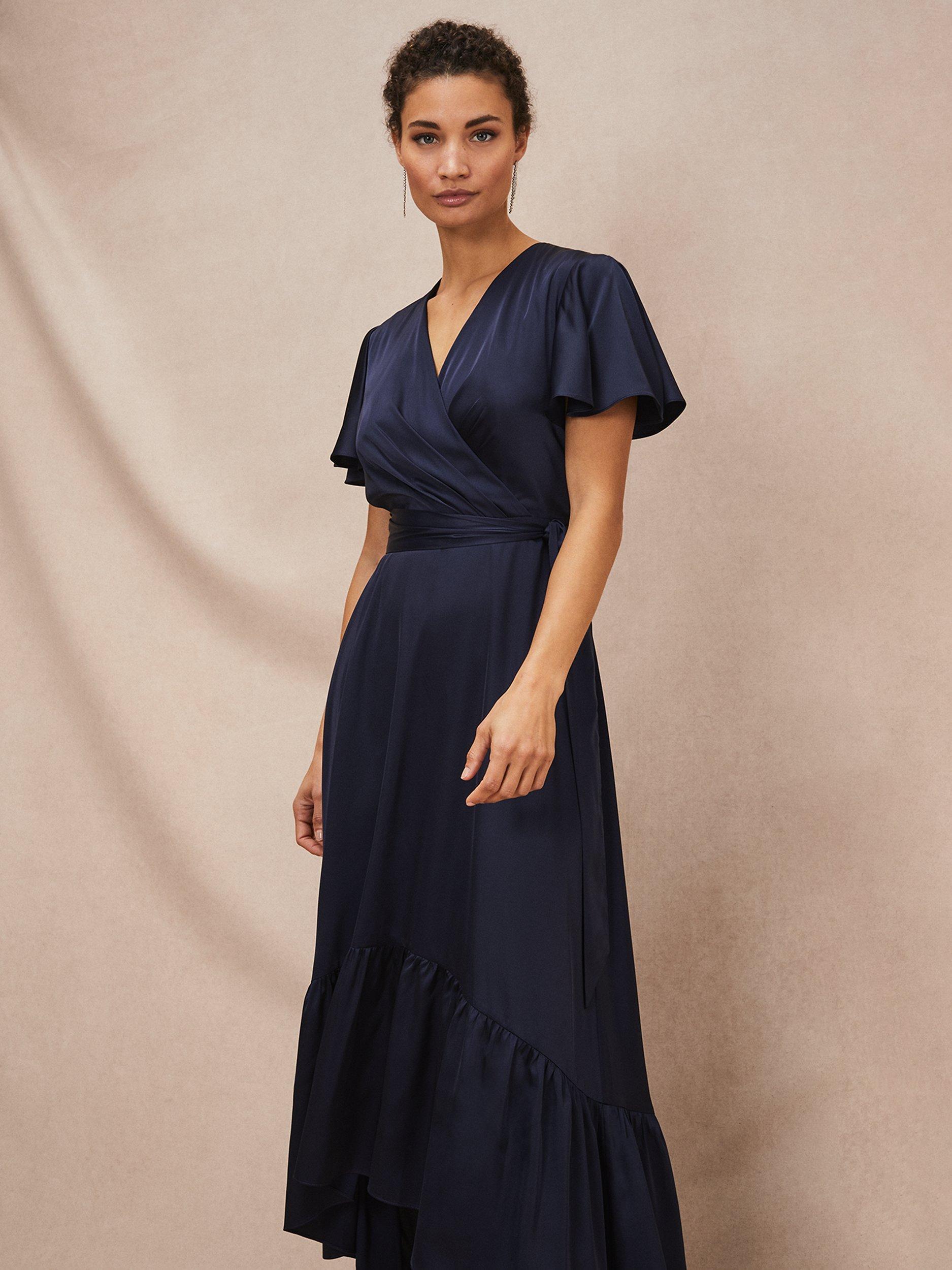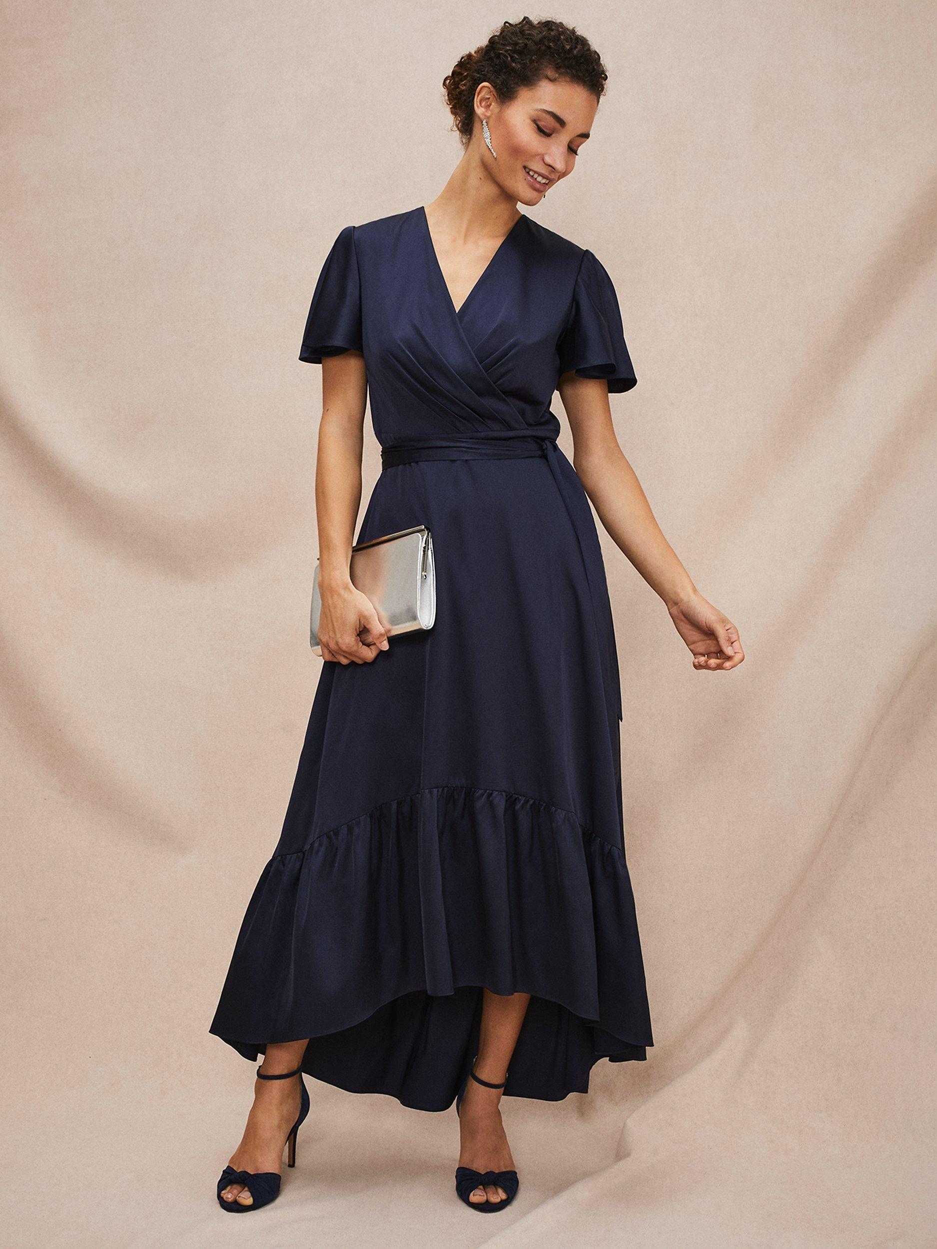 Designed with a unique dip hem, this satin midi dress by Phase Eight is free from any fussy details.