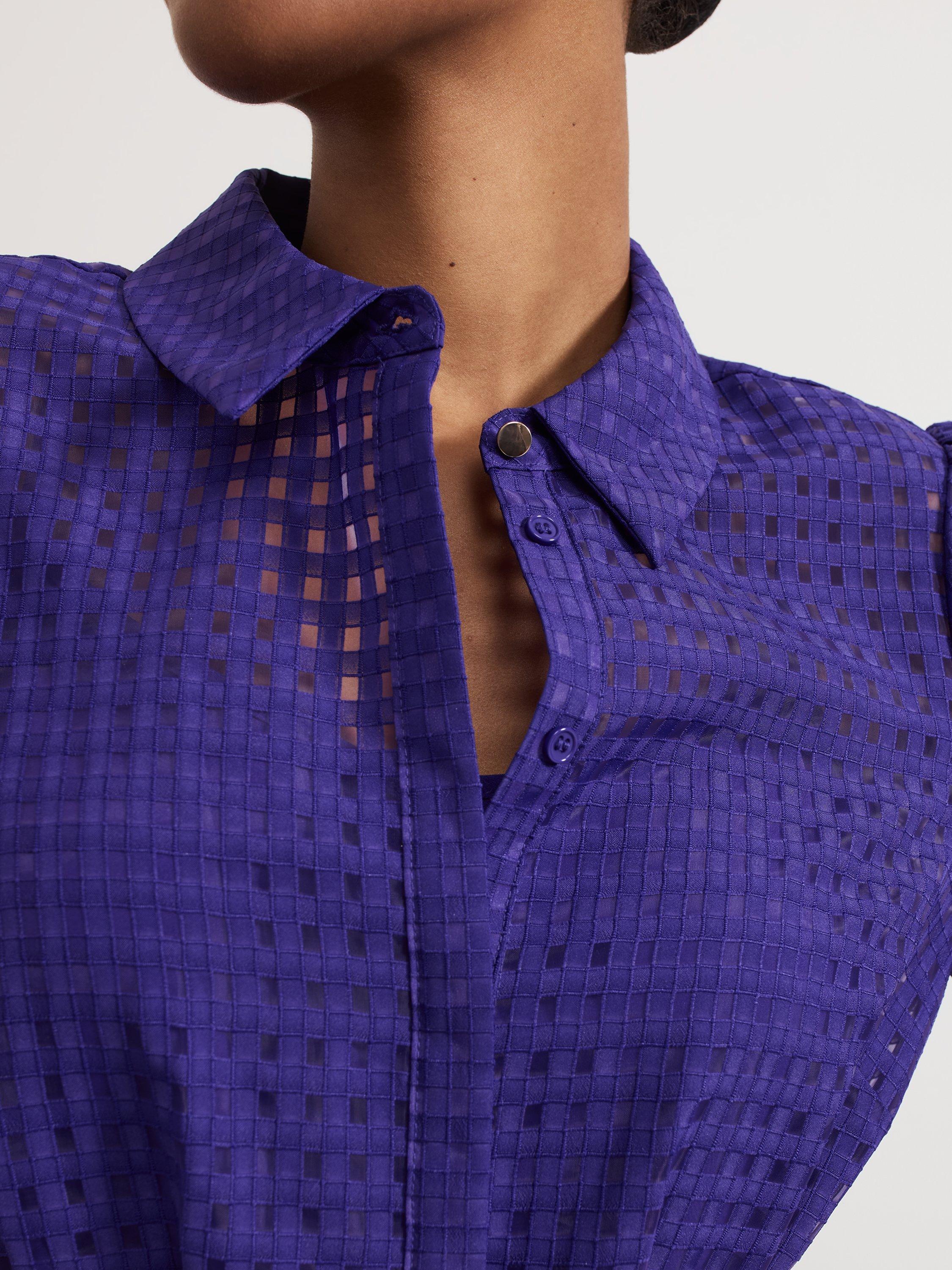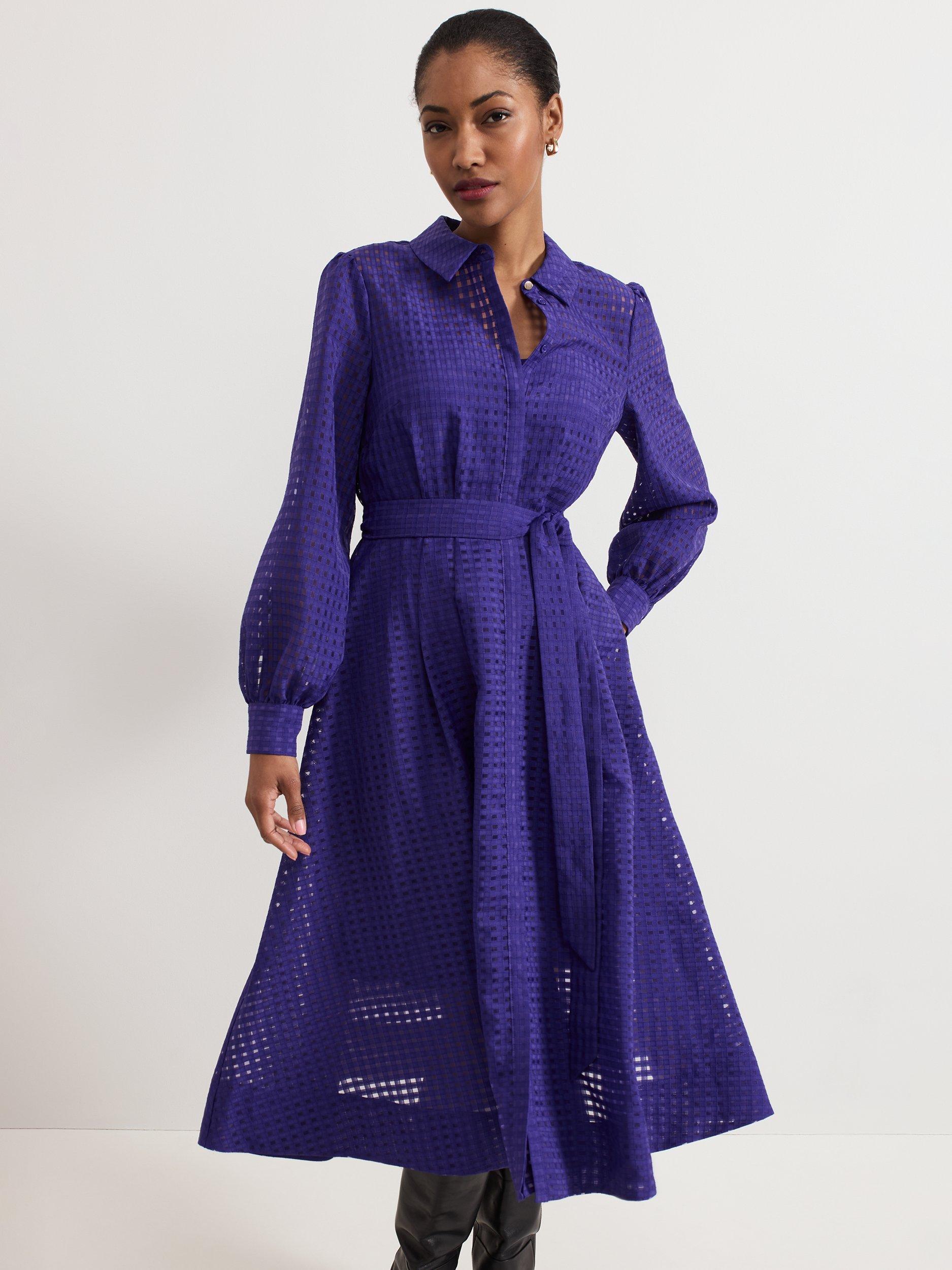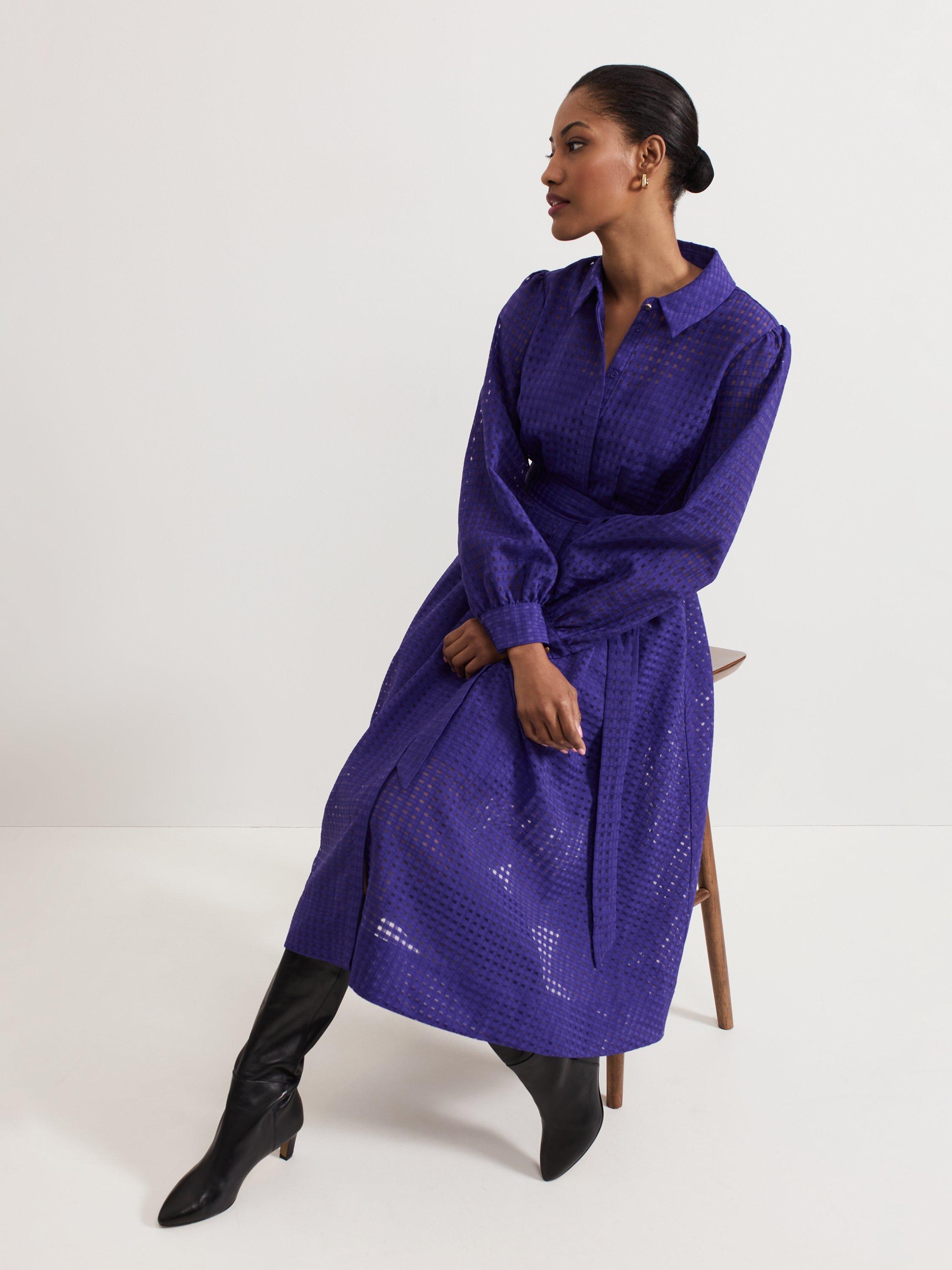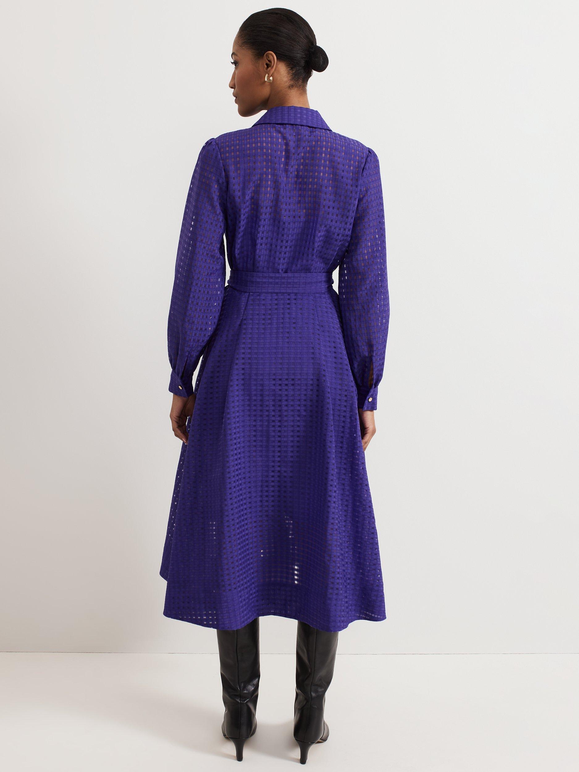 Designed in a classic, shirt style, this mid-length dress from Phase Eight is made from cutout check textured fabric. Featuring a collar neckline, button front and long blouson sleeves with buttoned cuffs, it is complete with a self-tie fabric belt at the waist.