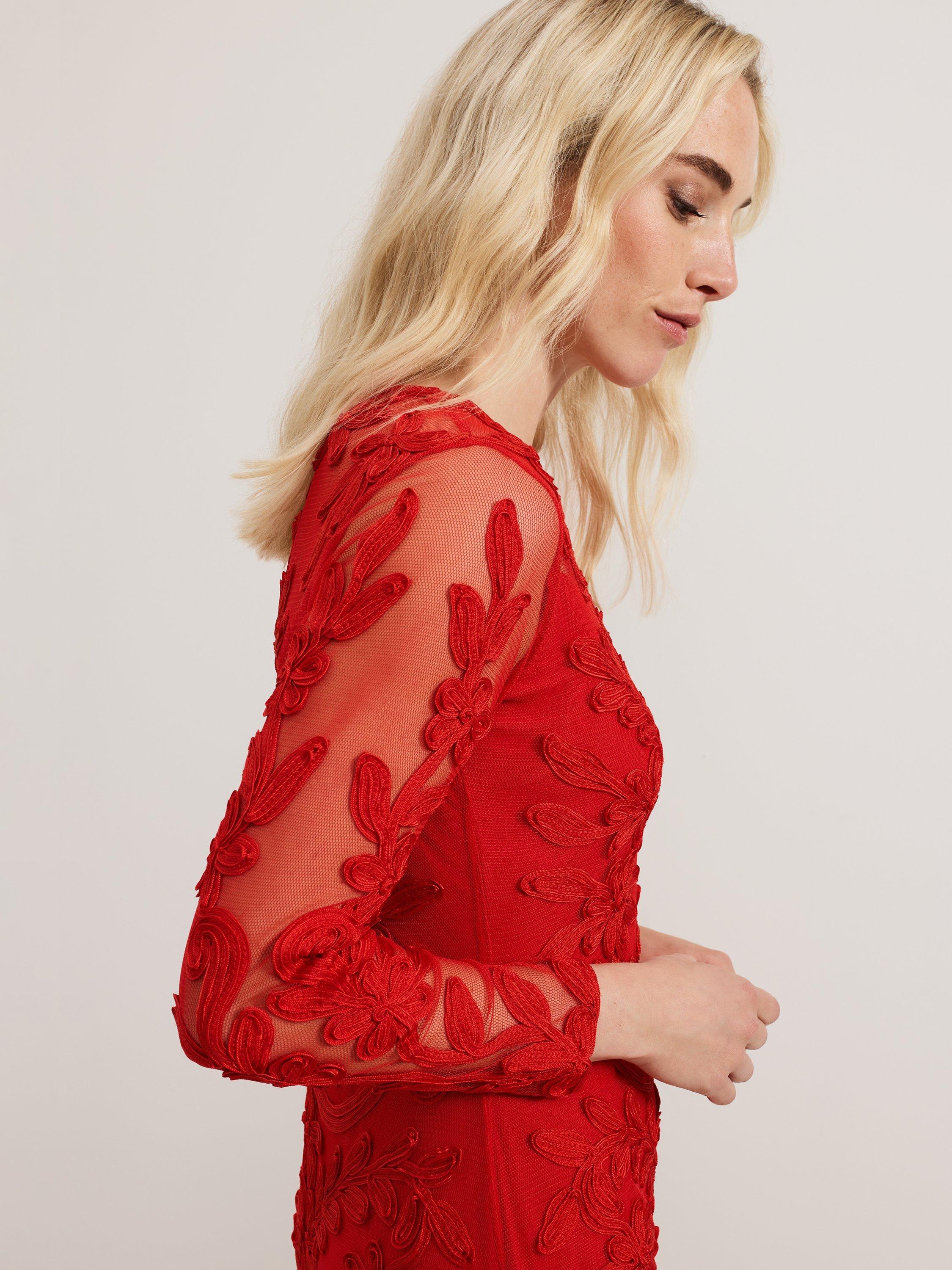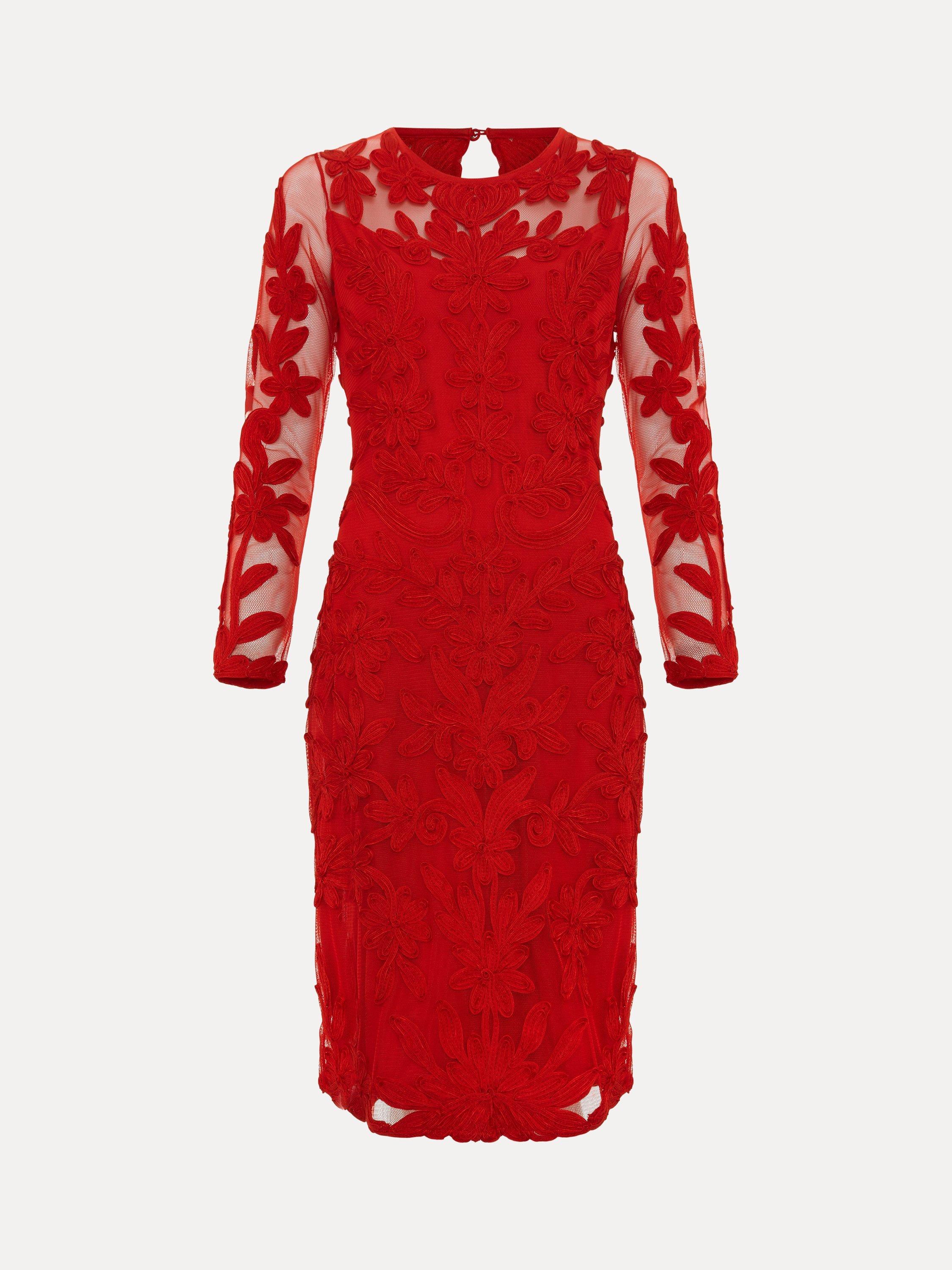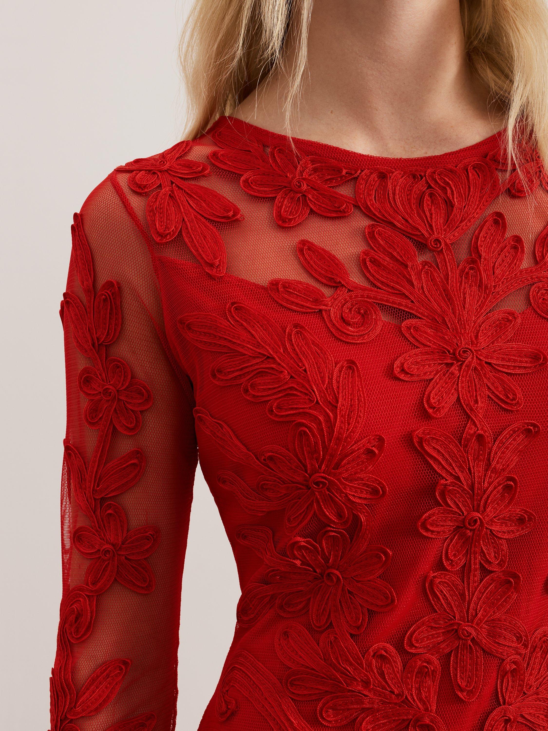 Elevate your wardrobe with this sophisticated occasion style. Crafted from signature tapework lace, the Navida dress features a semi-sheer yoke and sleeves for added allure, falling to a timeless midi length just above the knee. Finished with an eyelet detail at the back the vibrant shade makes it a standout style for formal events.
