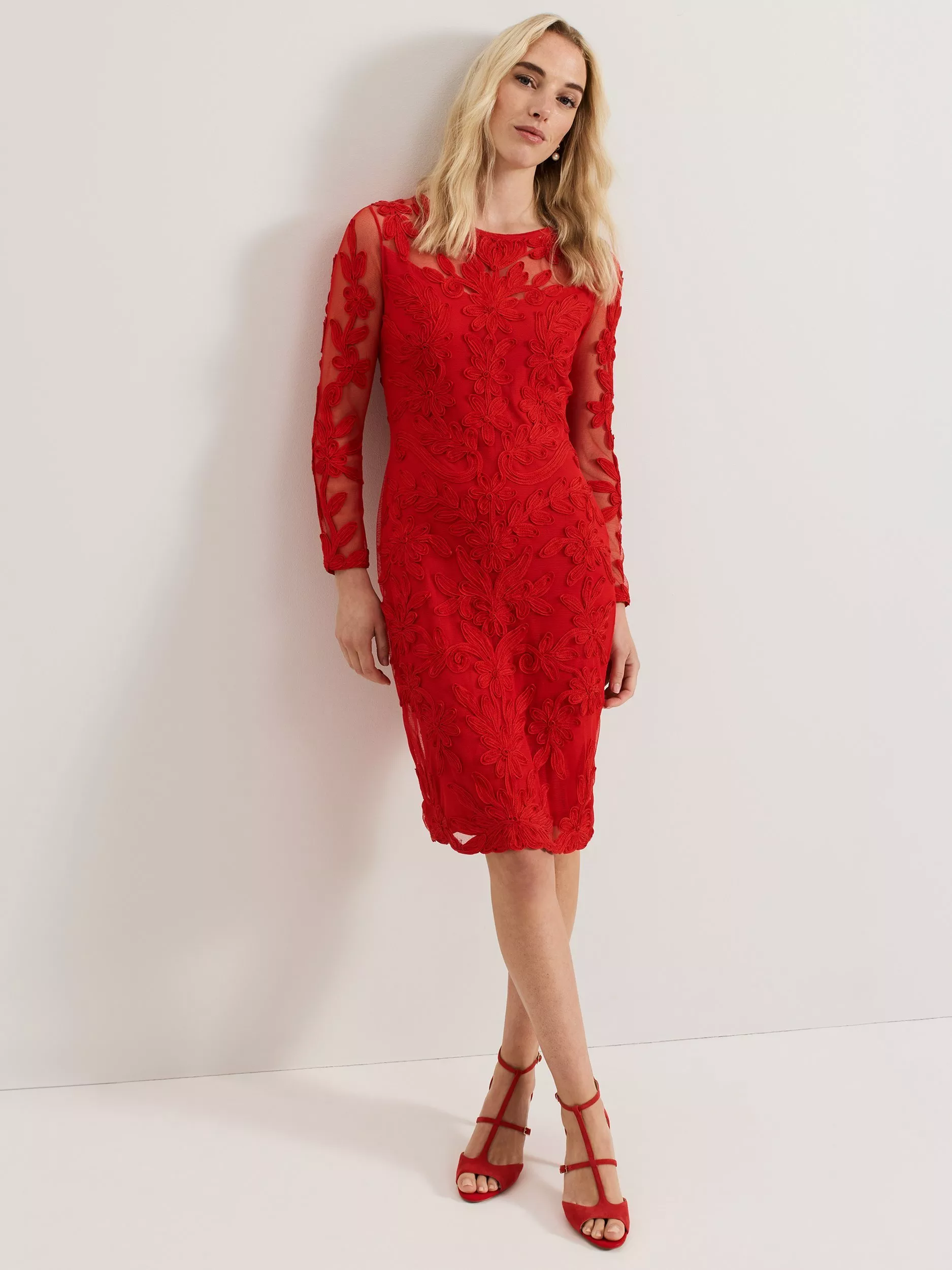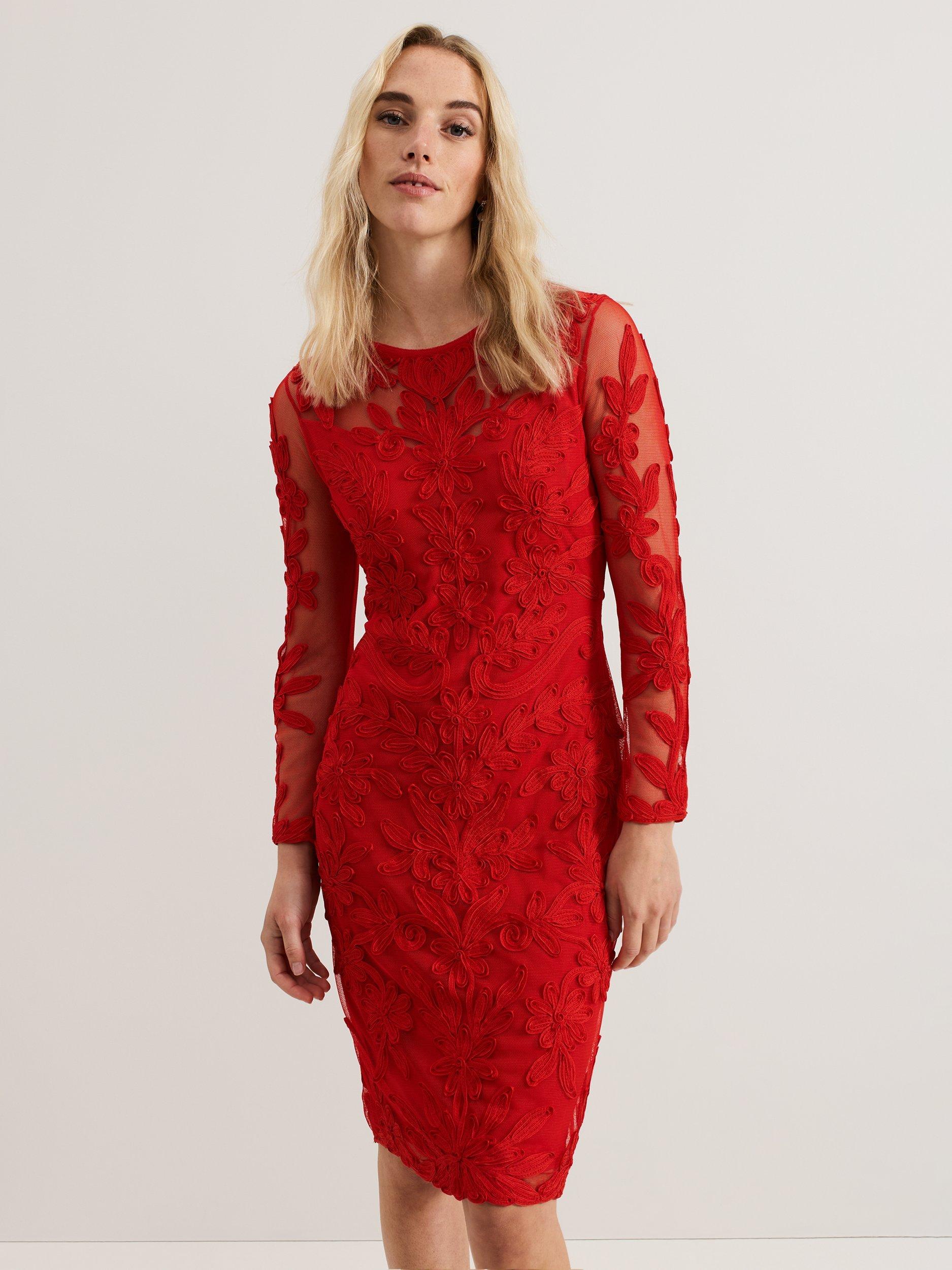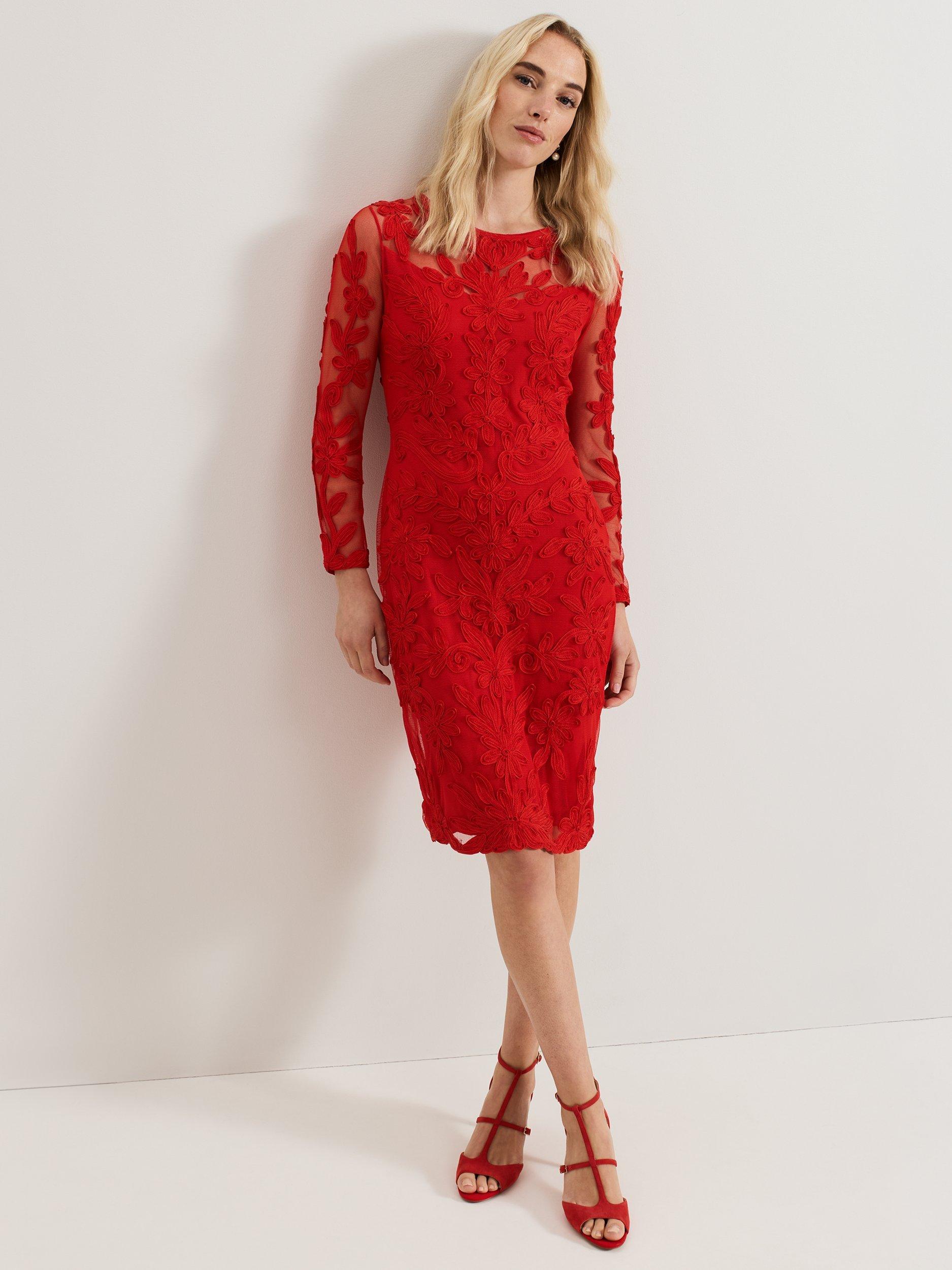 Elevate your wardrobe with this sophisticated occasion style. Crafted from signature tapework lace, the Navida dress features a semi-sheer yoke and sleeves for added allure, falling to a timeless midi length just above the knee. Finished with an eyelet detail at the back the vibrant shade makes it a standout style for formal events.