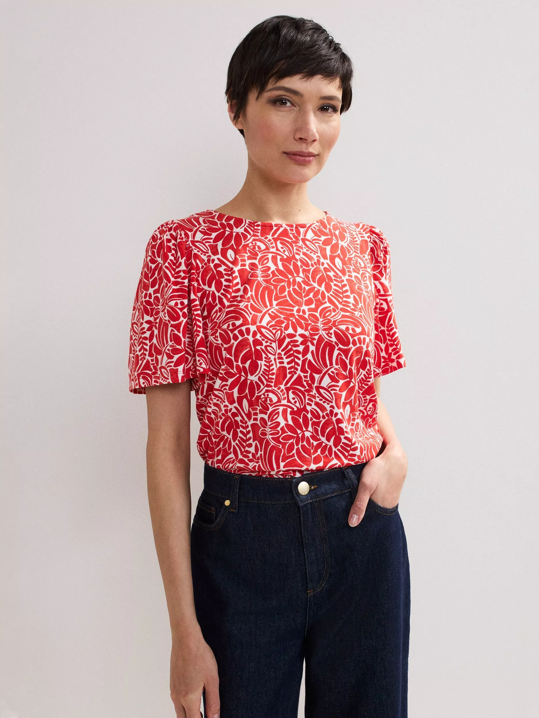 Add this elevated T-shirt to your collection. Updated with a vibrant print for a pop of colour, bell sleeves add a contemporary edge to this top. Paired with your favourite separates, it's the perfect everyday style.