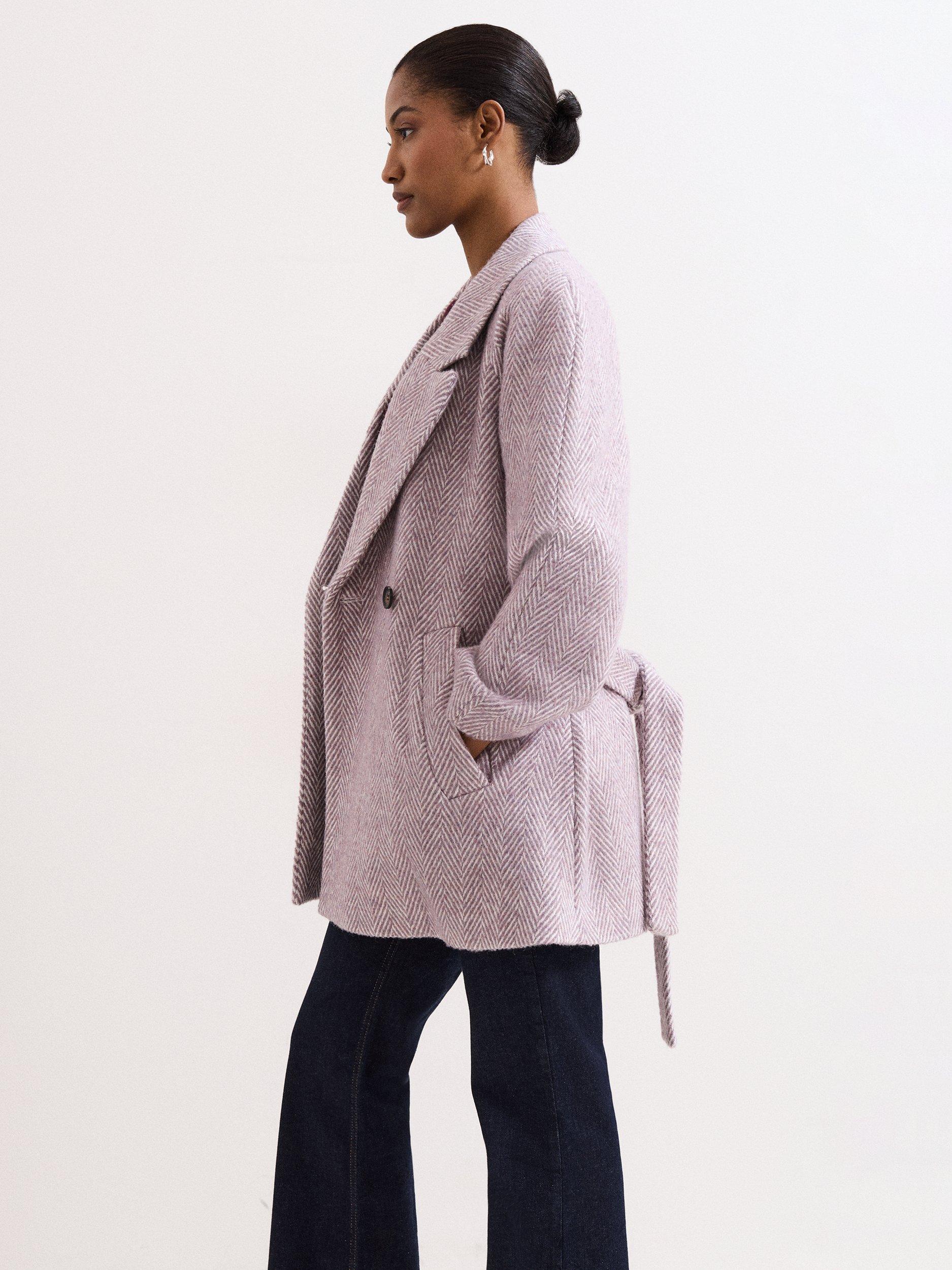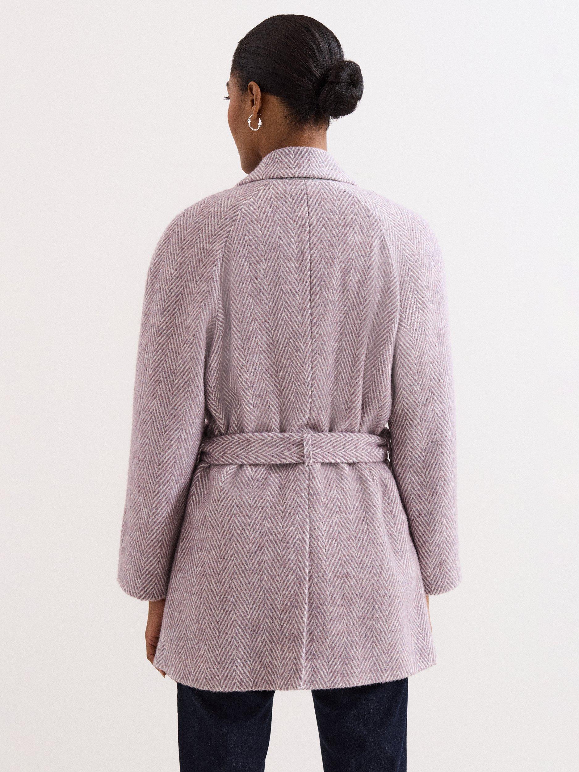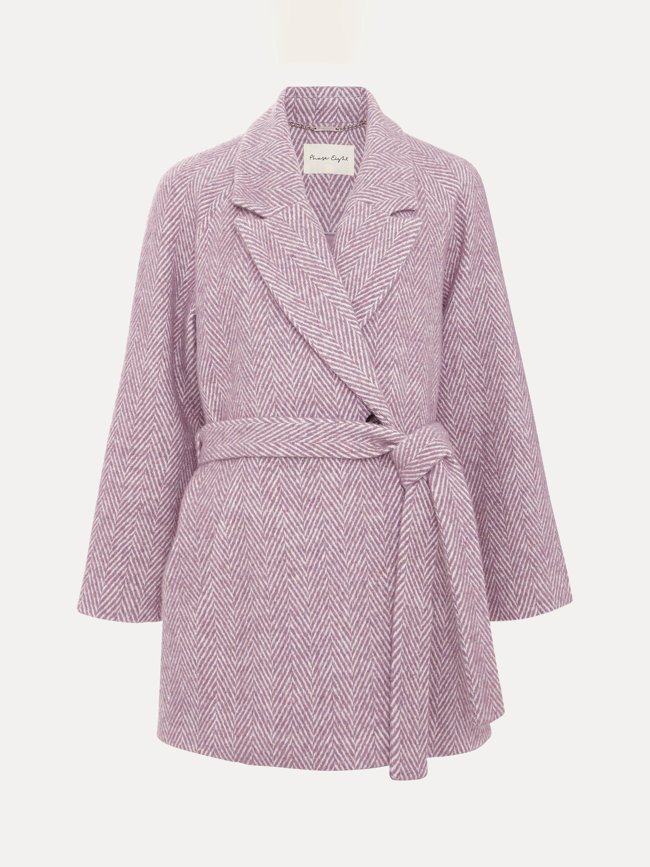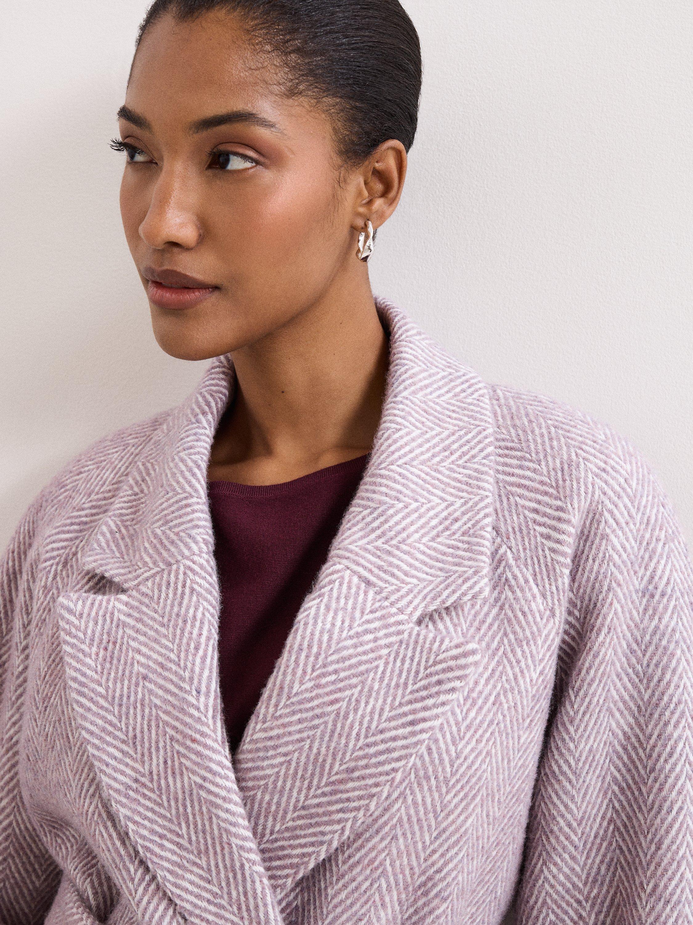 This wrap overcoat features a standout herringbone design, a soft wool blend, and a tie fastening. The classic V-neck and long sleeves ensure you feel comfortable and confident when layering up for busy days or relaxed evenings.