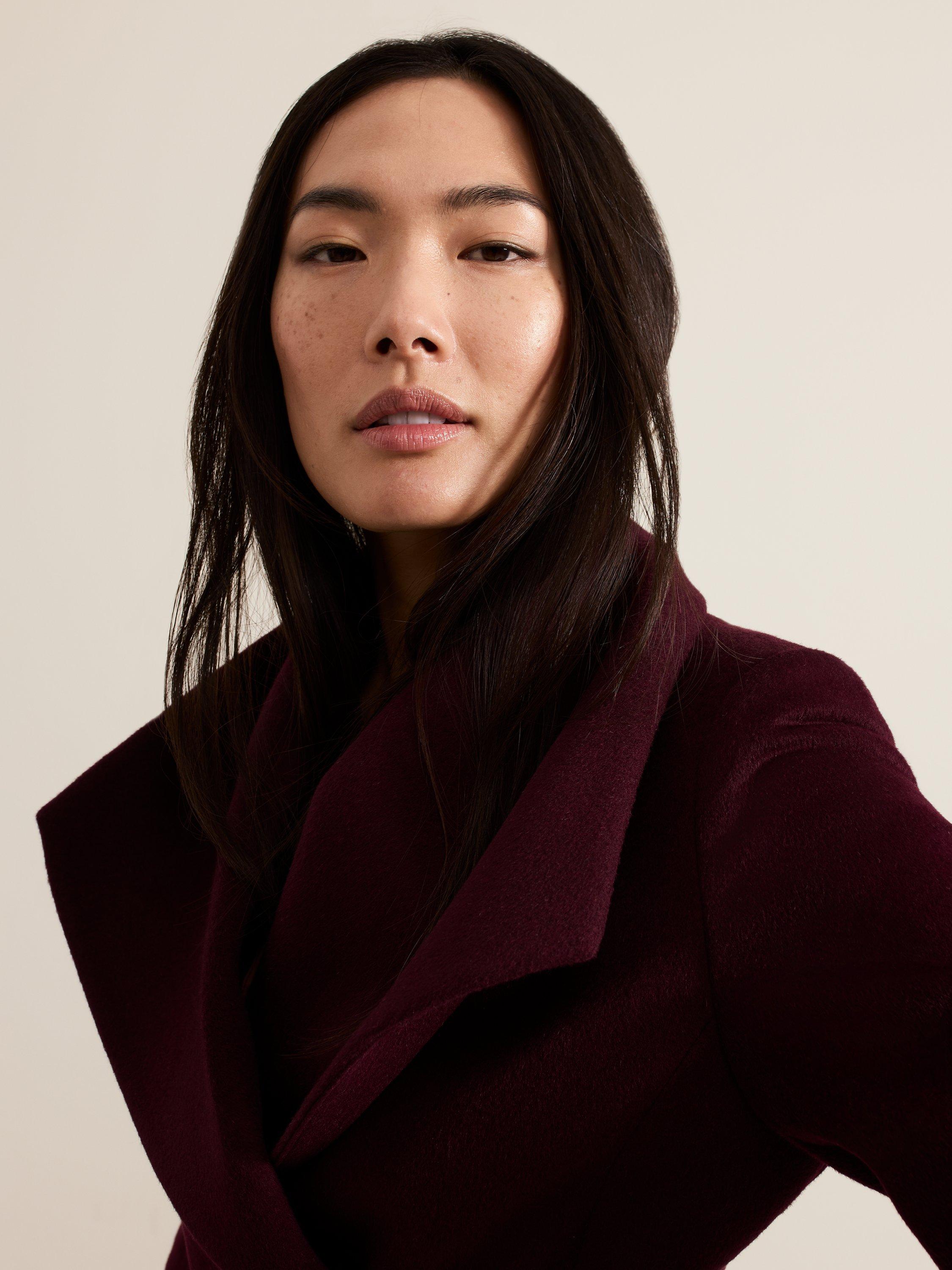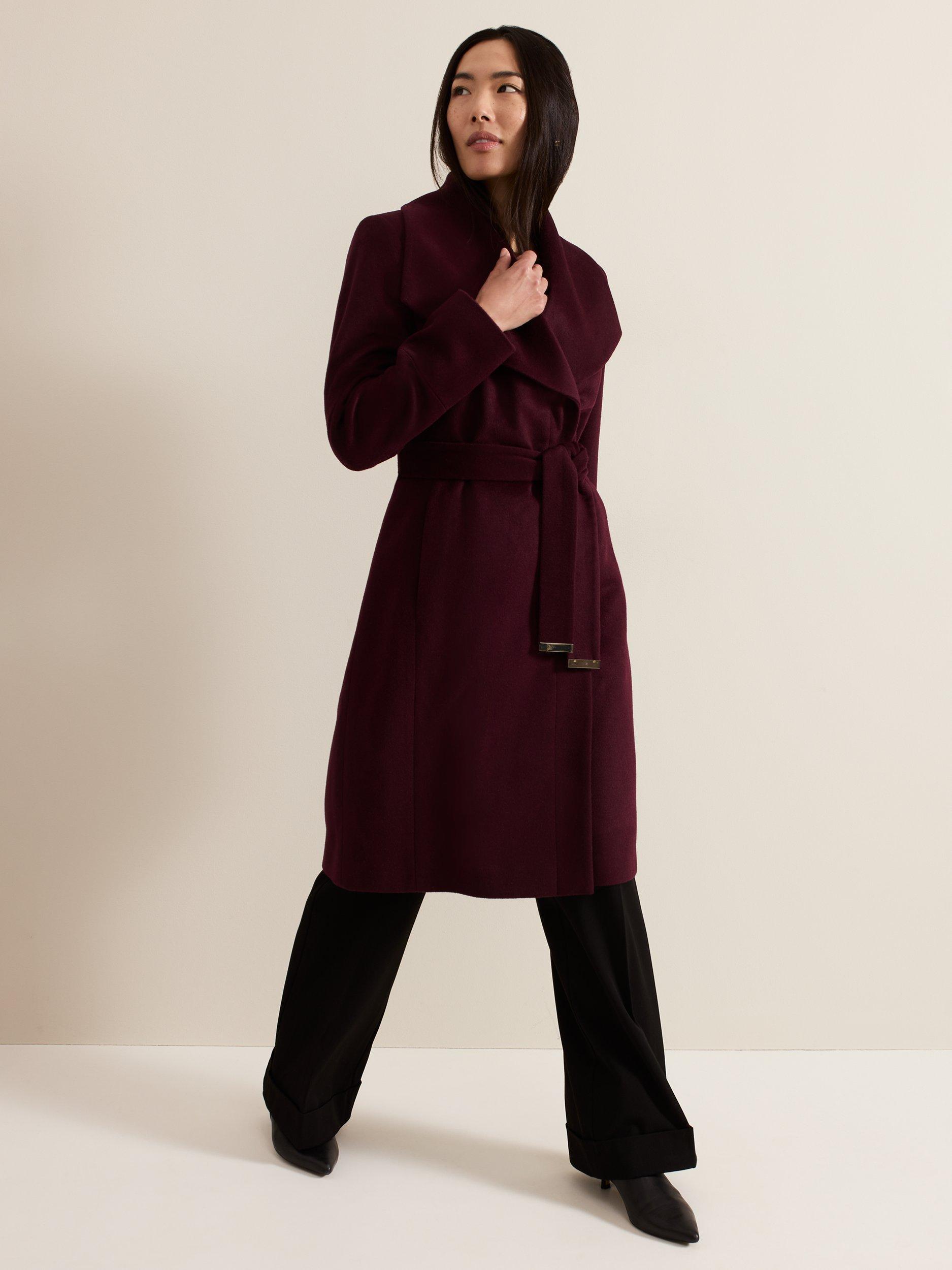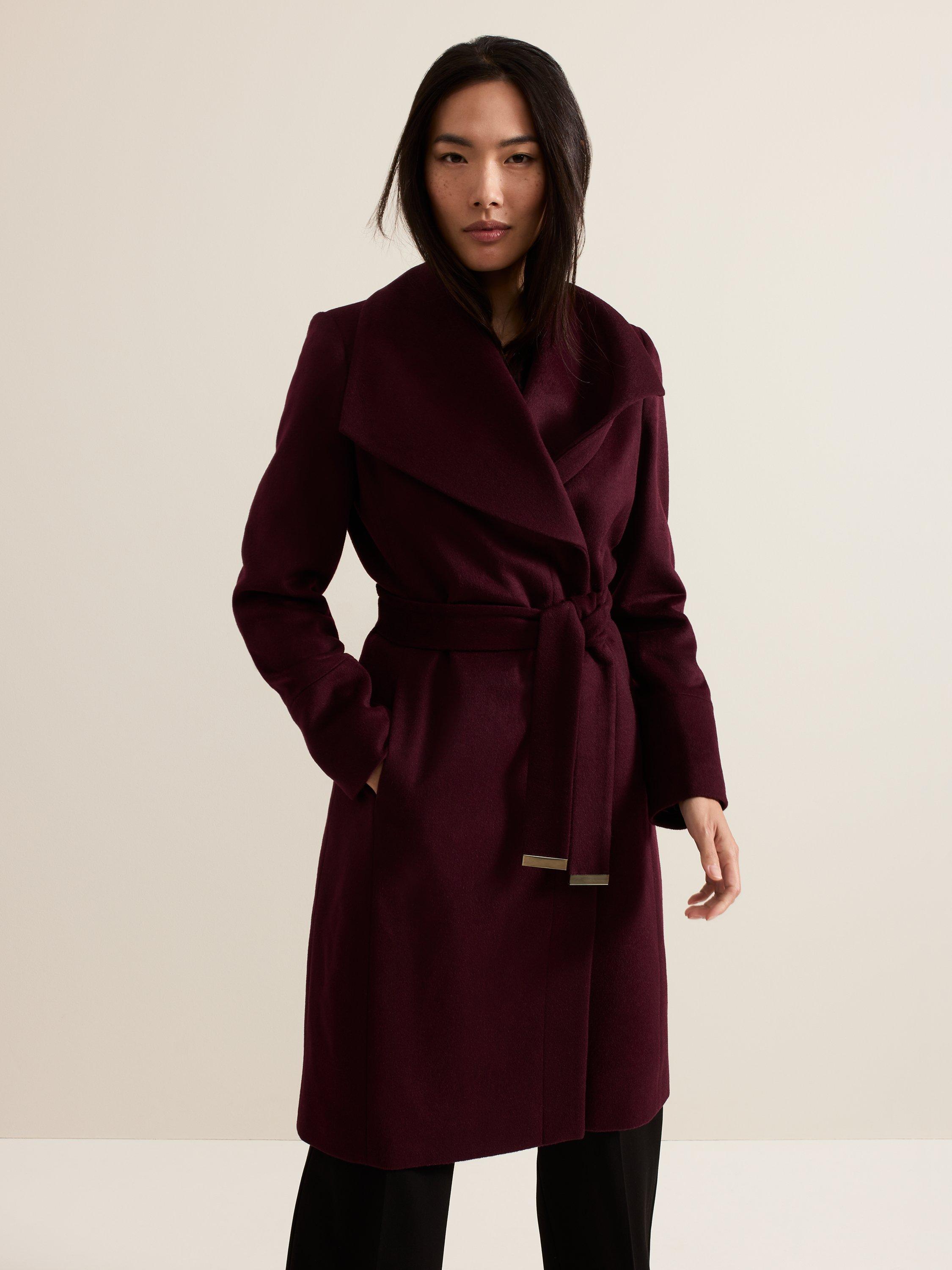 Transition into the new season seamlessly with our Nicci coat. Designed in a gorgeous ]hue our coat is crafted from a wool blend, perfect for keeping warm on those colder days. The oversized shawl collar and matching belt with gunmetal gold accents create a feminine wardrobe staple.