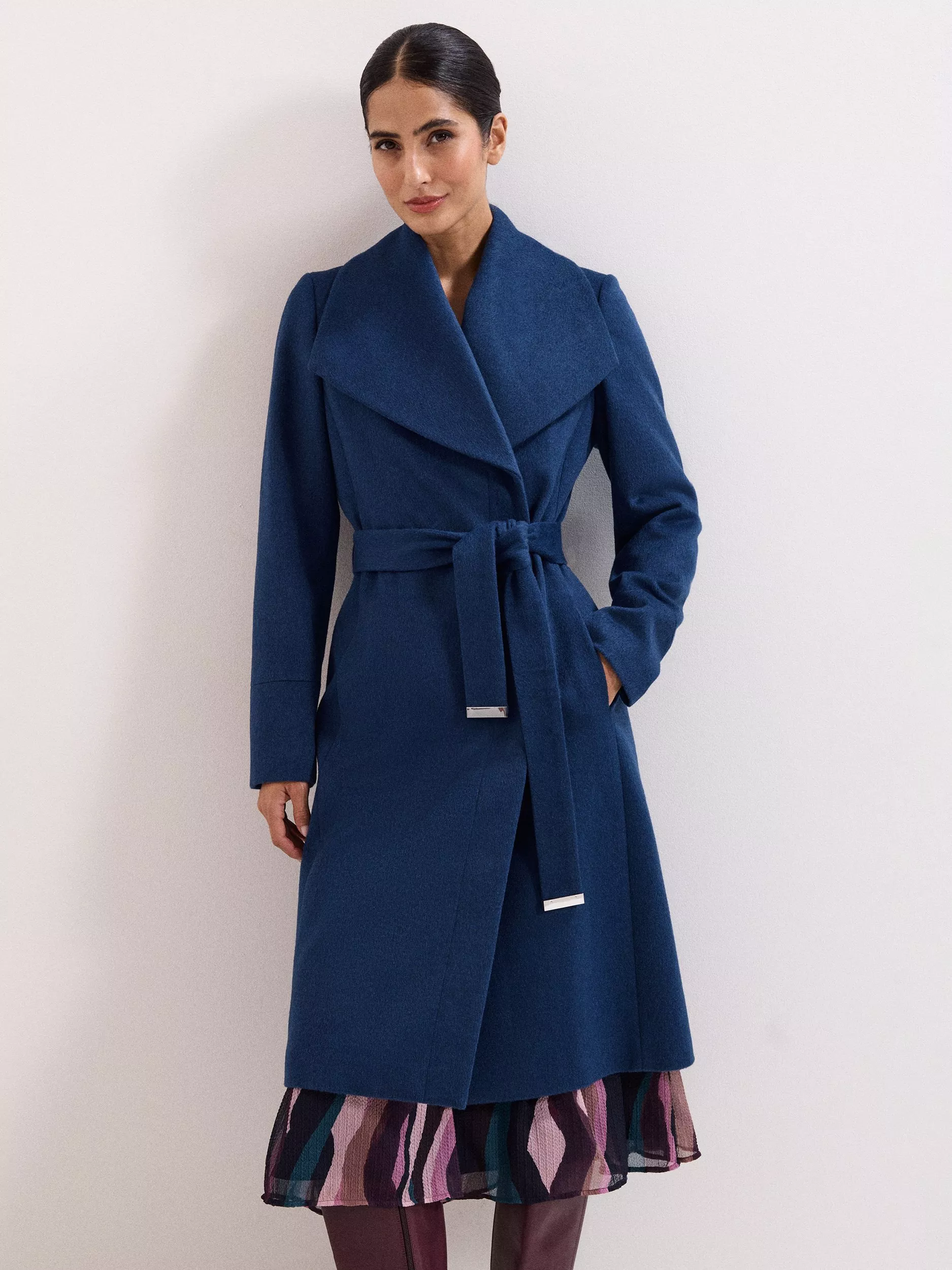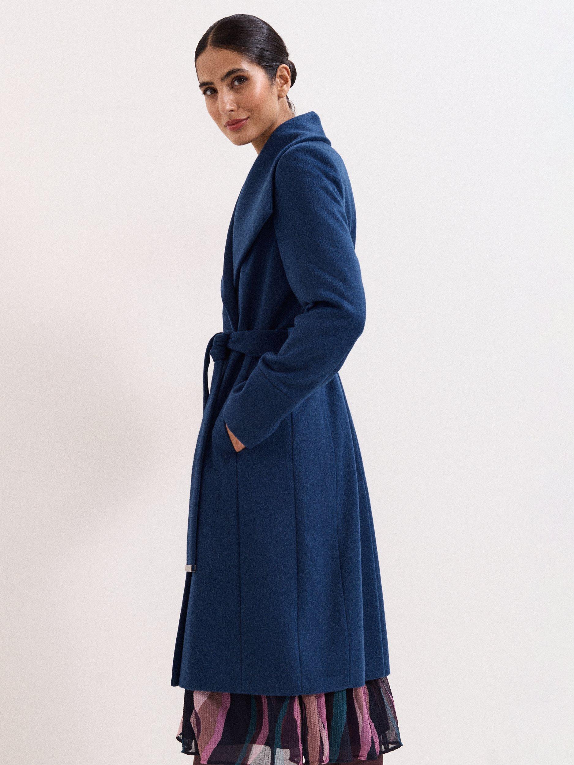 This luxurious wool-rich coat is perfect for keeping you warm during the colder months, without compromising on style. The shawl collar and matching belt with contrast accents add further refinement, making you look chic all season long, year after year.