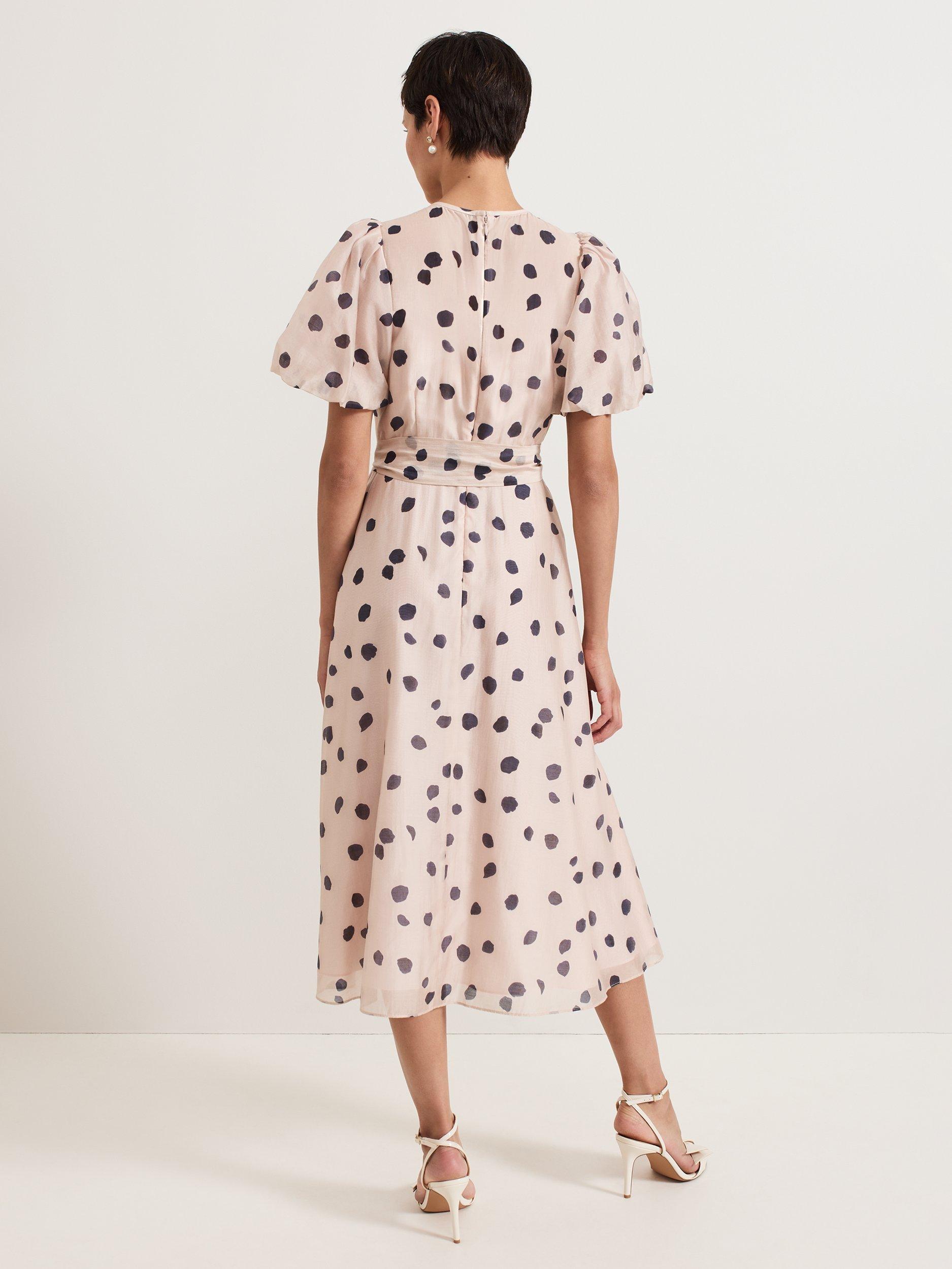 Your wardrobe needs the Nicola dress, because polka dots never go out of style. Delicate ruffles decorate the bodice to add texture whilst the puff sleeves add subtle dimension to the midi silhouette. Simply style with some heels and a clutch for the perfect occasion outfit.