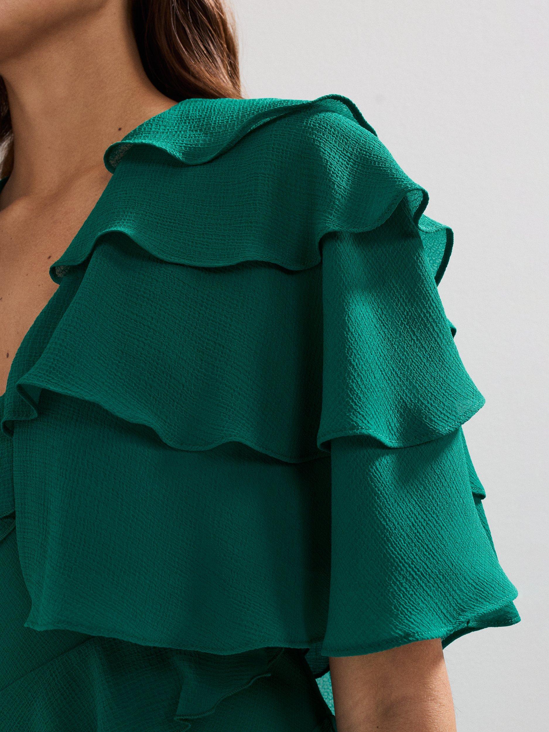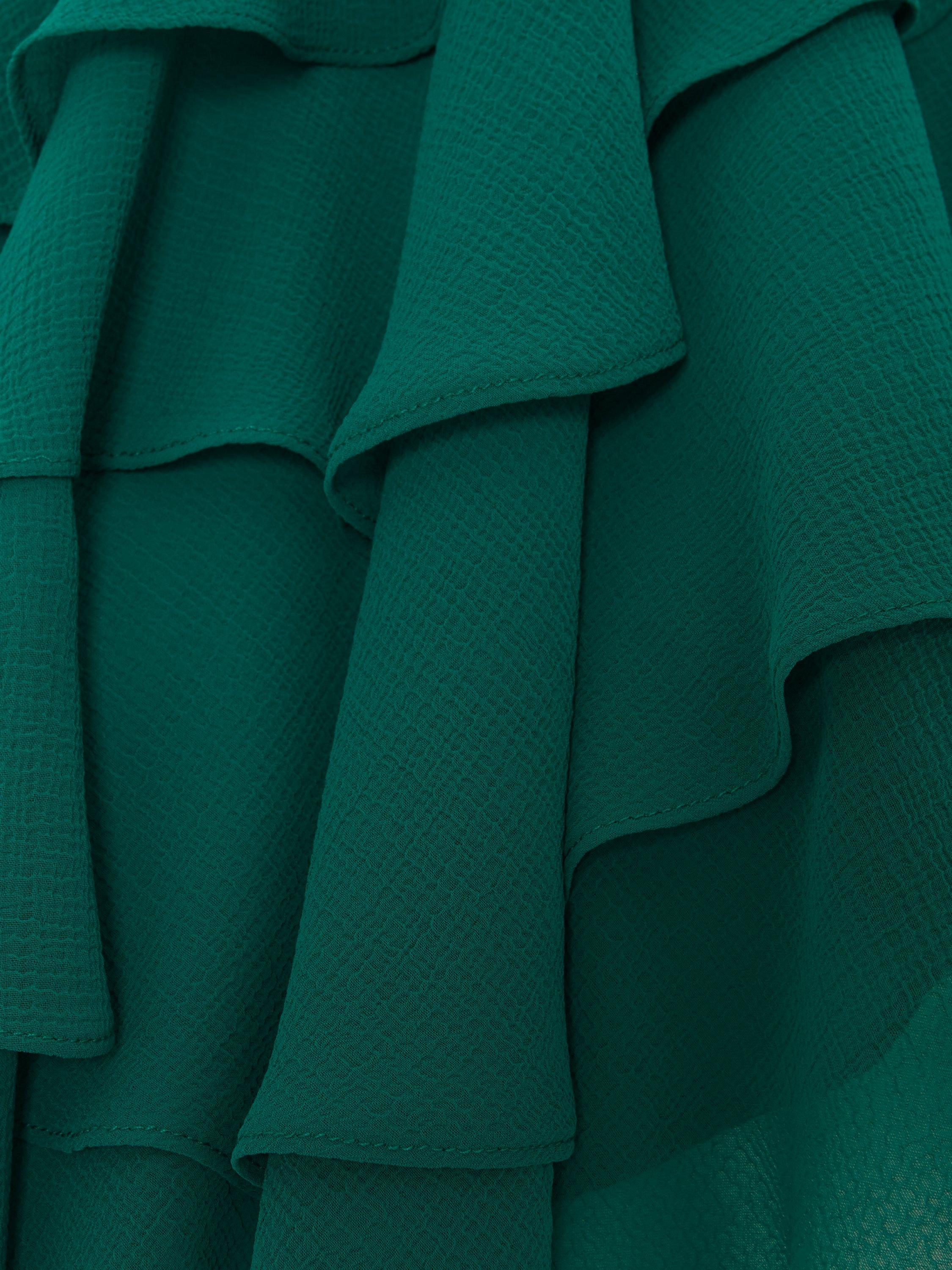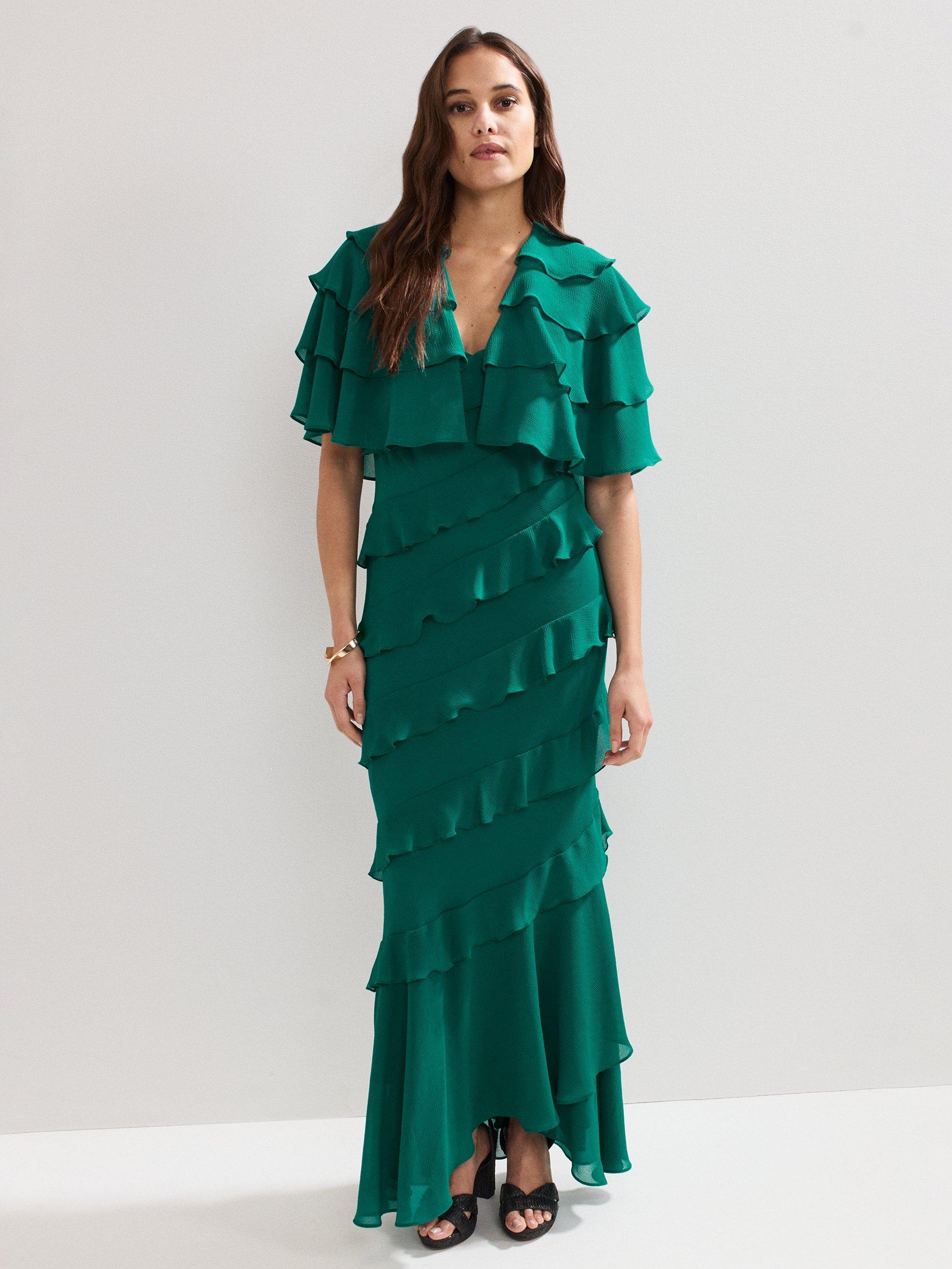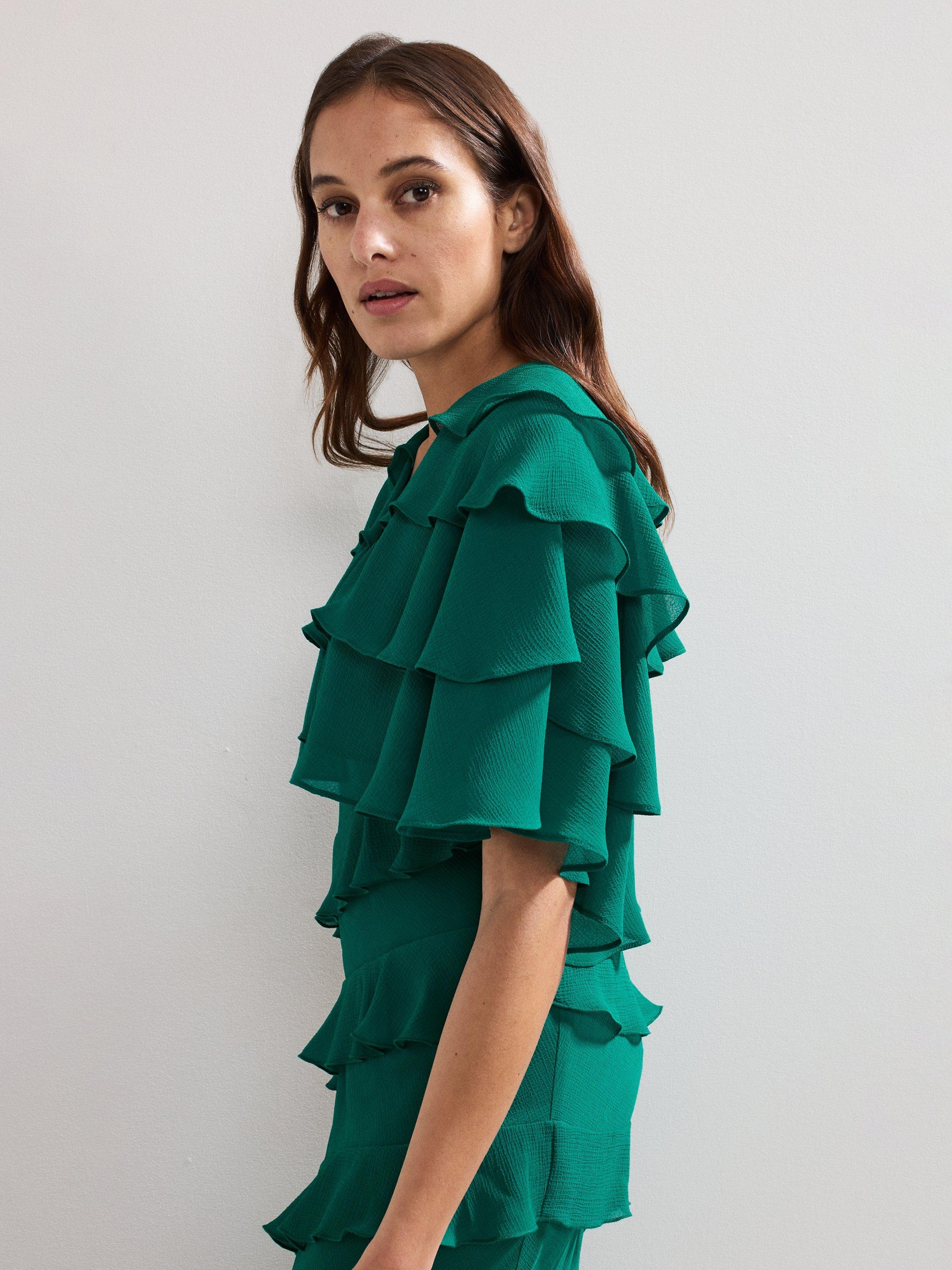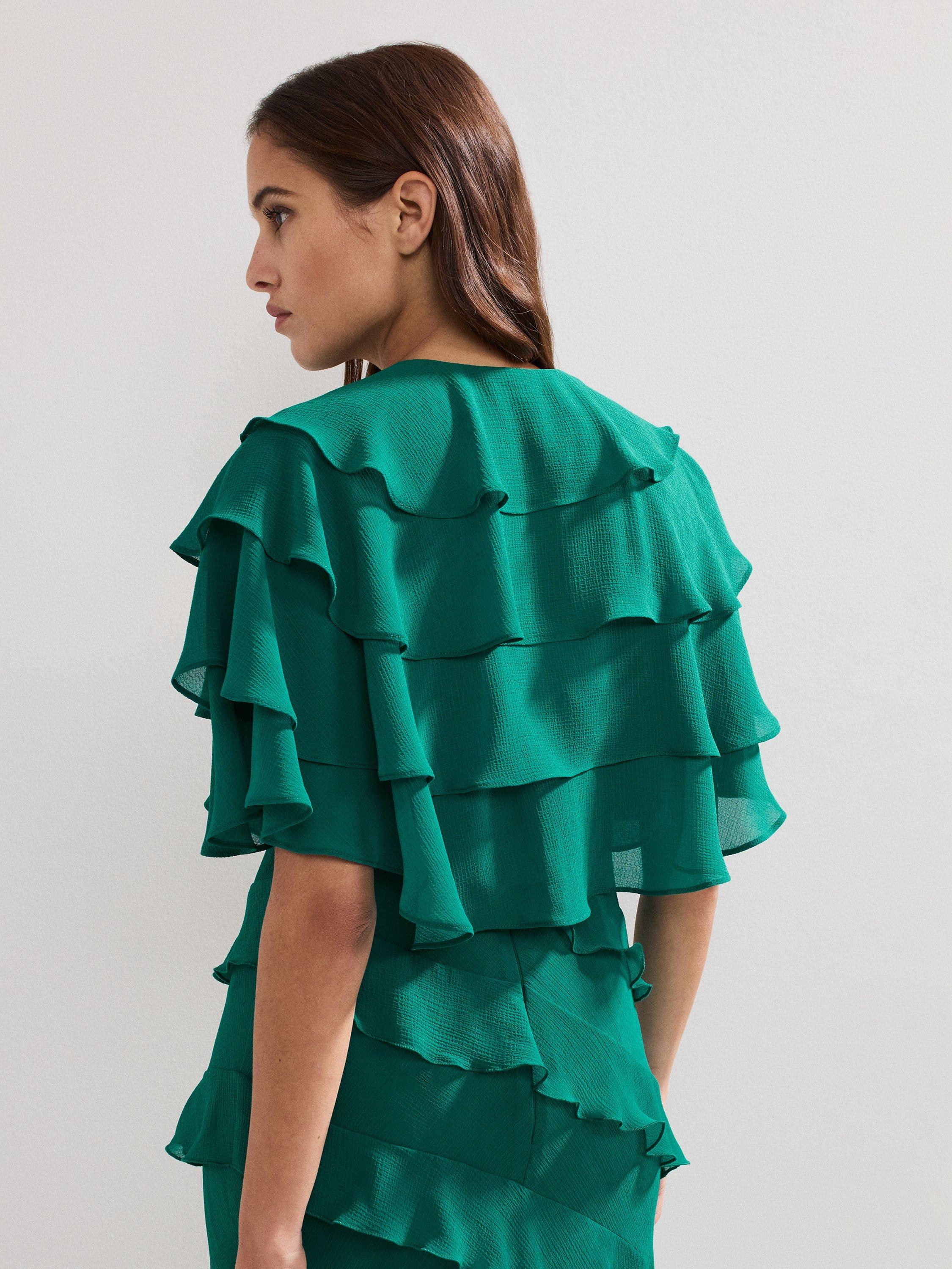 This cropped cape cover up features beautiful ruffle detailing to create a contemporary finishing touch.