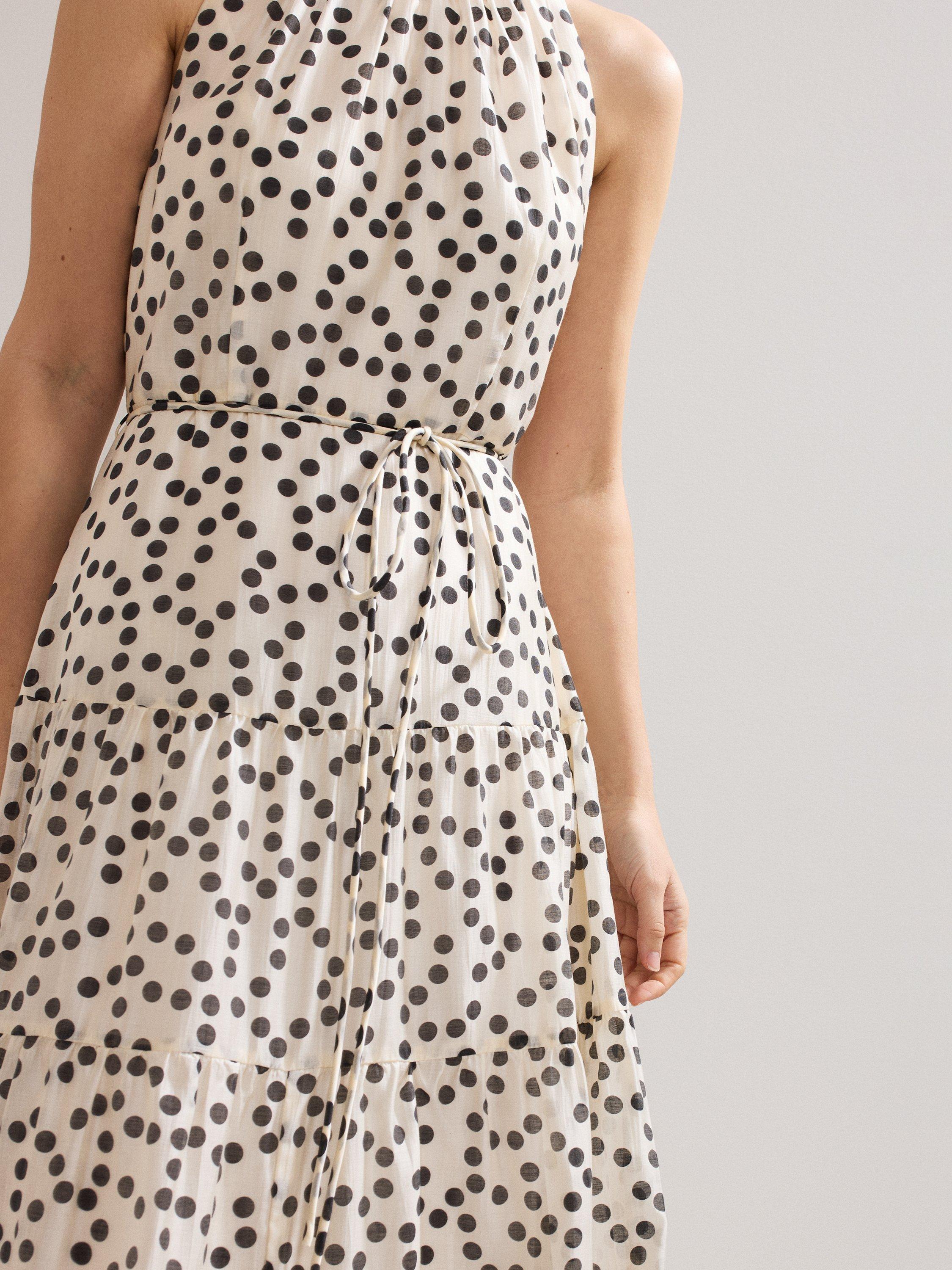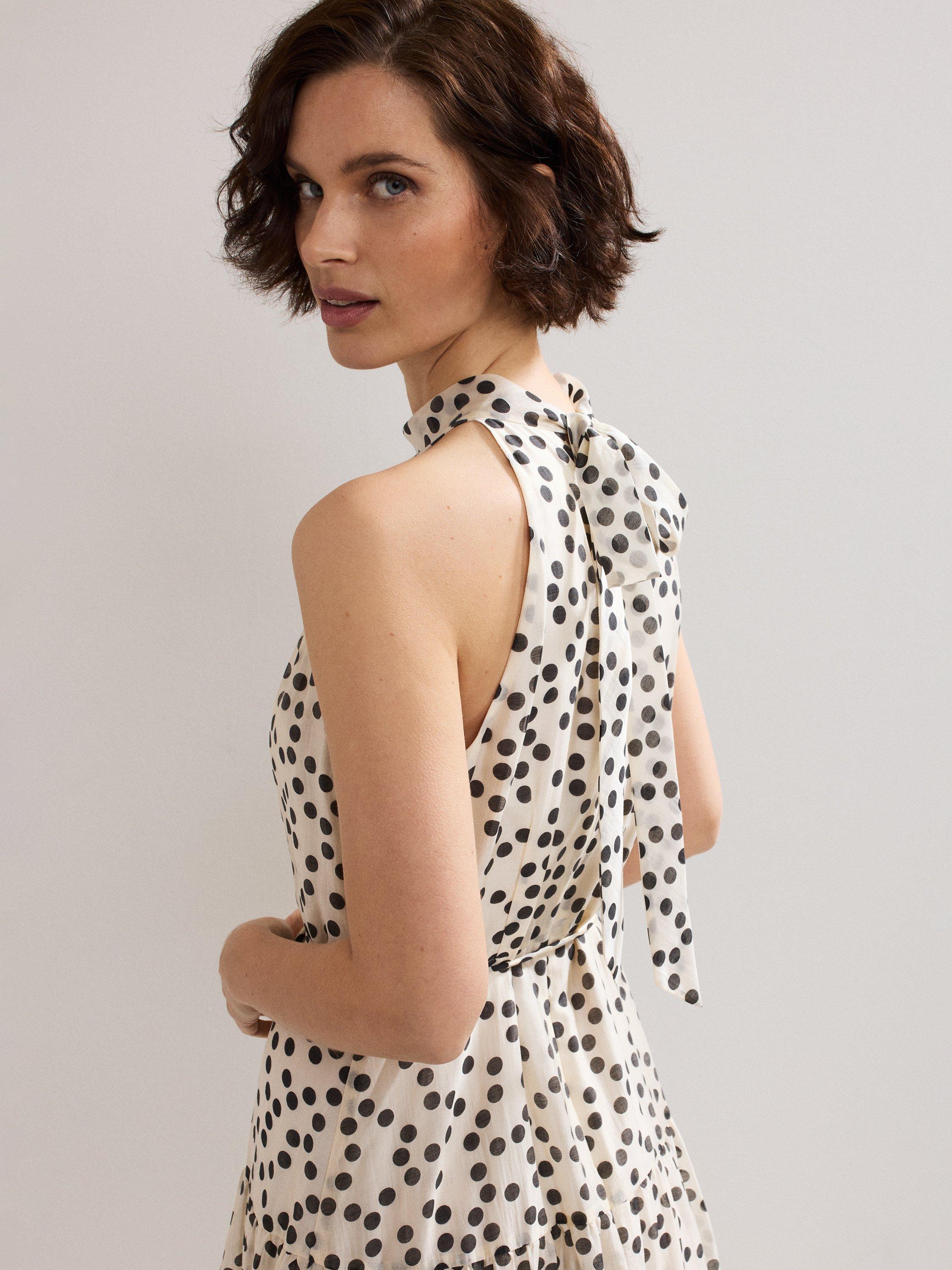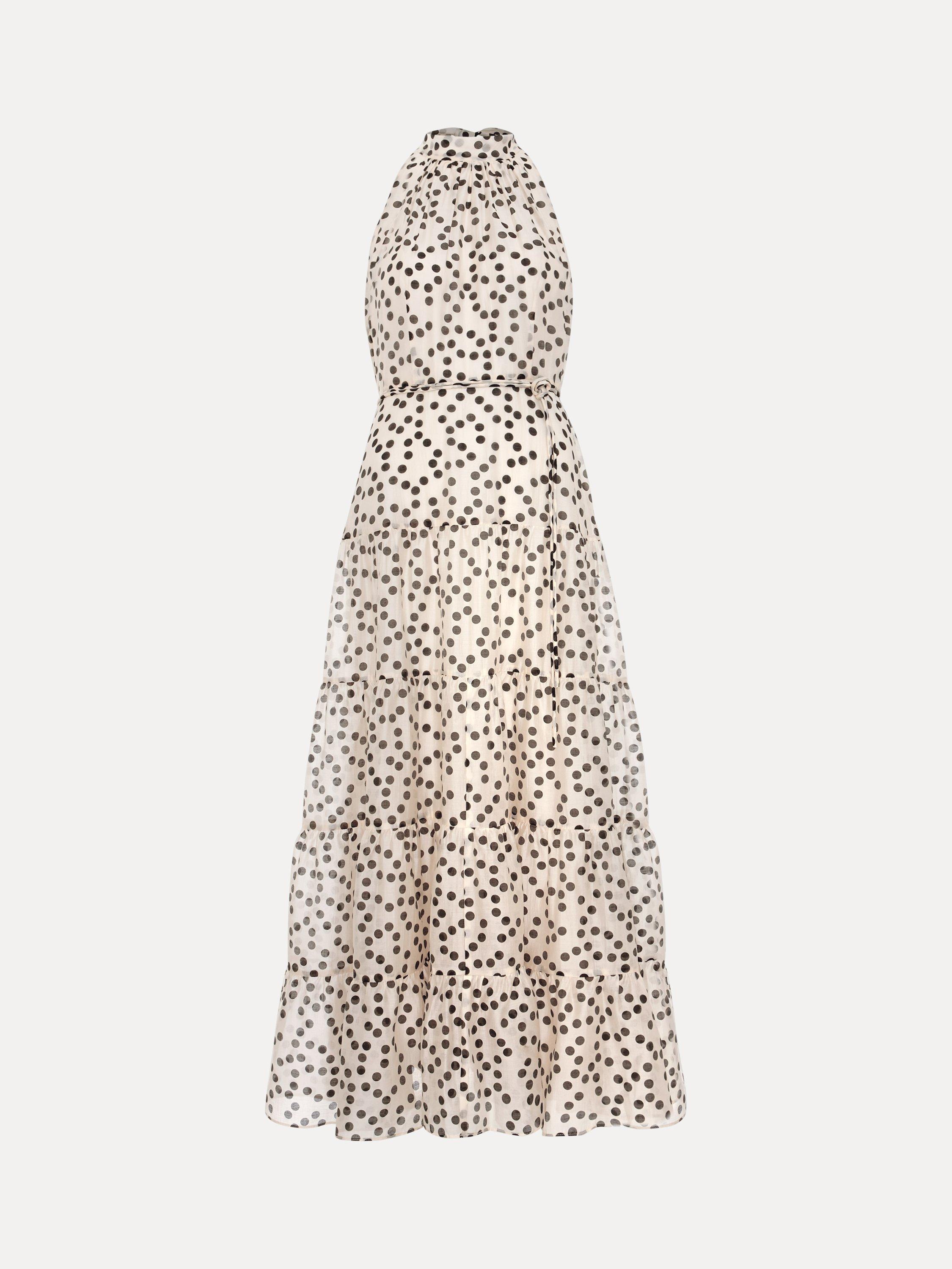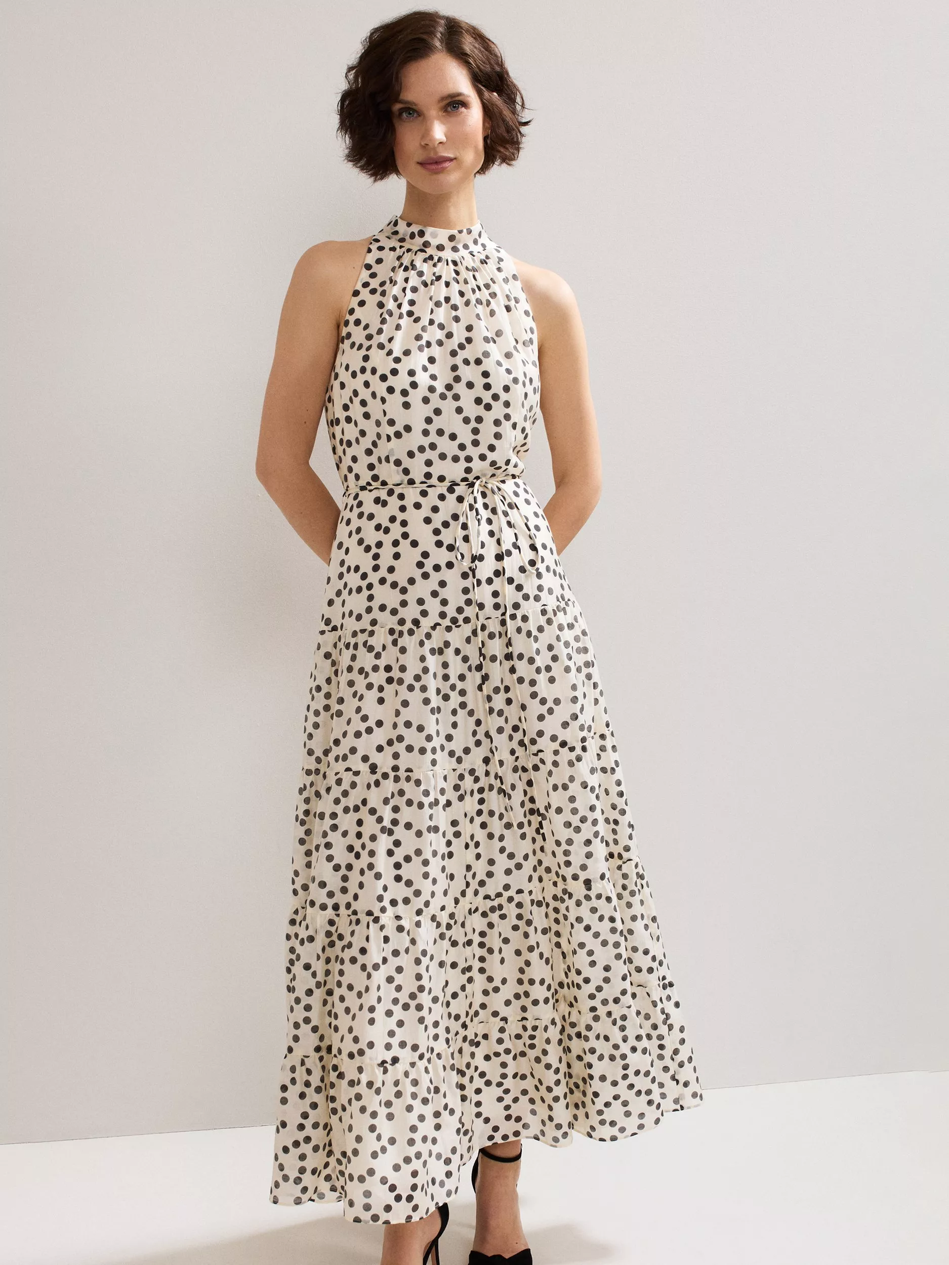 Both stylish and classic, polka dots truly never go out of style. The Nita dress features an elegant halterneck, finished with a bow detail at the back for a feminine update. The tiered maxi skirt creates fluid movement and dimension to create a stunning event style that is guaranteed to stand out from the crowd.